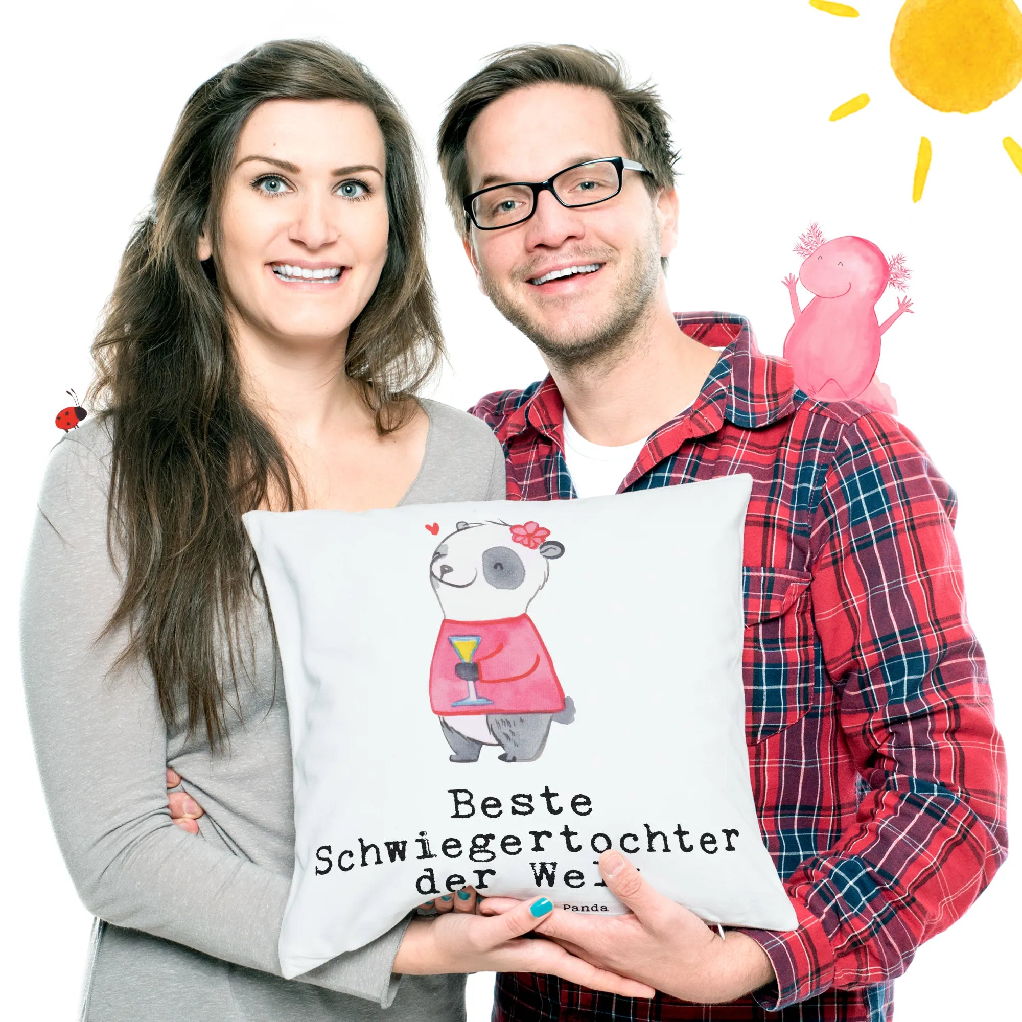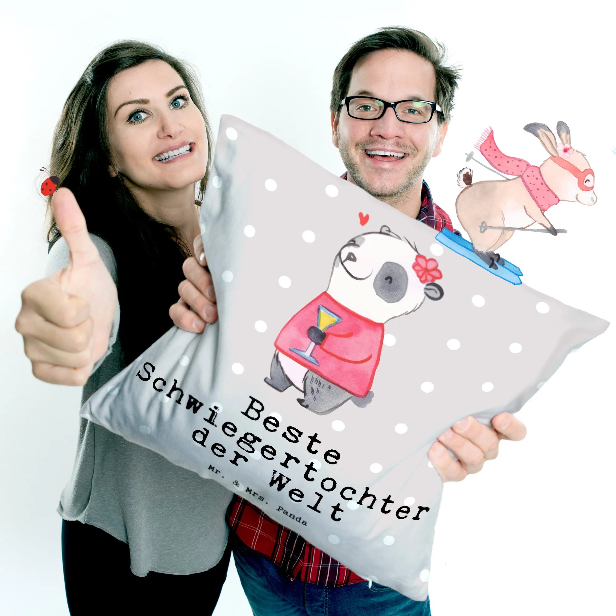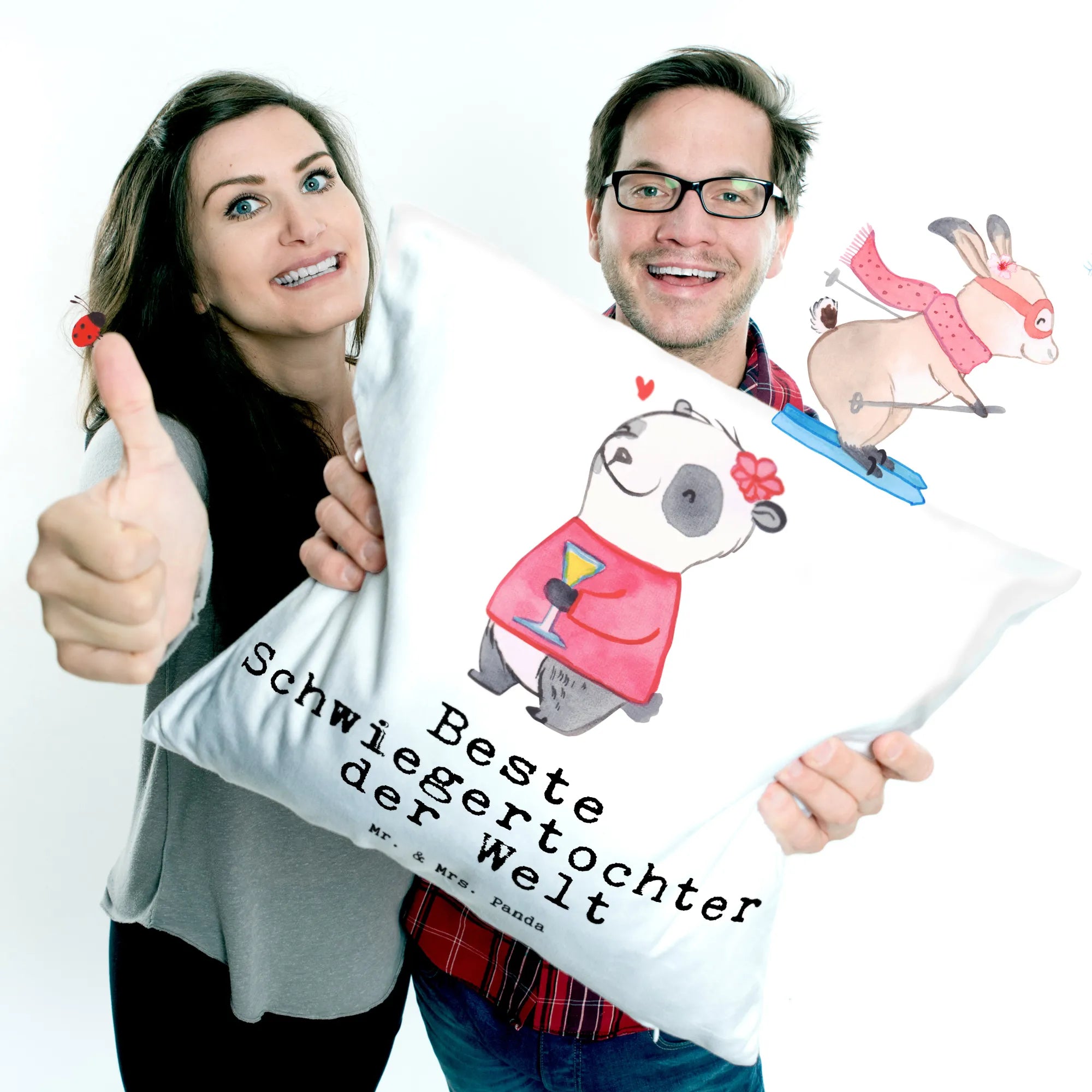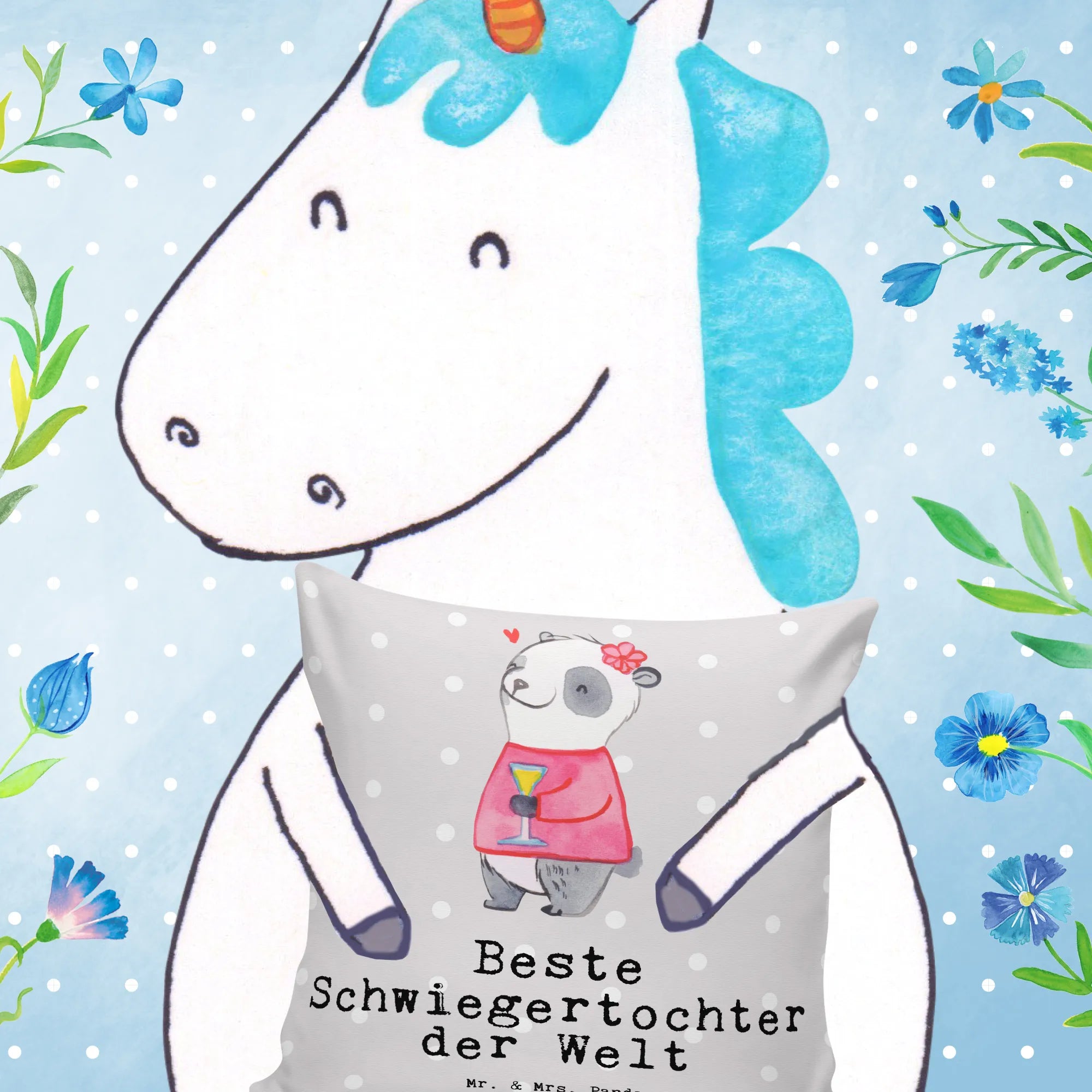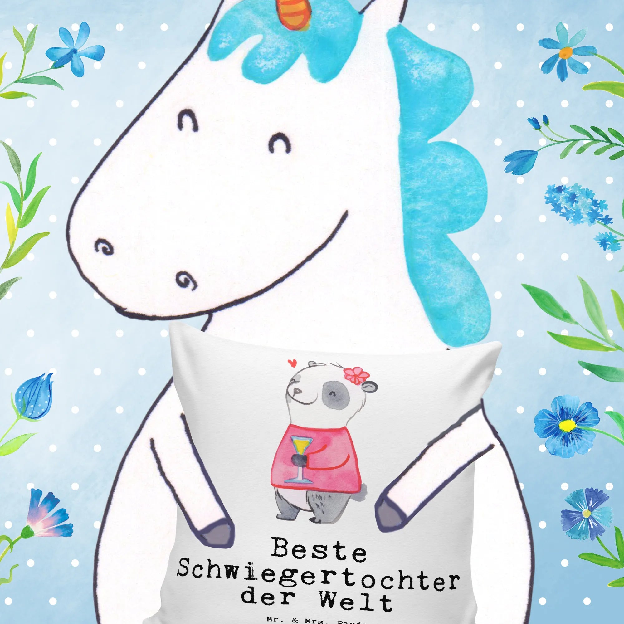 Die Kollektion 'Beziehungen' von Mr. & Mrs. Panda umfasst über 150 handgemalte Motive und Sprüche rund um die Themen Familie und Freundschaft. Jedes Produkt ist ein kleines Kunstwerk, das deine Zuneigung zu den Menschen zeigt, die dir am Herzen liegen. Mach deine Schwiegertochter glücklich mit diesem entzückenden Kissen und bringe frischen Wind in ihr Zuhause!