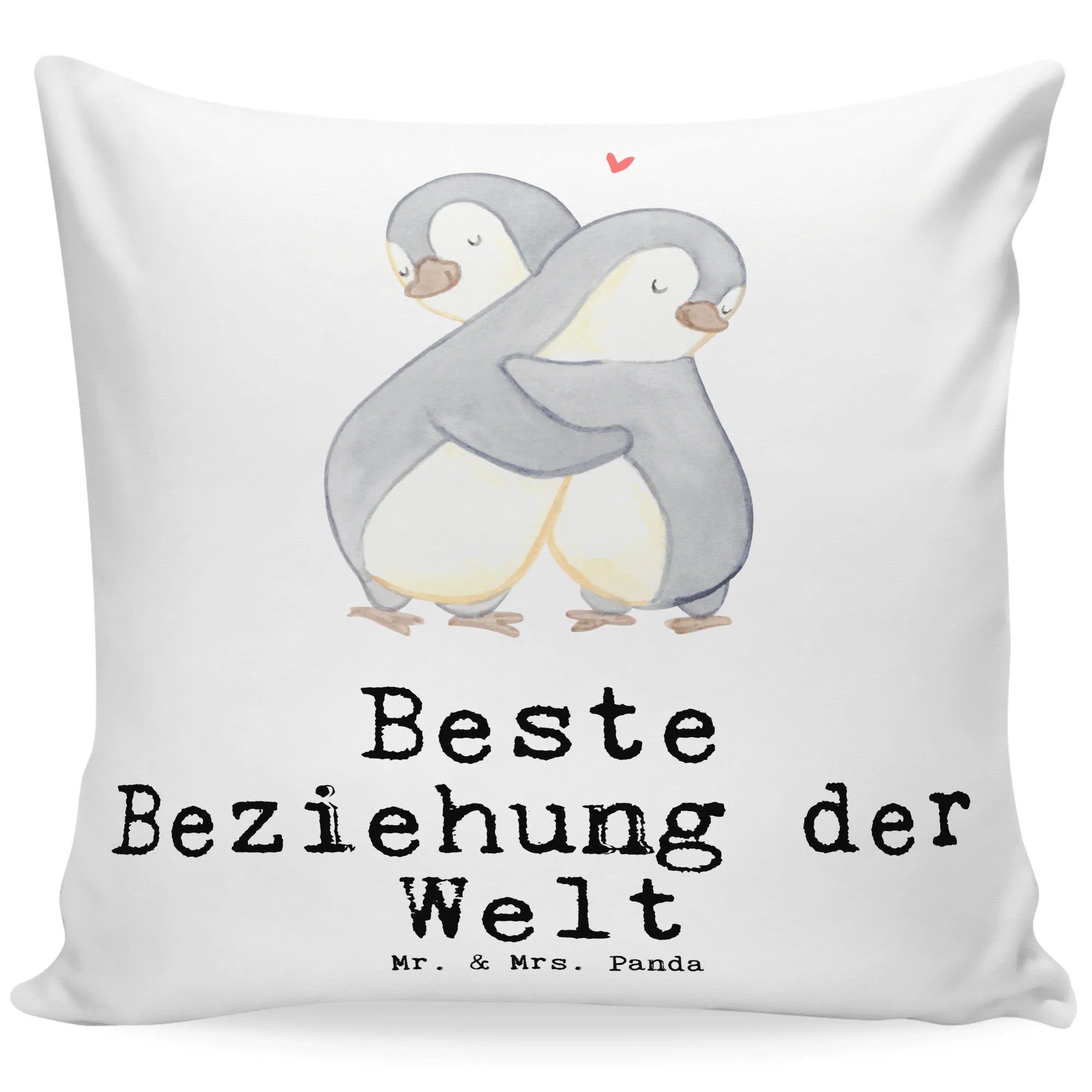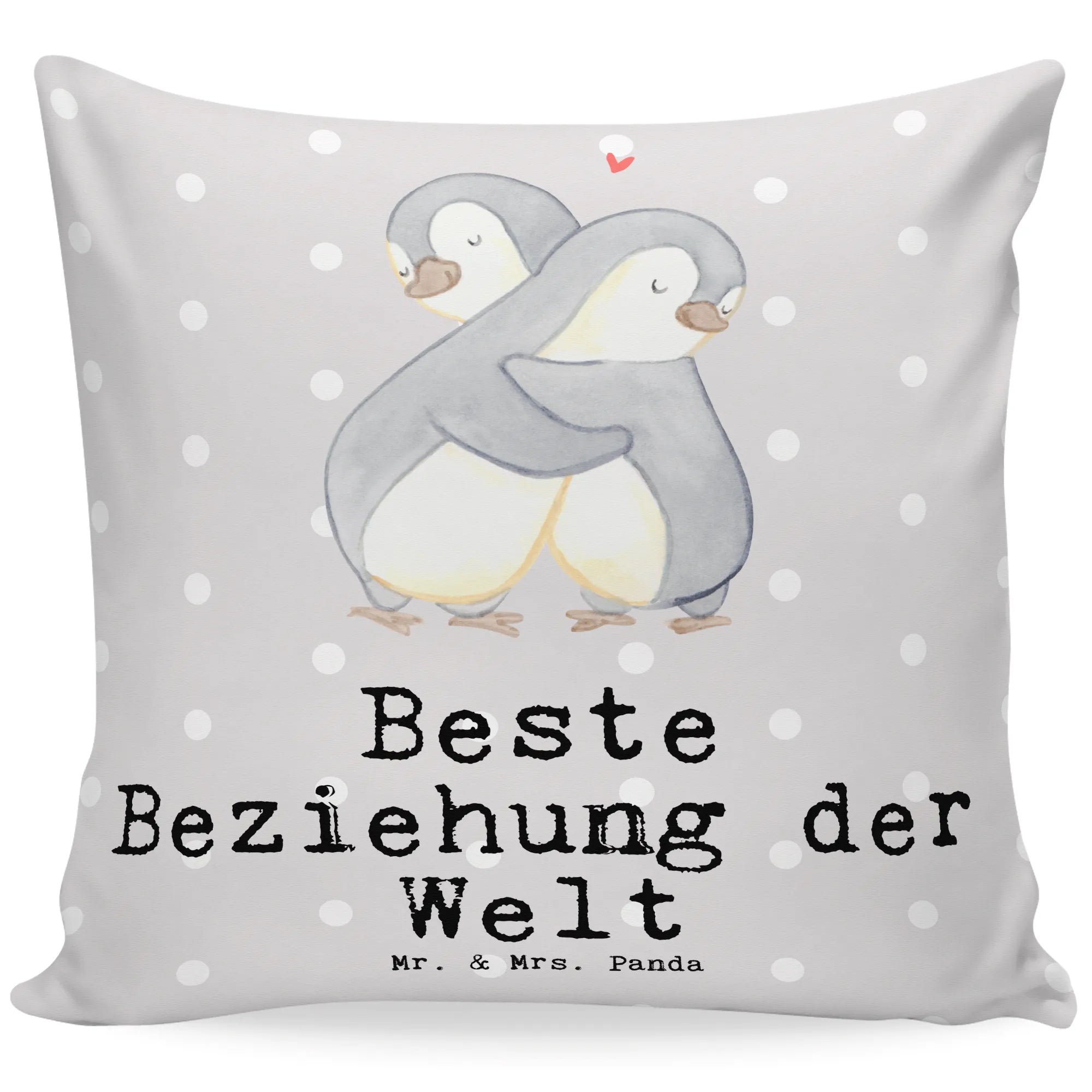 Entdecke das zauberhafte 40x40 Kissen "Pinguin Beste Beziehung der Welt" von Mr. & Mrs. Panda, das perfekte Geschenk für deine Liebsten!