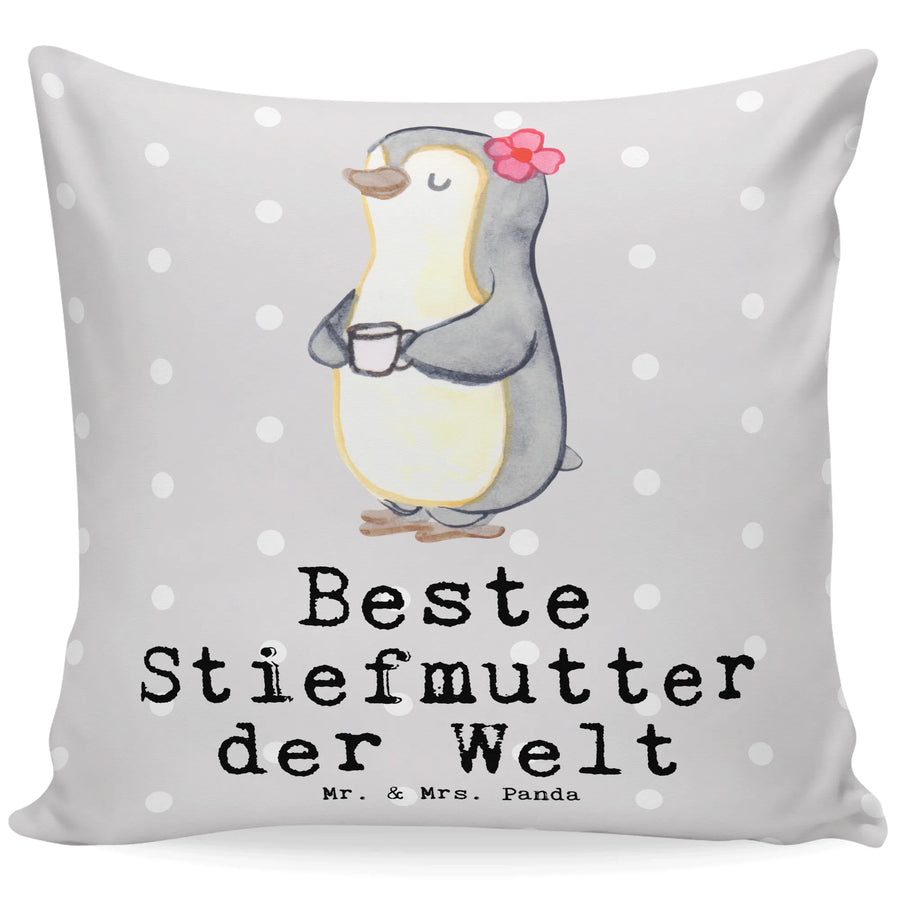 40x40 Kissen Pinguin Beste Stiefmutter der Welt - Grau Pastell