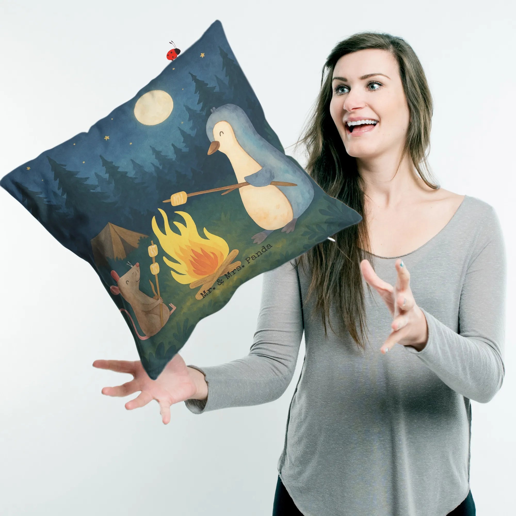 40x40 Kissen Pinguin Lagerfeuer Design – Mr. & Mrs. Panda
