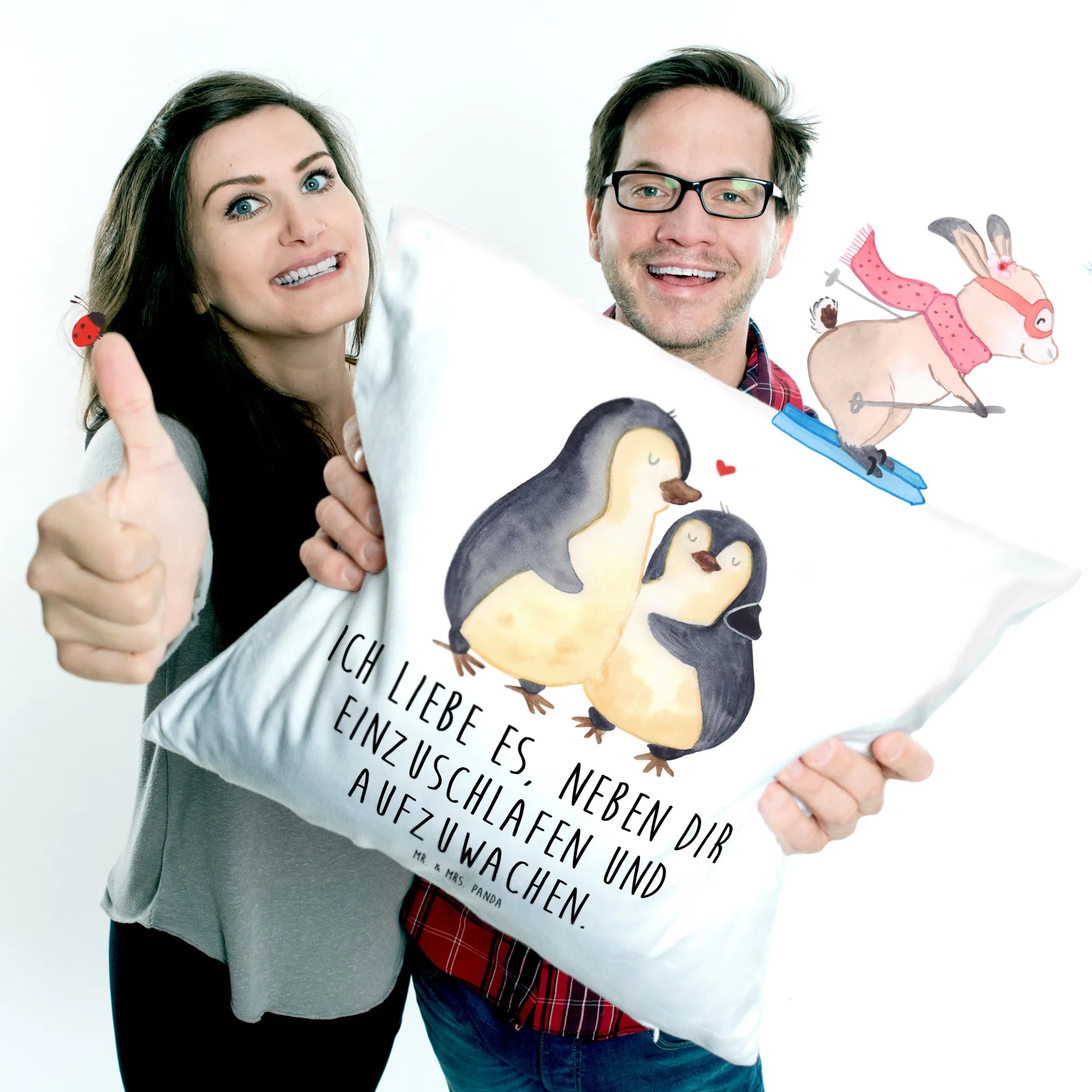 Entdecke die perfekte Kissenhülle für die Liebenden in deinem Leben - unser 40x40 Kissen mit dem bezaubernden Motiv "Pinguine Einschlafen" aus der Kollektion Liebe von Mr. & Mrs. Panda. Dieses Kissen ist nicht nur ein praktisches Wohnaccessoire, sondern auch ein Ausdruck von Zuneigung und Verbundenheit.