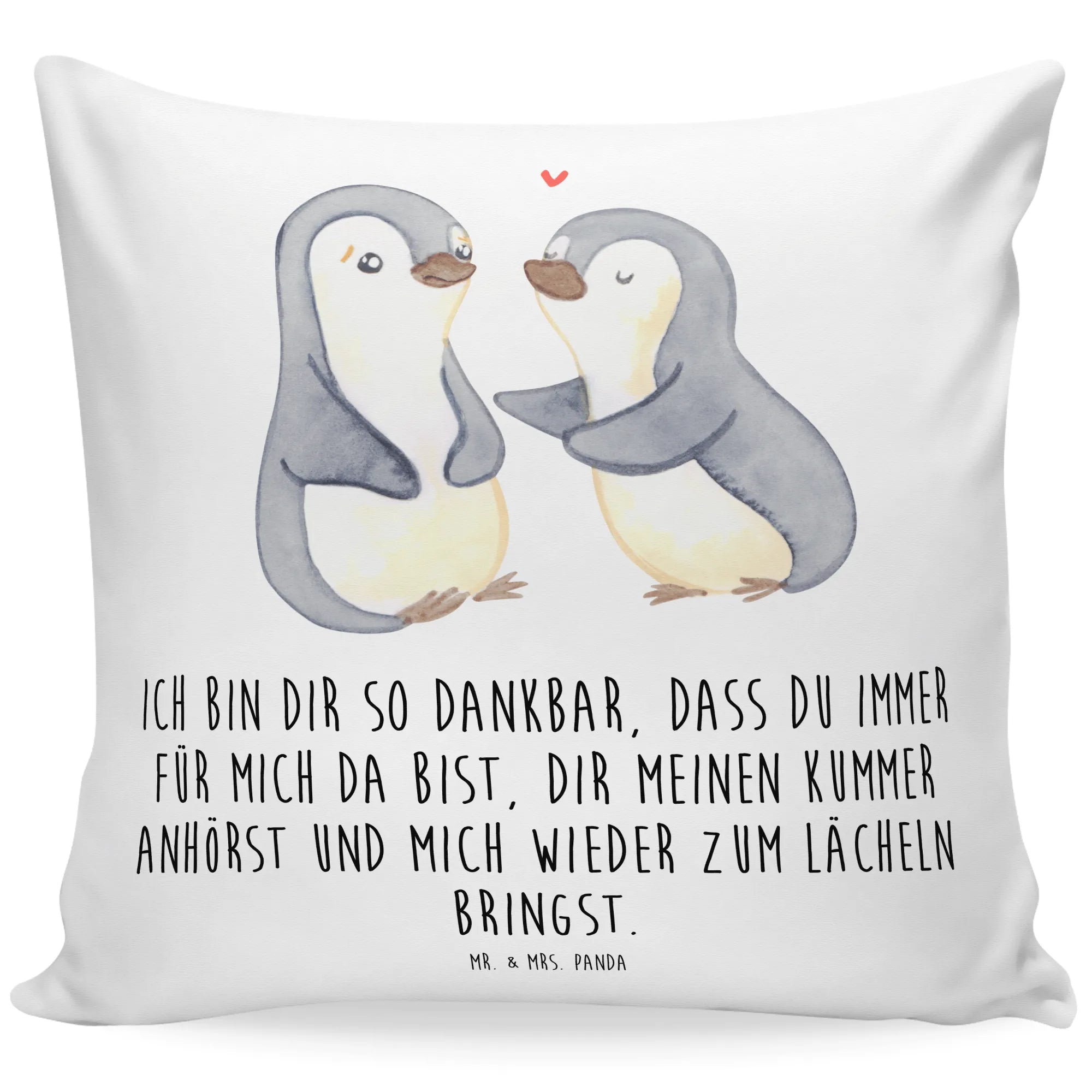 Wenn du auf der Suche nach einem einzigartigen Kissen bist, das nicht nur schön aussieht, sondern auch Trost spendet, dann ist die Kissenhülle "Pinguine trösten" aus der liebevollen Kollektion von Mr. & Mrs. Panda genau das Richtige für dich.