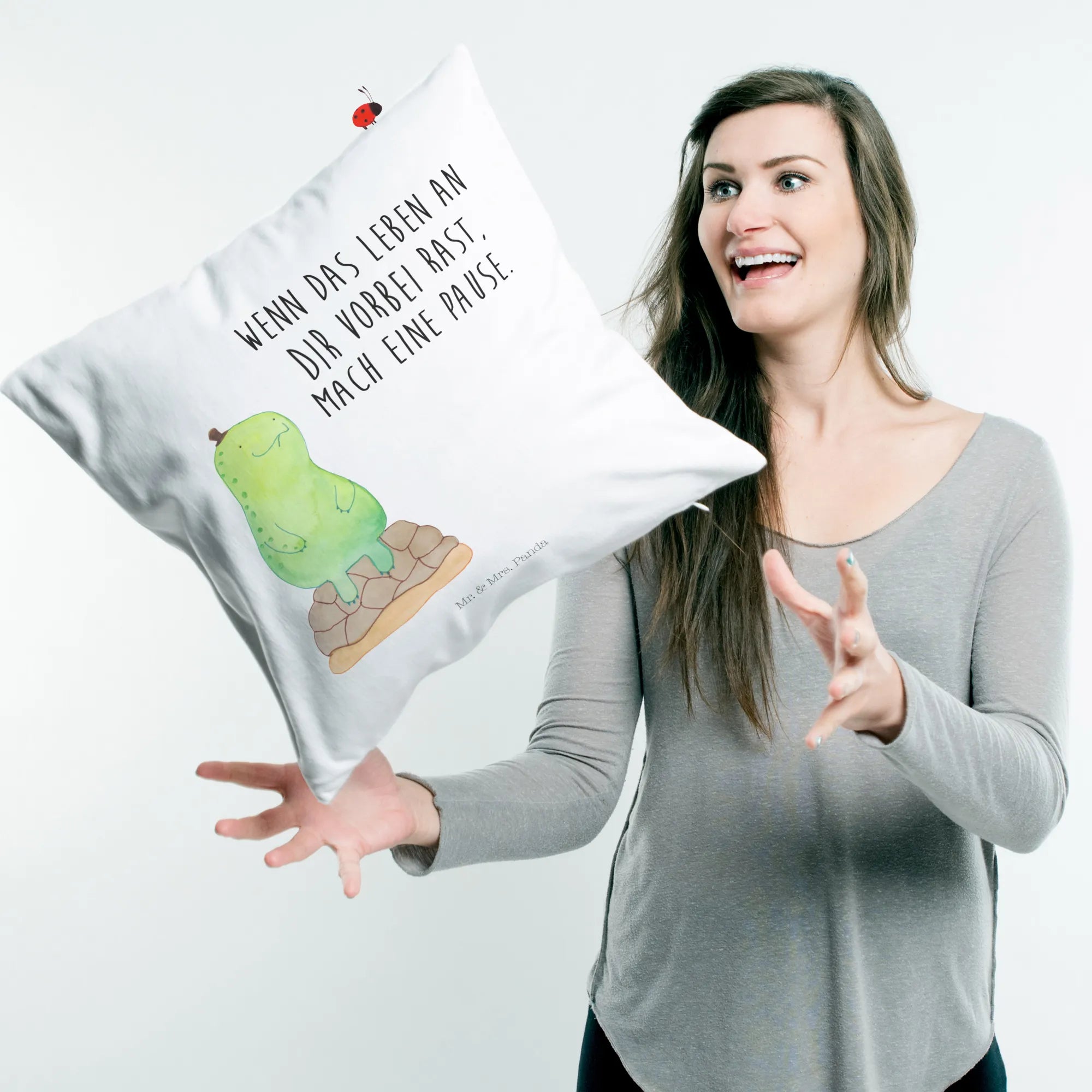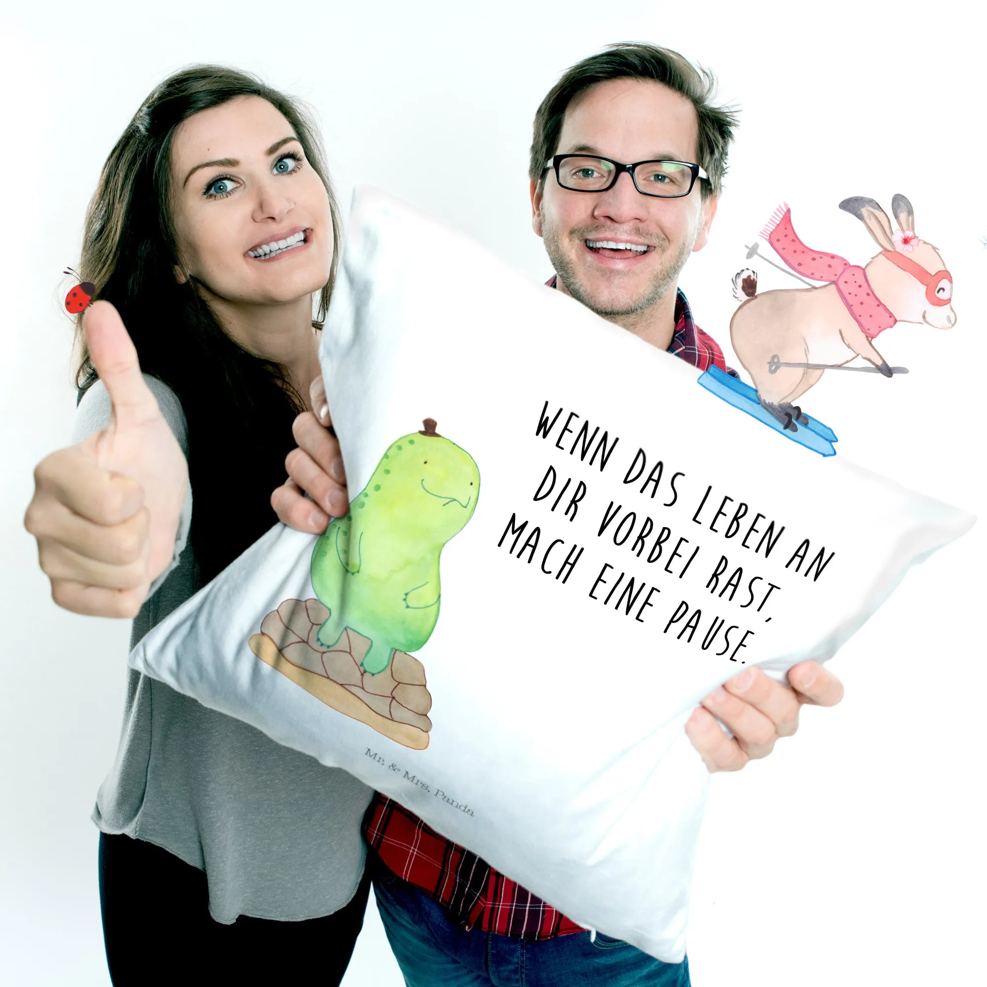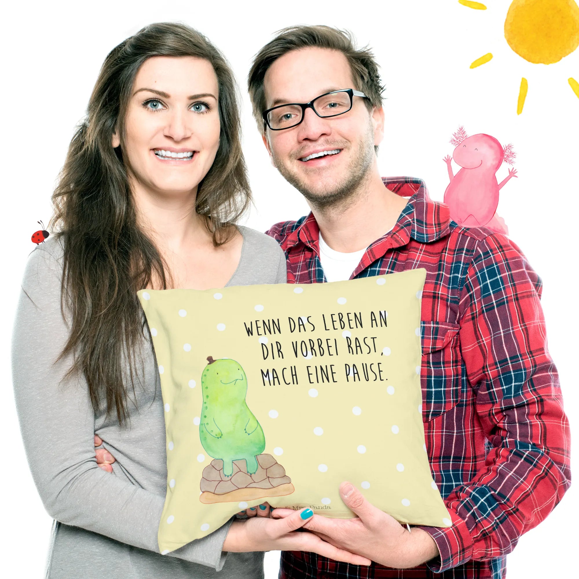 Das 40x40 Kissen "Schildkröte pausiert" von Mr. & Mrs. Panda ist das perfekte Geschenk für alle, die Wert auf Entschleunigung und Achtsamkeit legen. Die niedliche Schildkröte auf dem Kissen erinnert uns daran, uns eine Auszeit zu gönnen. Ob zu besonderen Anlässen wie Geburtstagen, Hochzeiten oder einfach als nette Geste – dieses Kissen ist ein wunderbares Geschenk für Freunde, Familie oder sogar für dich selbst.