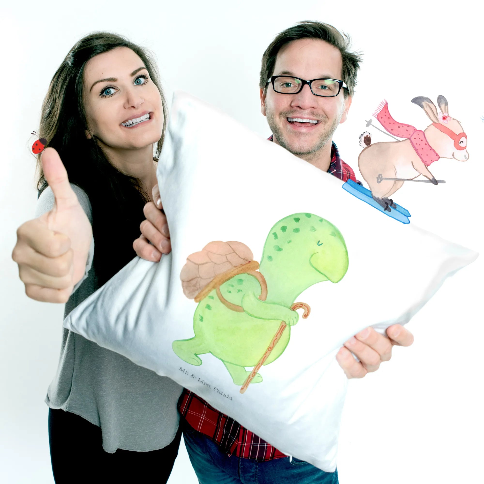 Die Schildkröten Kollektion von Mr. & Mrs. Panda ist eine liebevoll von Hand gezeichnete Sammlung, die nicht nur Kinder, sondern auch Erwachsene begeistert. Jedes Motiv wurde mit viel Liebe zum Detail erstellt und fängt die Herzenswärme und Lebensfreude perfekt ein. Schenke Deinem Lieblingsmenschen ein Stückchen Inspiration und Freude mit diesem ganz besonderen Kissen. Also, worauf wartest Du? Lass die Schildkröte auf ihrem Abenteuer für Dich den Weg zu neuen Horizonten zeigen!