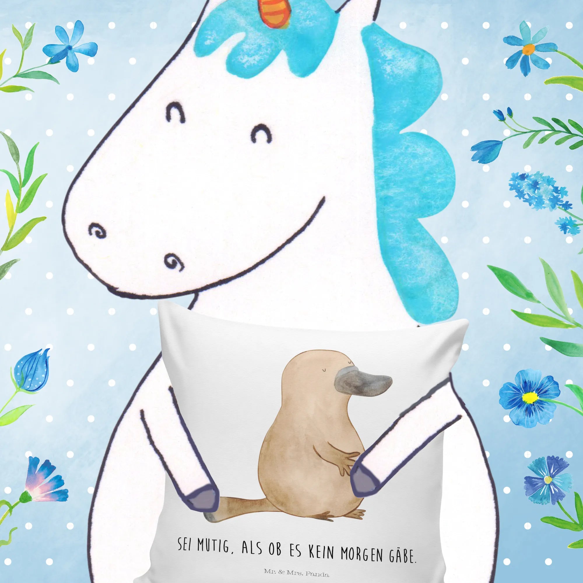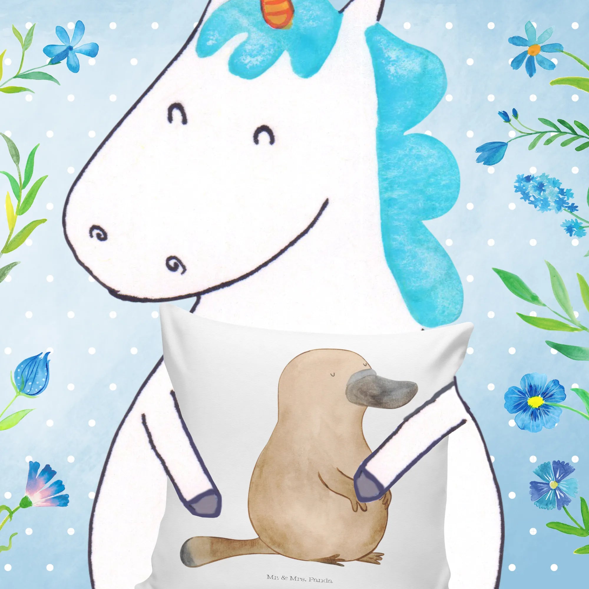 Ein ideales Geschenk für neue Lebensabschnitte, wie einen Neuanfang, ein Weltreise-Abenteuer oder einfach für jeden, der eine kleine Portion Motivation gebrauchen kann! Verschenke Freude und Mut – mit dem Schnabeltier-Kissen von Mr. & Mrs. Panda, das jeden Raum mit seiner positiven Botschaft erfüllt.