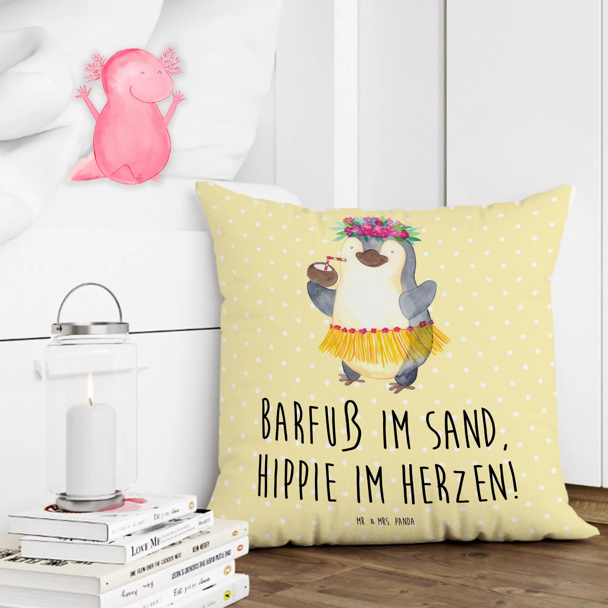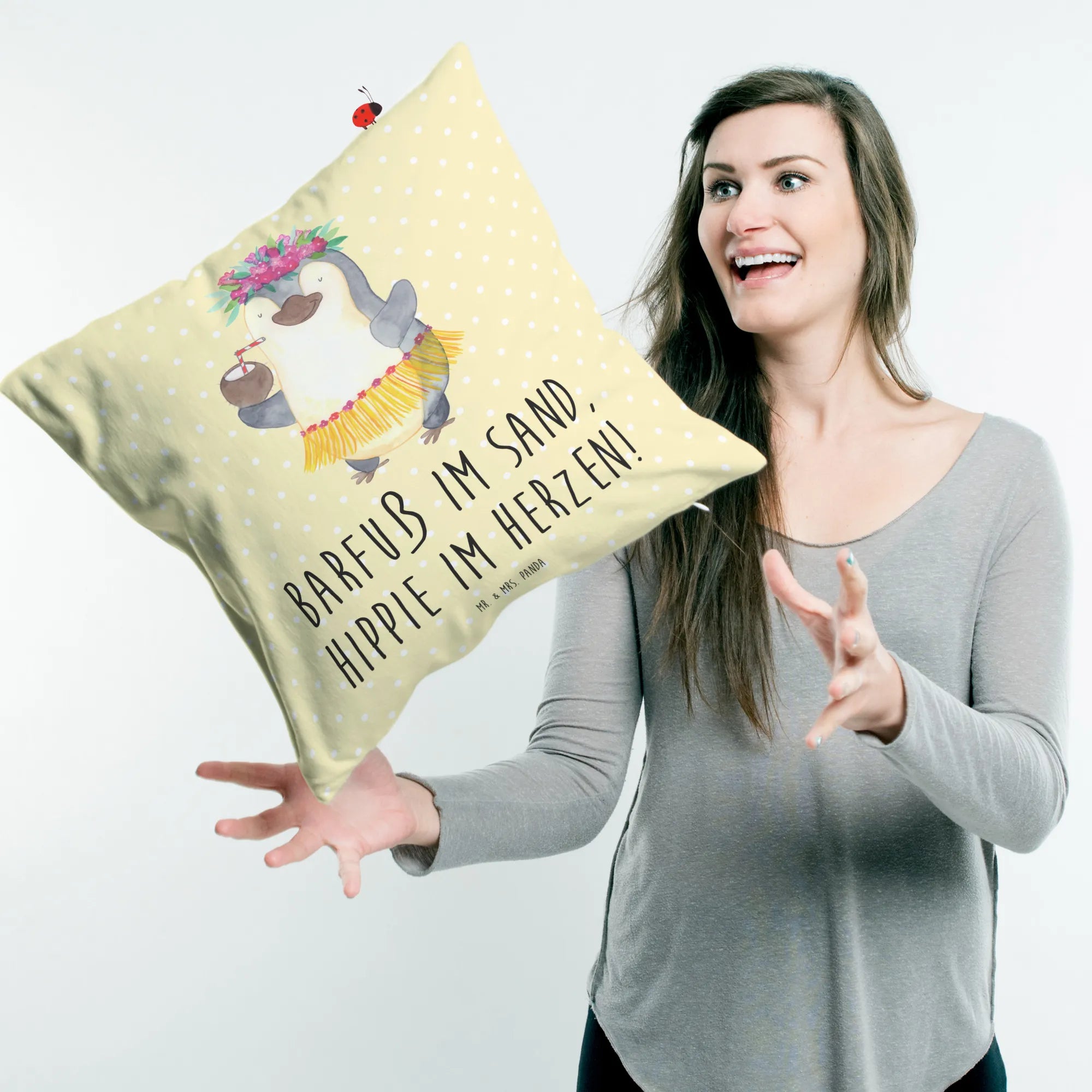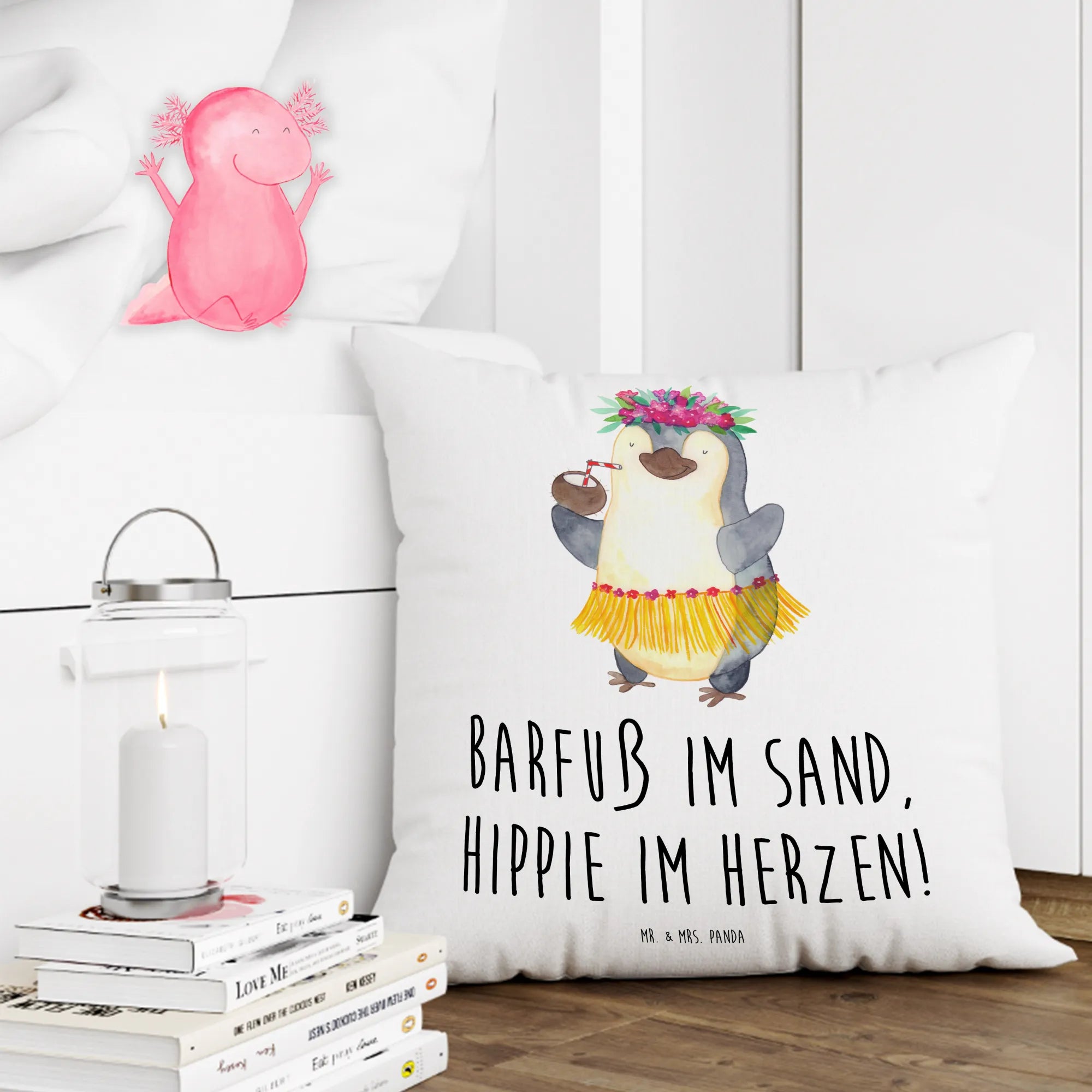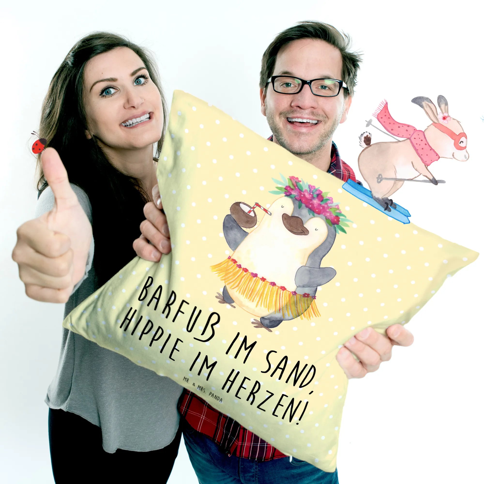Entdecke das perfekte Kissen für deine Sommerträume! Die 40x40 Kissenhülle von Mr. & Mrs. Panda präsentiert ein wunderschönes Sommermotiv, das dir das Gefühl von Freiheit und Abenteuer bringt. Der liebevoll gestaltete Spruch 'Barfuß im Sand, Hippie im Herzen!' zaubert dir jedes Mal ein Lächeln ins Gesicht, wenn du auf deinem Sofa, deinem Bett oder deinem Lieblingssessel entspannst.