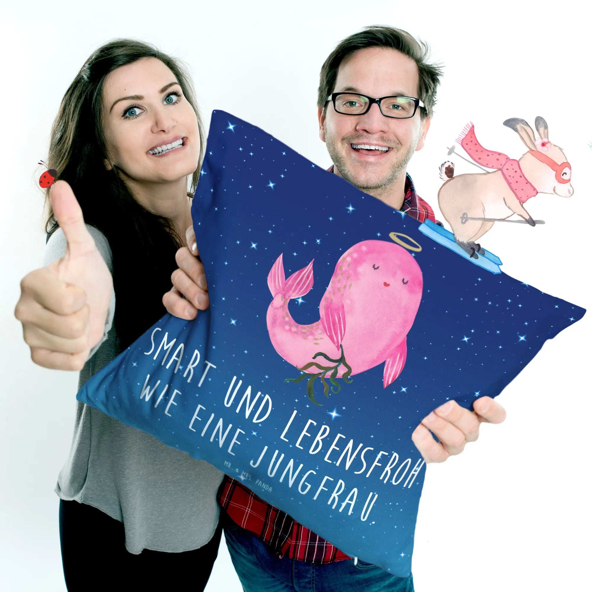 Entdecke die wundervolle 40x40 Kissenhülle mit dem Motiv "Sternzeichen Jungfrau" von Mr. & Mrs. Panda! Dieses Kissen ist nicht nur ein echter Hingucker, sondern auch das perfekte Geschenk für all jene, die im September oder August geboren sind und stolz ihr Sternzeichen zeigen möchten.