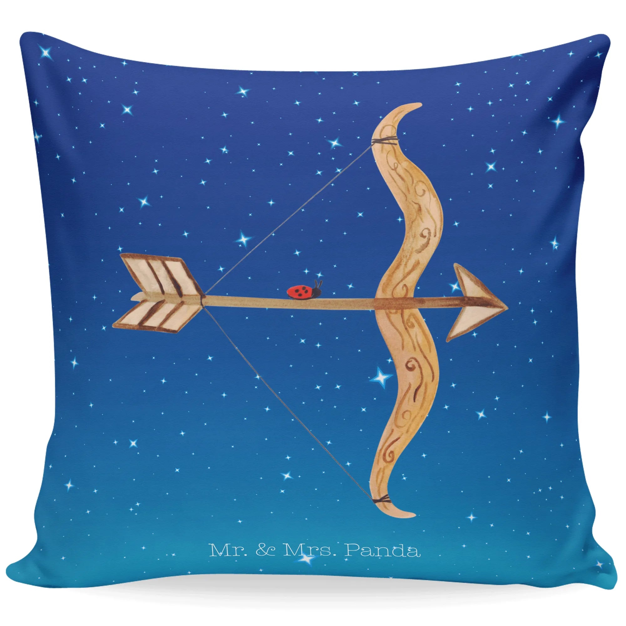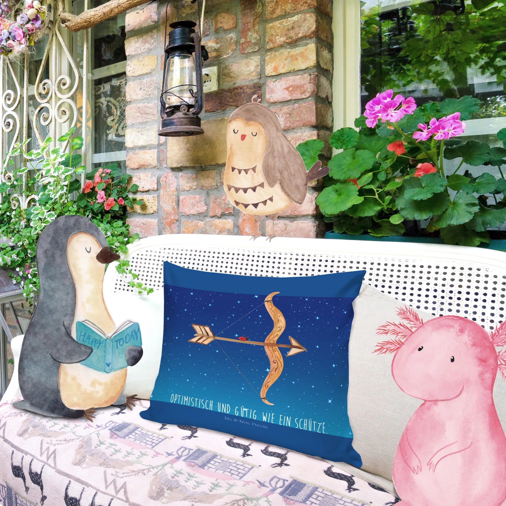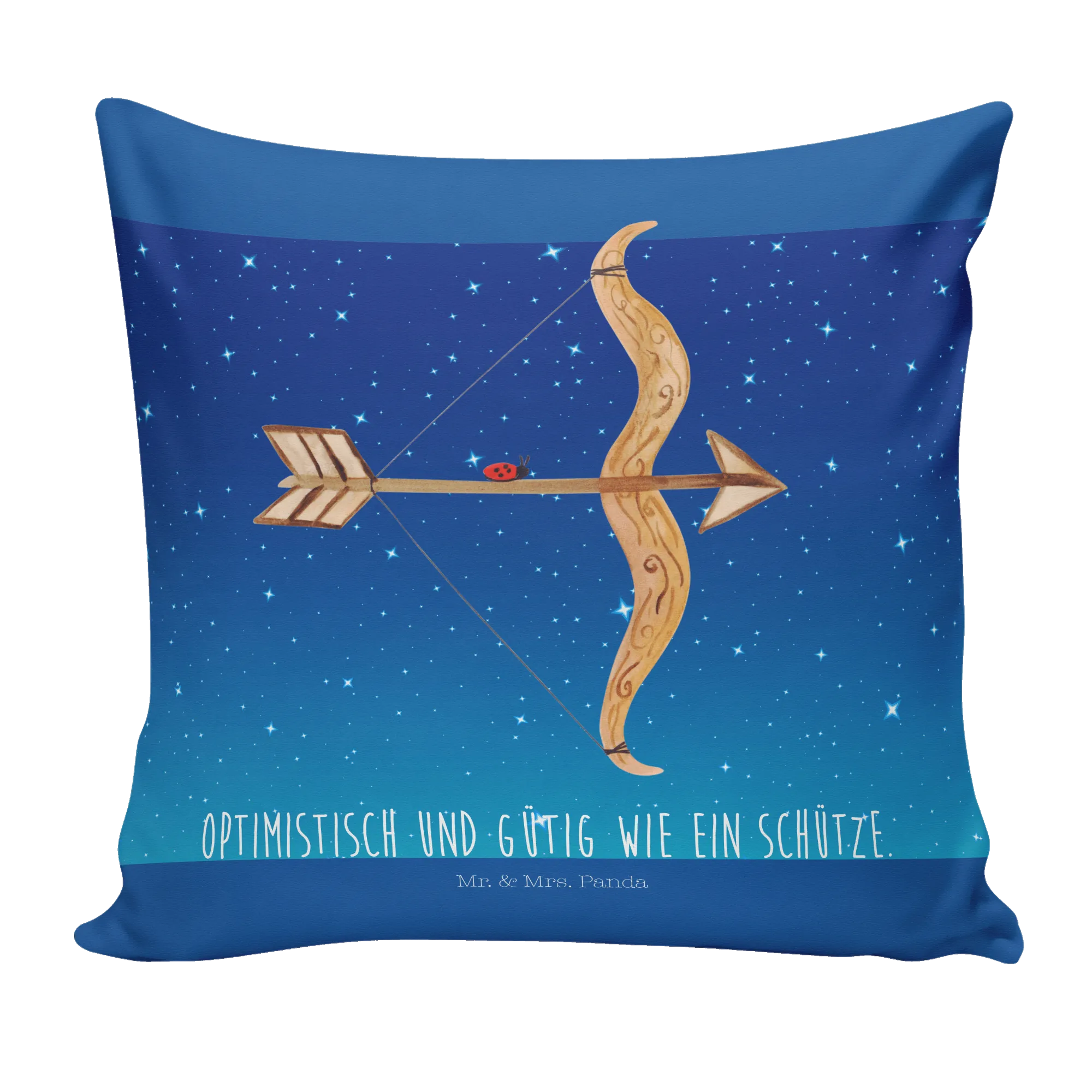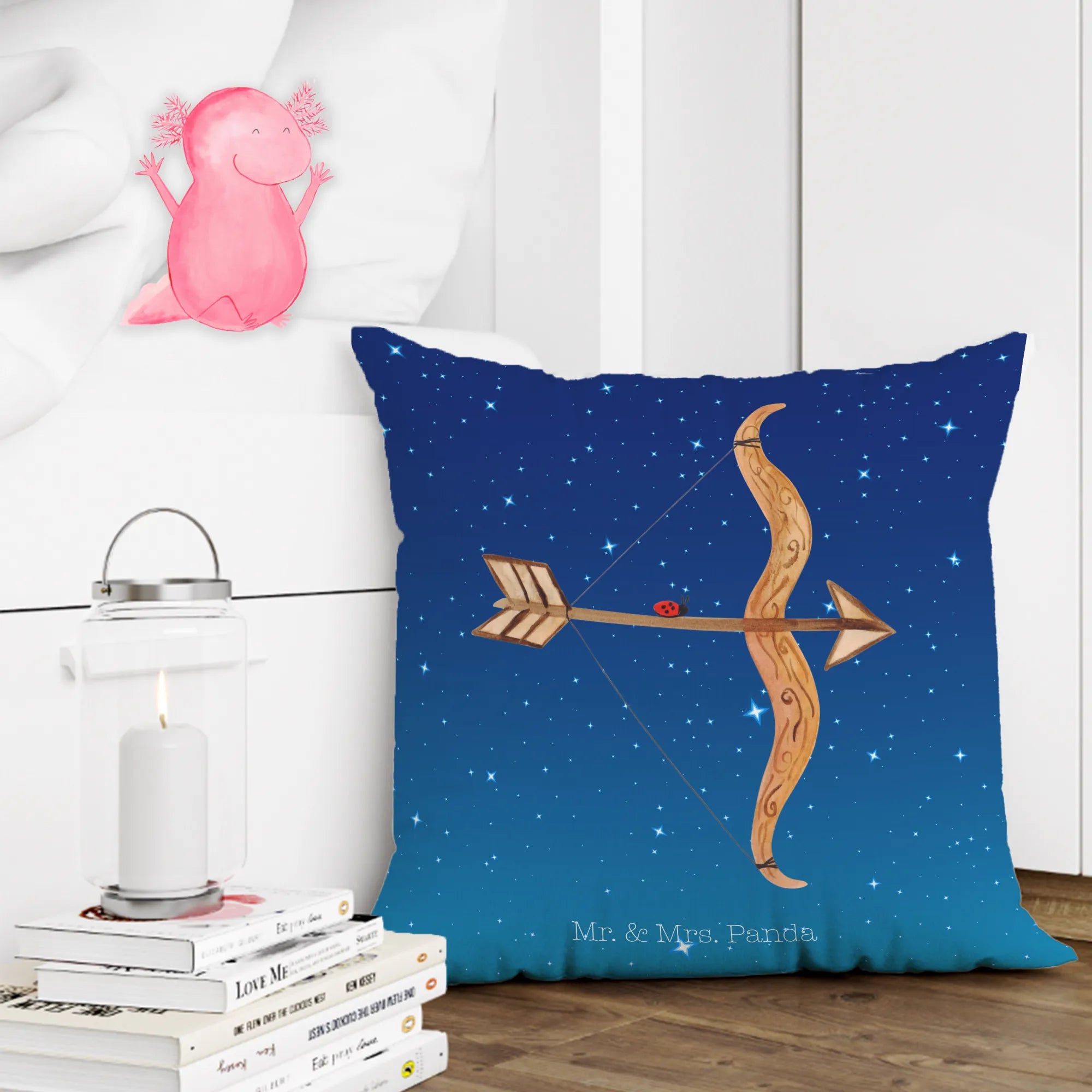 Das 40x40 Kissen mit dem zauberhaften Motiv des Sternzeichens Schütze von Mr. & Mrs. Panda ist das perfekte Geschenk für alle, die im November oder Dezember Geburtstag haben oder für die, die das Schützenfest feiern! Dieses hübsche Dekokissen begeistert nicht nur durch sein superfluschiges Mikrofaser-Material, sondern auch durch den romantischen Spruch 'Optimistisch und gütig wie ein Schütze', der das Kissen zu einem ganz besonderen Schmuckstück in deinem Zuhause macht.