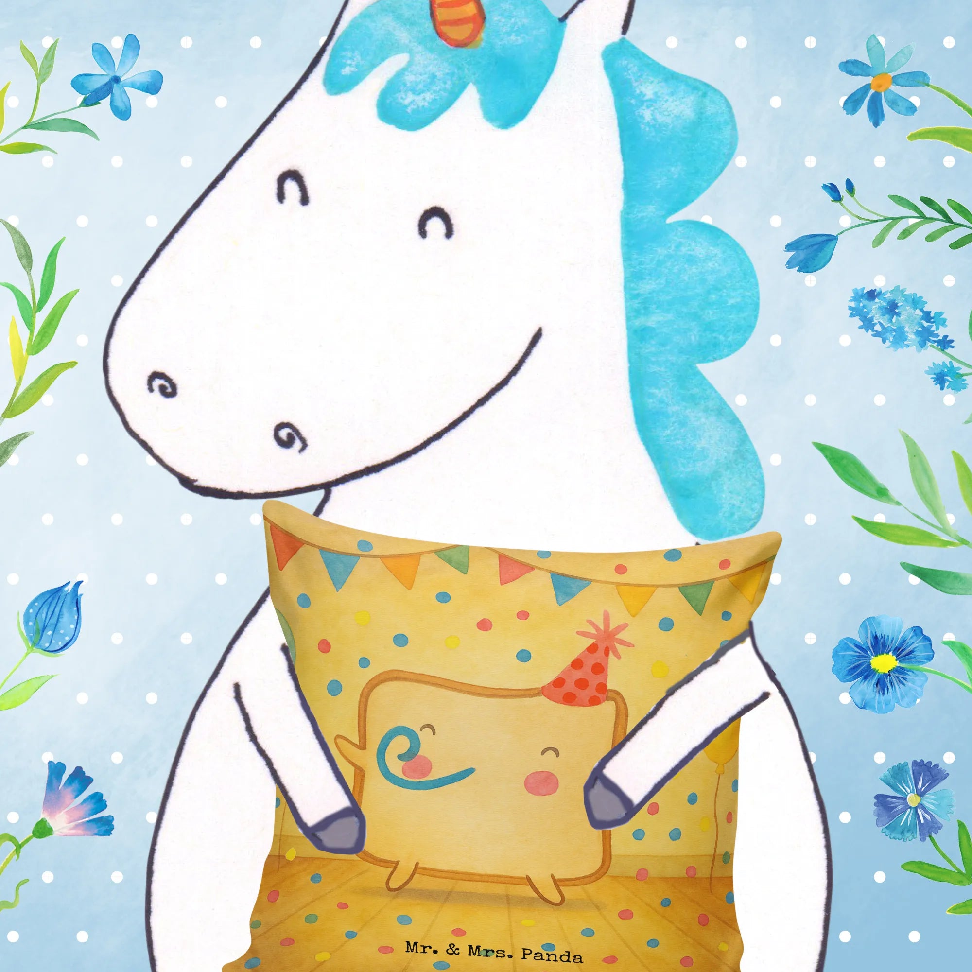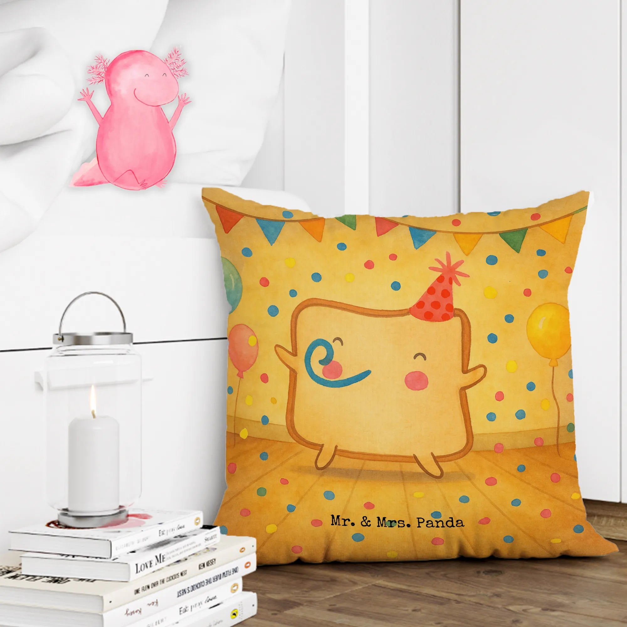 Verschenke Nähe, Freude und ein bisschen Party-Stimmung – mit dem Mr. & Mrs. Panda Toast Party 40x40 Kissen, dem kleinen, großen Geschenk für deine Liebsten.