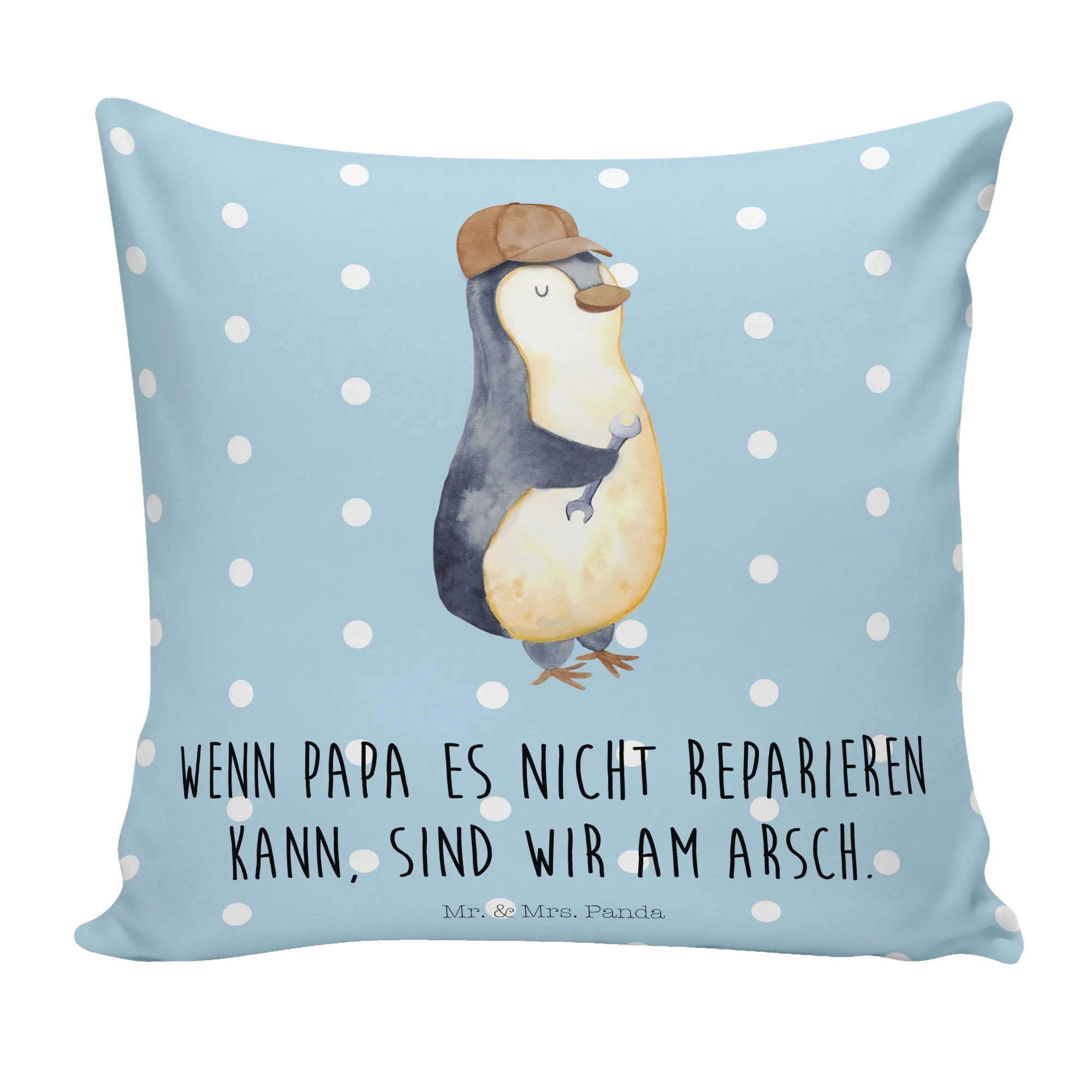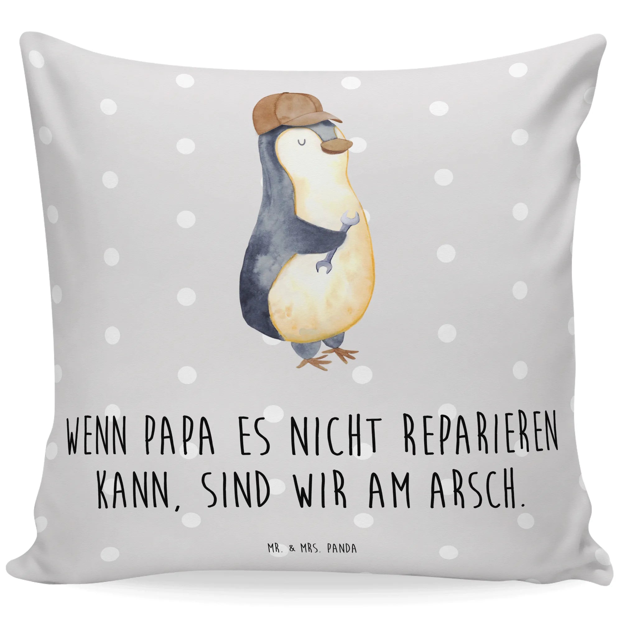 Entdecke das perfekte Geschenk für den besten Papa der Welt mit unserer Kissenhülle "Wenn Papa es nicht reparieren kann, sind wir am Arsch" von Mr. & Mrs. Panda. Diese liebevoll gestaltete Kissenhülle ist nicht nur ein echter Hingucker, sondern bringt auch einen Hauch von Humor in jedes Wohnzimmer.