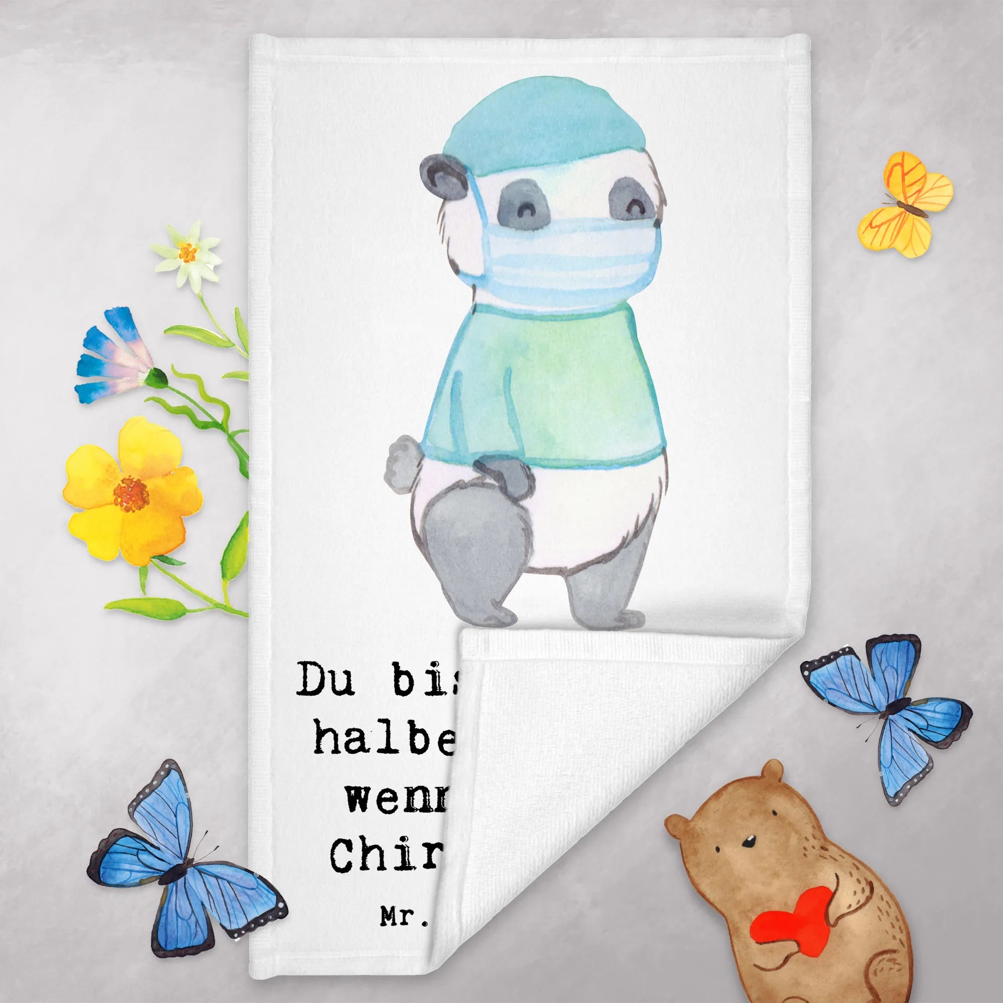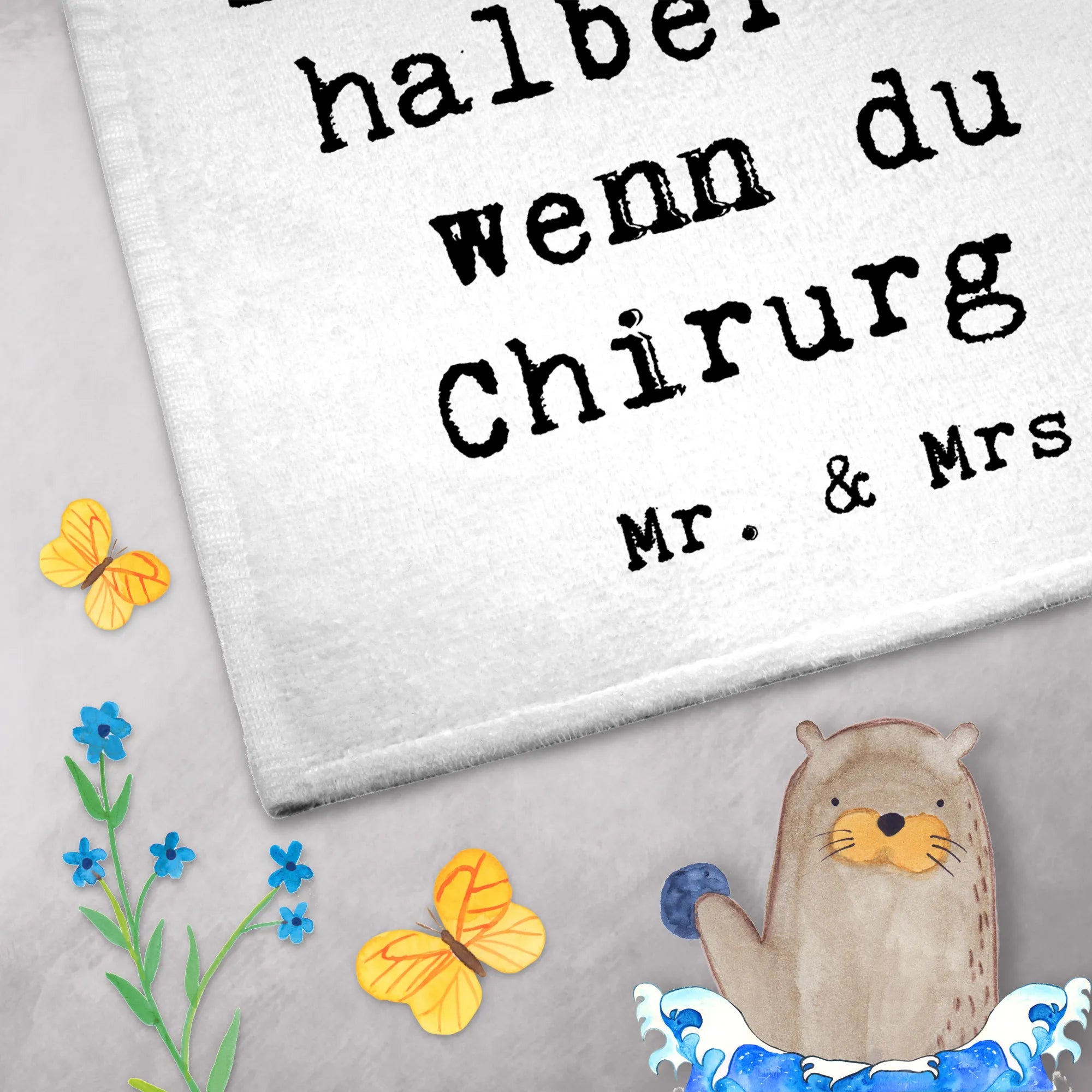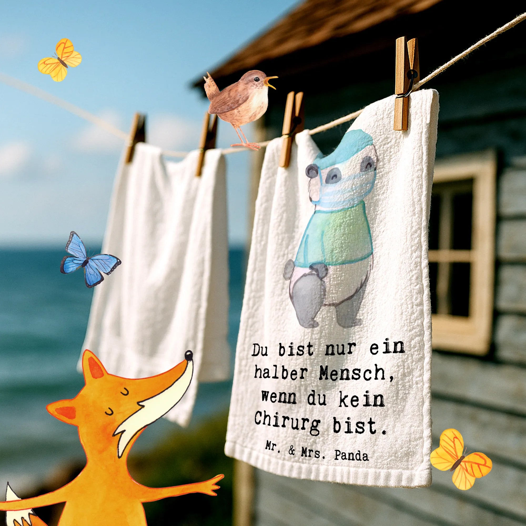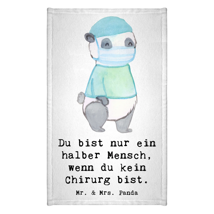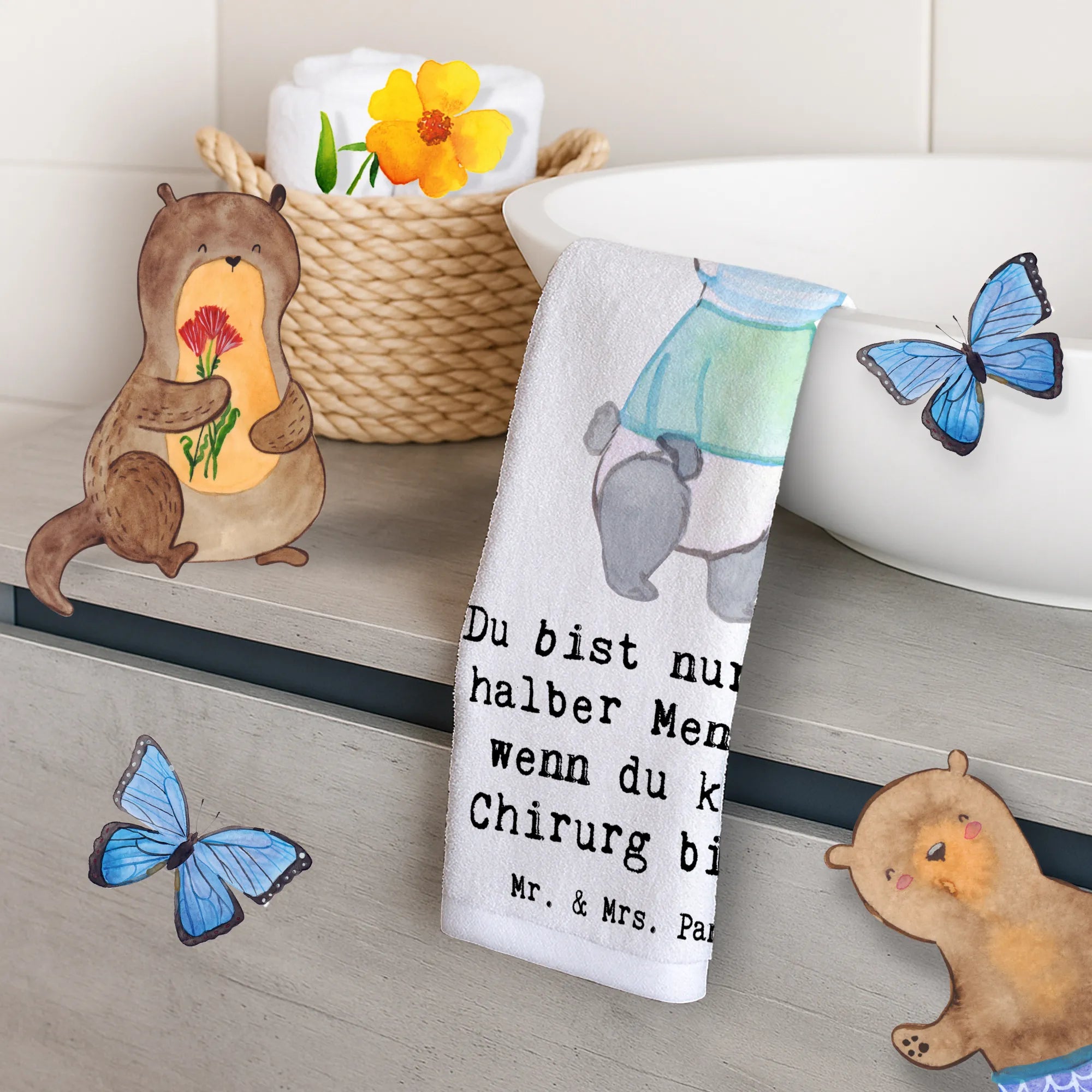 Das süße Gästehandtuch "Chirurg mit Herz" aus der kreativen Berufe-Kollektion von Mr. & Mrs. Panda ist das perfekte Geschenk für alle, die in der medizinischen Versorgungsbranche tätig sind. Es vereint Funktionalität mit einem liebevollen Design und bringt ein Lächeln in jedes Badezimmer. Ob Du es für Deine Kollegen, Freunde oder Familienmitglieder kaufst, dieses Handtuch ist eine wunderbare Art, Danke zu sagen. Mit dem originellen Motiv zeigt das Handtuch den Spruch "Du bist nur ein halber Mensch, wenn du kein Chirurg bist." und bietet gleichzeitig die Möglichkeit, jedem Raum ein wenig Farbe und Freude zu verleihen.