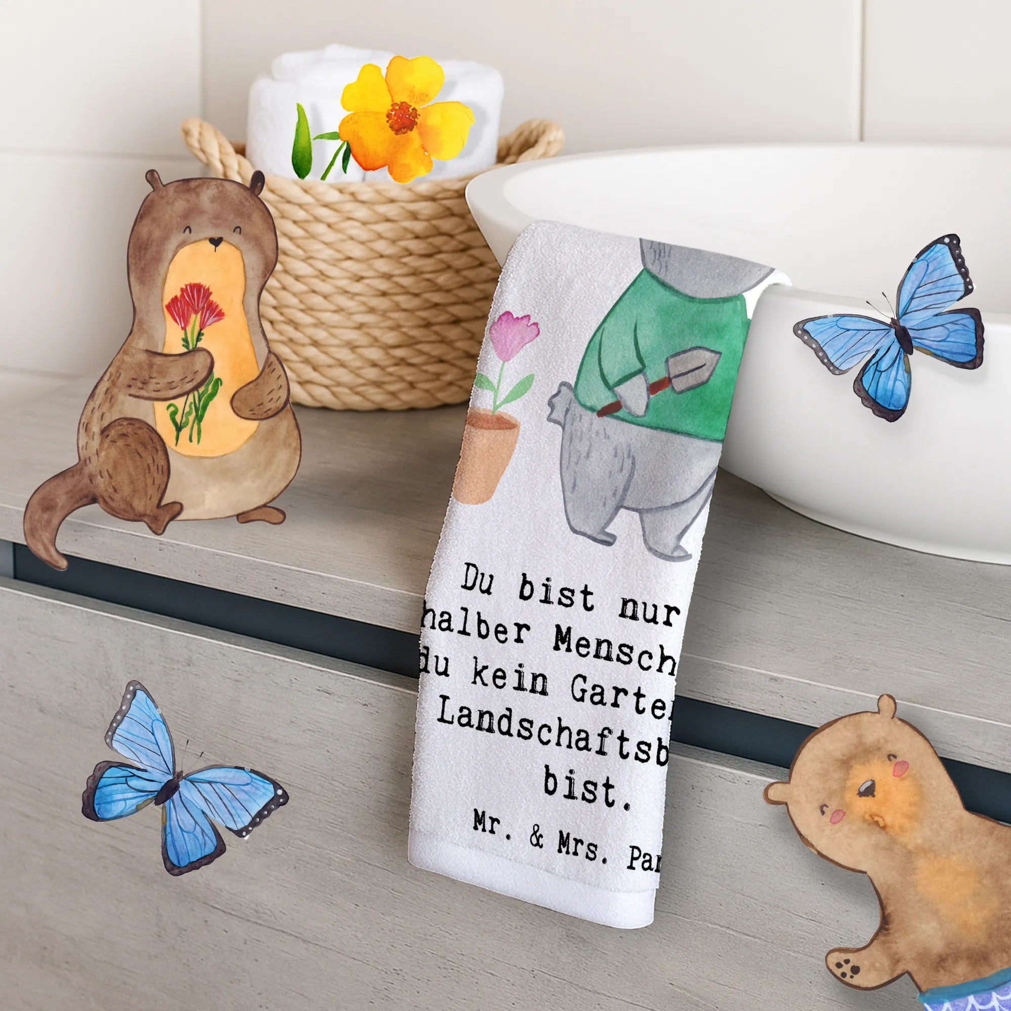 Das Gästehandtuch "Garten- und Landschaftsbauer mit Herz" von Mr. & Mrs. Panda ist das perfekte Geschenk für alle Hobbygärtner, Landschaftsbauer und Gartenliebhaber. Mit einem zauberhaften Koala, der seine Schaufel schwingt, erinnert dieses Handtuch an die Leidenschaft und Hingabe für den Gartenbau!