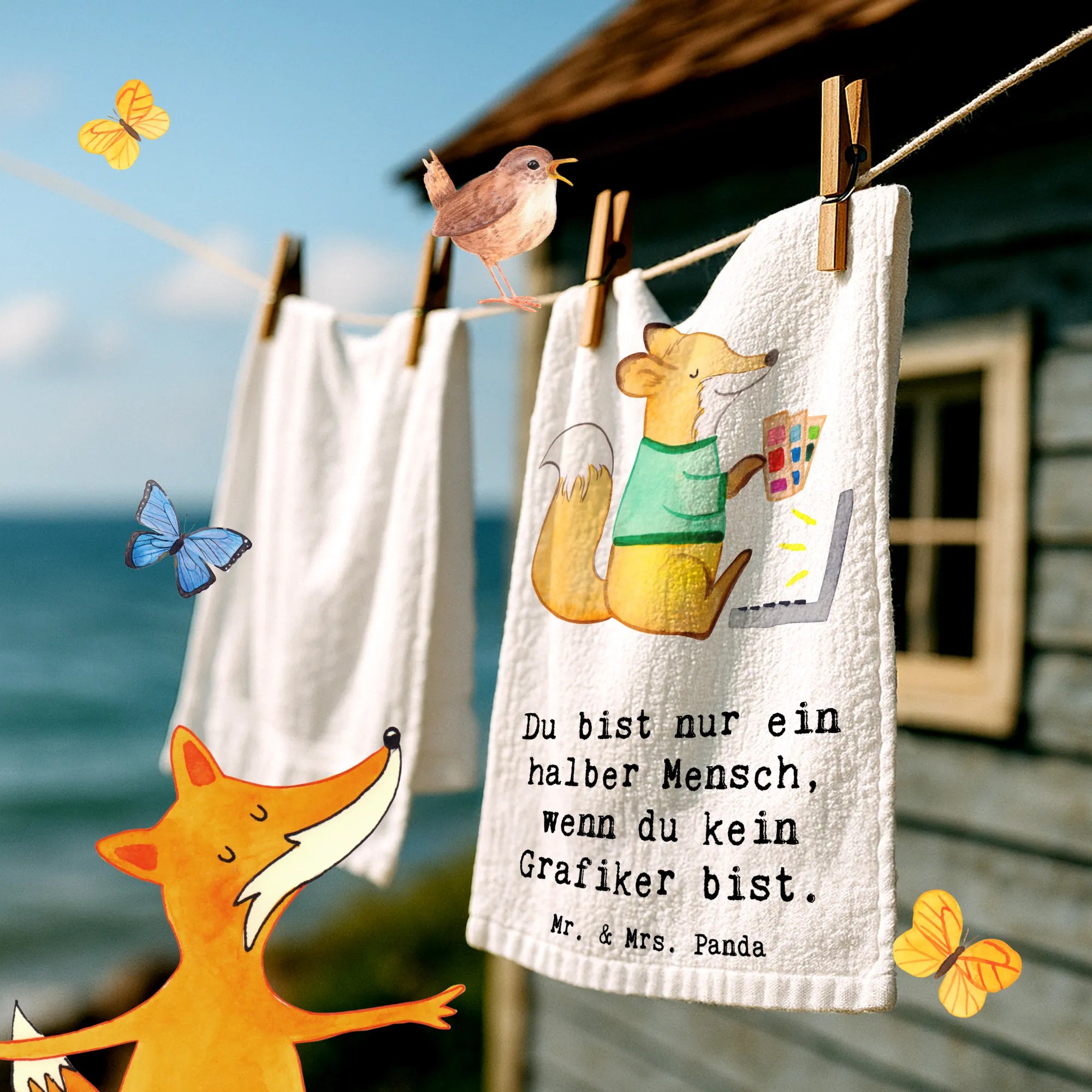 Das Gästehandtuch "Grafiker mit Herz" von Mr. & Mrs. Panda ist die perfekte Geschenkidee für kreative Köpfe und Mediengestalter. Dieses liebevoll gestaltete Handtuch ist mehr als nur ein praktisches Badetuch – es ist ein Ausdruck der Wertschätzung für all jene, die in der Welt der Grafikdesigns tätig sind oder einfach die Leidenschaft für kreative Berufe teilen. Neben seinem fröhlichen Design zeigt das Tuch einen niedlichen Fuchs mit einer Farbpalette und dem Spruch "Du bist nur ein halber Mensch, wenn du kein Grafiker bist." Damit wird jeder Grafiker zum Schmunzeln gebracht. Ob im Gästebad oder im Büro – es bringt bunten Charme in jeden Raum.