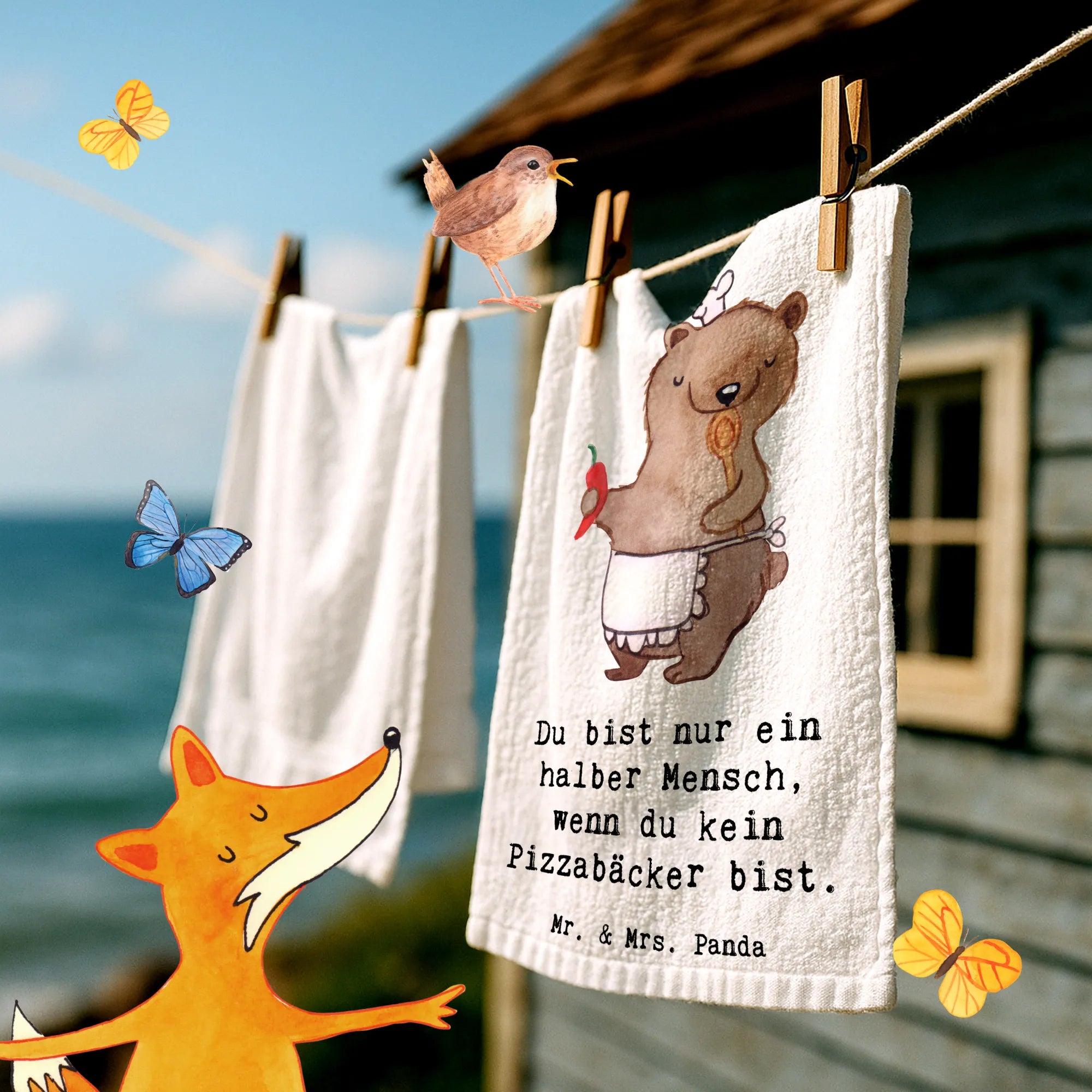Das liebevoll gestaltete Gästehandtuch "Pizzabäcker mit Herz" von Mr. & Mrs. Panda ist das perfekte Geschenk für alle leidenschaftlichen Pizzabäcker und jene, die es werden wollen. Mit einem fröhlichen Motiv und dem charmanten Spruch "Du bist nur ein halber Mensch, wenn du kein Pizzabäcker bist", bringt dieses Handtuch nicht nur Freude in jede Küche, sondern erinnert auch alle daran, wie wichtig die kleine Kunst des Pizzamachens ist.