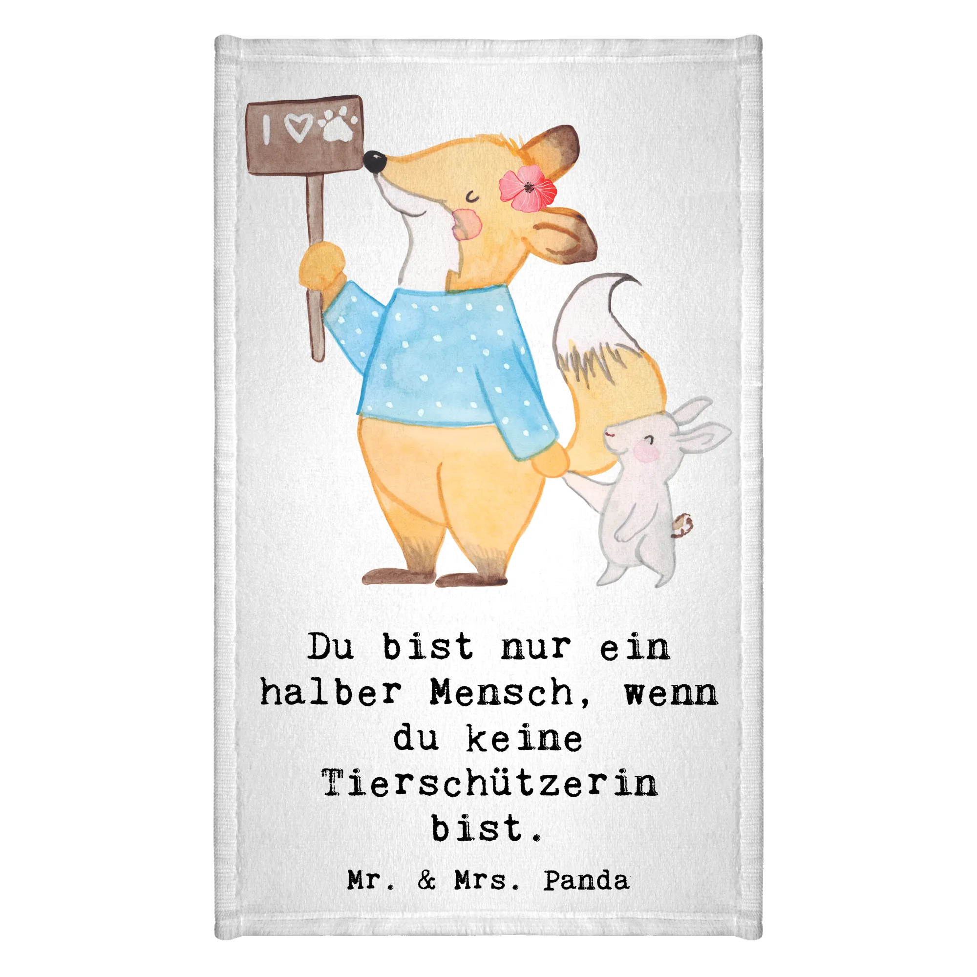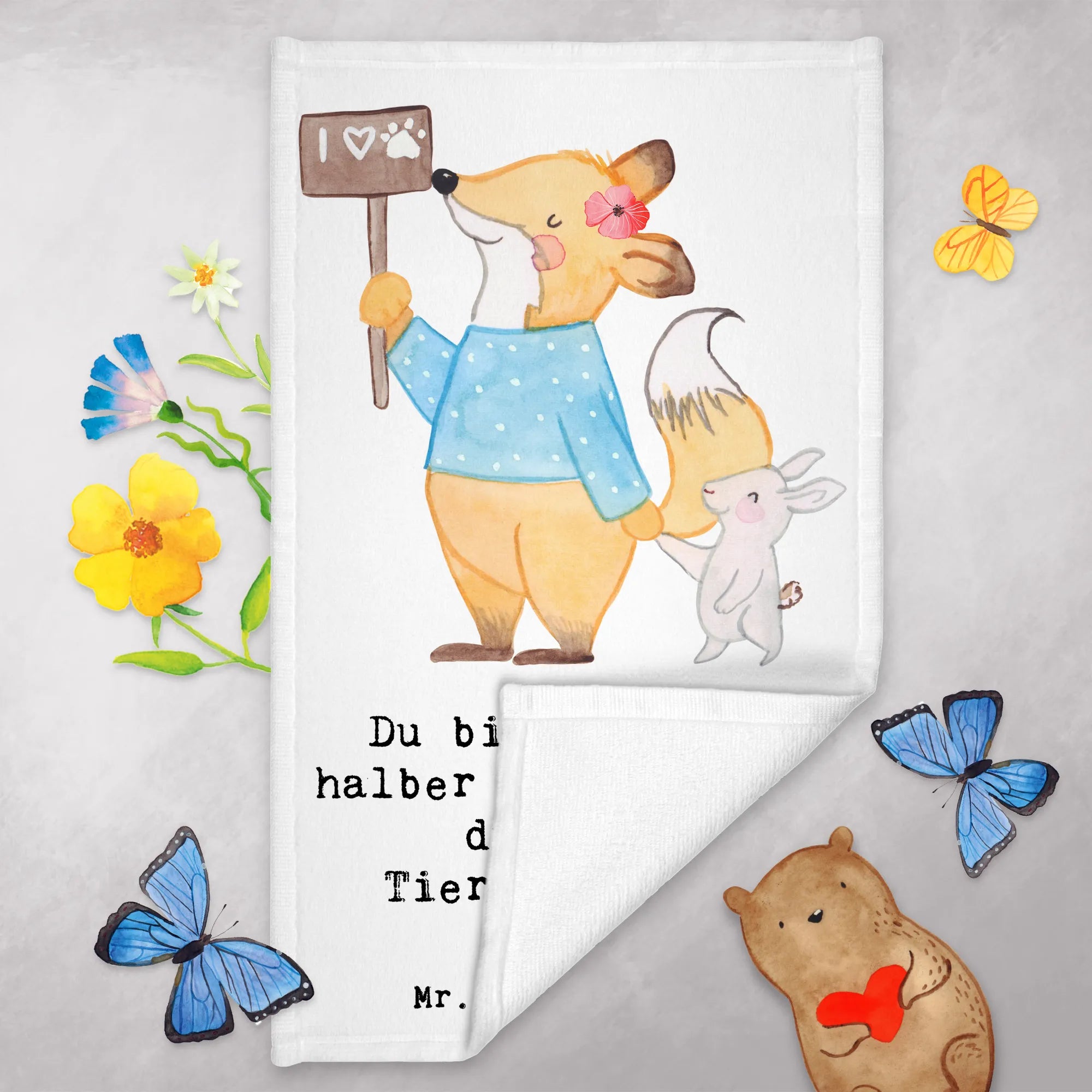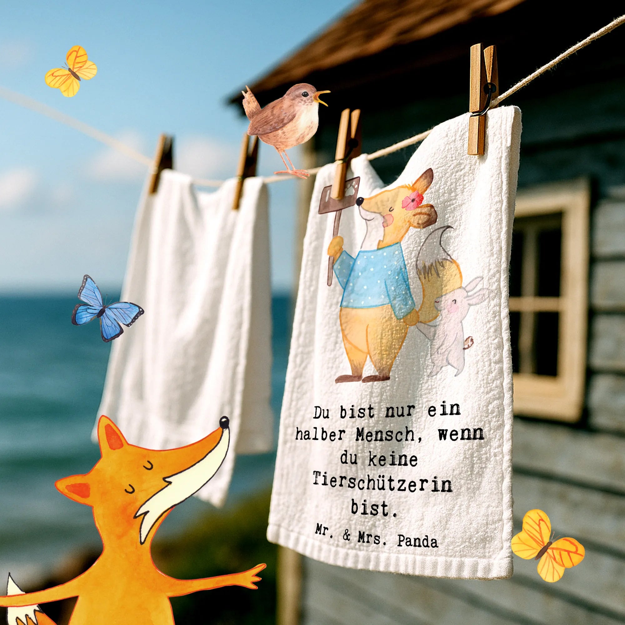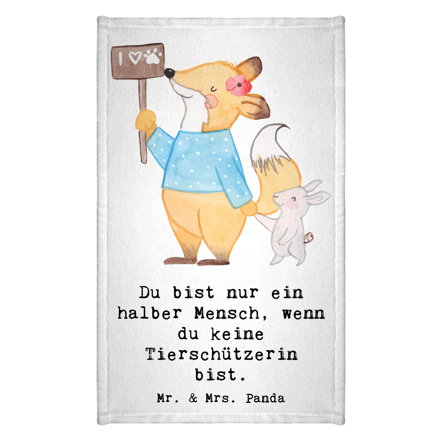 Das süße Gästehandtuch 'Tierschützerin mit Herz' von Mr. & Mrs. Panda ist der perfekte Begleiter für alle Tierliebhaber! Mit einem farbenfrohen, hochwertig bedruckten Motiv zeigt es einen liebevollen Fuchs, der mit einem kleinen Hasen in der Hand herumschwirrt. Auf dem Schild, das der Fuchs trägt, steht der originelle Slogan: 'Du bist nur ein halber Mensch, wenn du keine Tierschützerin bist.' Dieses humorvolle und charmante Gästehandtuch ist nicht nur ein praktisches Badezimmeraccessoire, sondern auch ein liebevolles Geschenk!