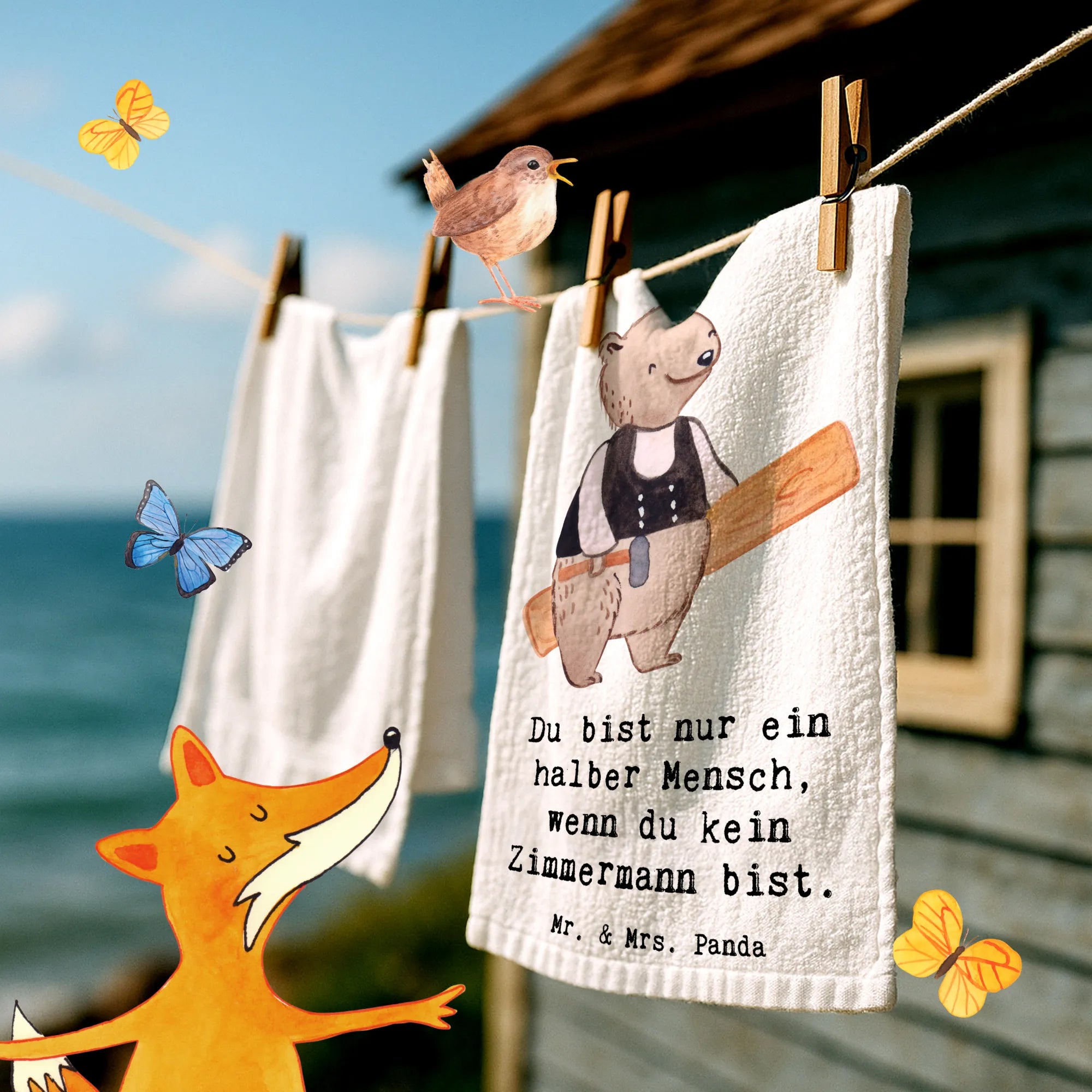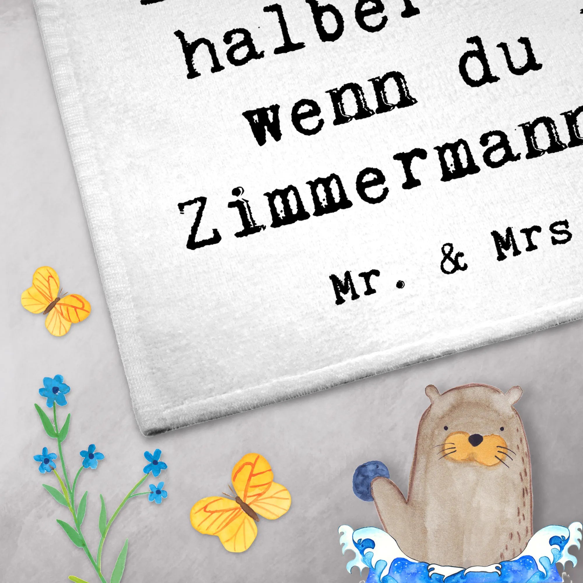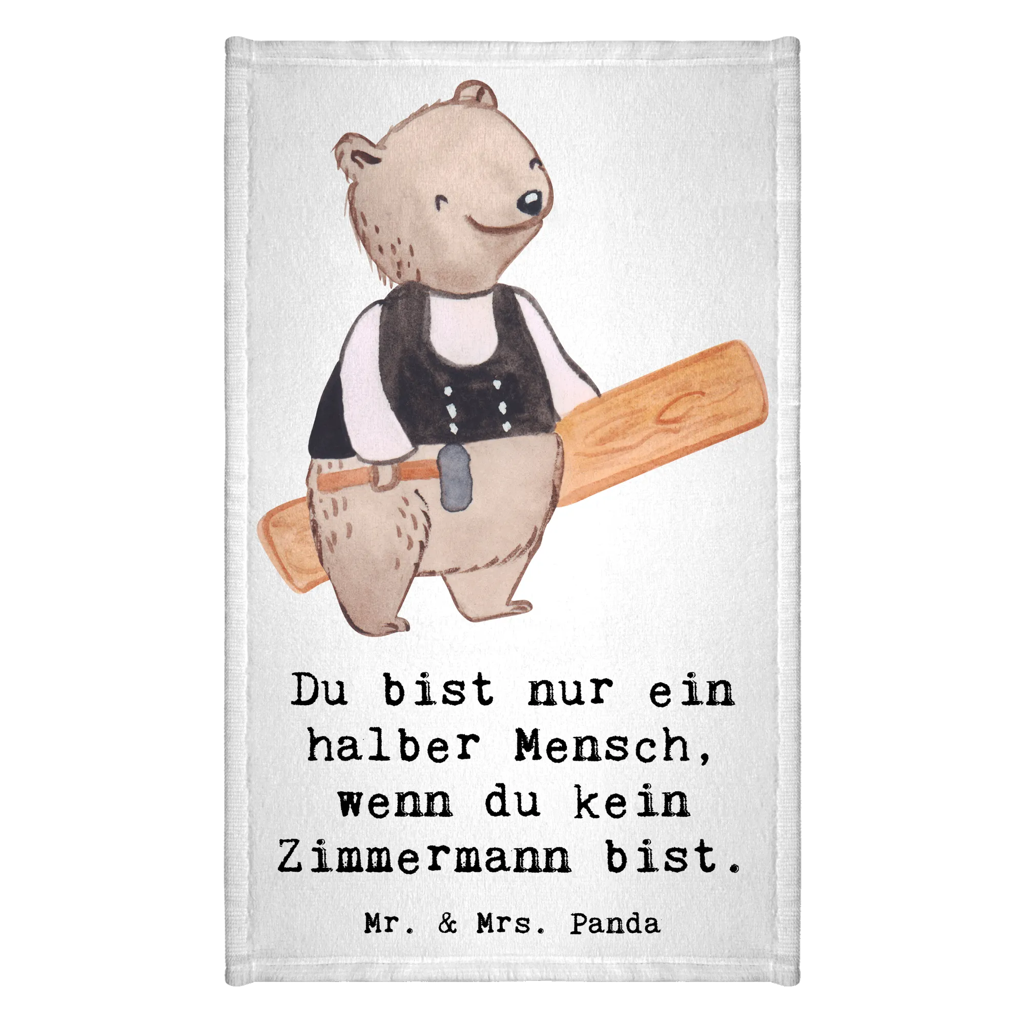 Das Gäste Handtuch "Zimmermann mit Herz" aus der kreativen Berufe-Kollektion von Mr. & Mrs. Panda ist das perfekte Geschenk für alle, die mit Herz und Leidenschaft ihrem Beruf nachgehen. Dieses wunderschöne Handtuch mit dem süßen Motiv eines Bären in Zimmermannskluft, der einen Hammer und ein Holzbrett hält, ist nicht nur ein Blickfang im Badezimmer, sondern bringt auch eine liebevolle Botschaft mit sich: 'Du bist nur ein halber Mensch, wenn du kein Zimmermann bist.' Ob als besonderes Dankeschön für einen Arbeitskollegen, zur Feier eines Jubiläums oder als liebevolles Abschiedsgeschenk – dieses Handtuch passt zu jeder Gelegenheit.