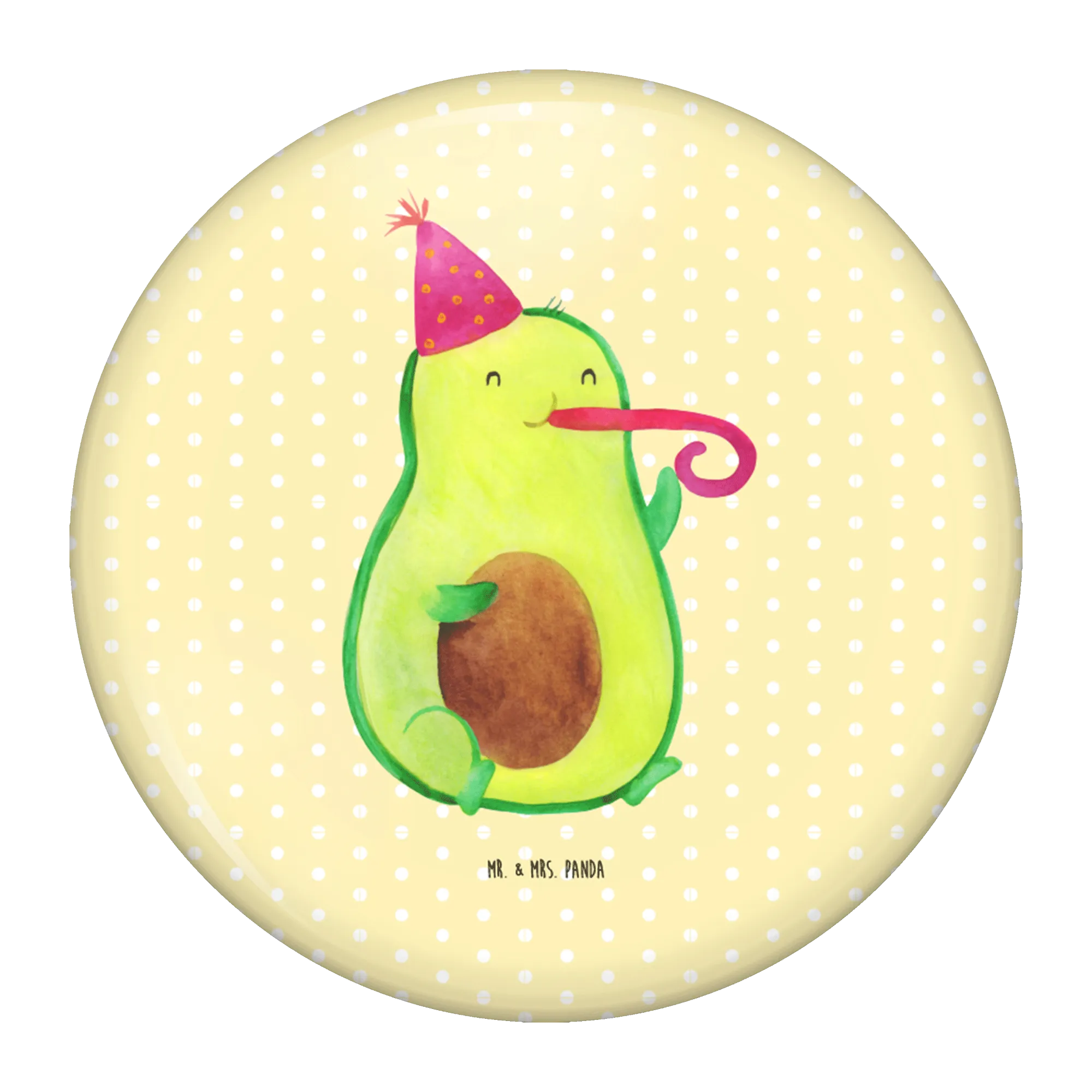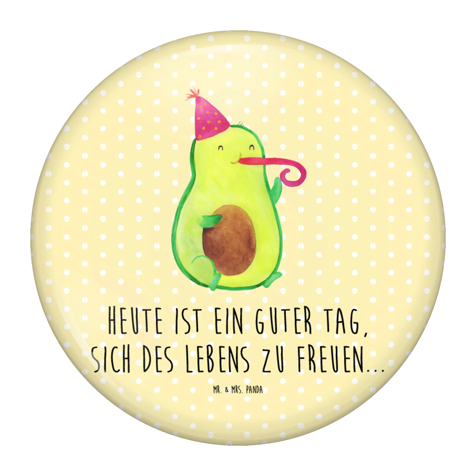 Der 50mm Button mit dem fröhlichen Motiv Avocado Partyhupe von Mr. & Mrs. Panda ist das perfekte Accessoire für alle, die eine gute Zeit lieben! Stell dir vor: Eine süße Avocado, die einen bunten Partyhut trägt und in eine Partytröte pustet. Das zaubert jedem ein Lächeln ins Gesicht und bringt sofort gute Laune! Ob auf dem nächsten Geburtstag, der Feierlichkeit oder einfach als spaßiger Begleiter für die Fete – dieser Button ist ein absolutes Must-Have.