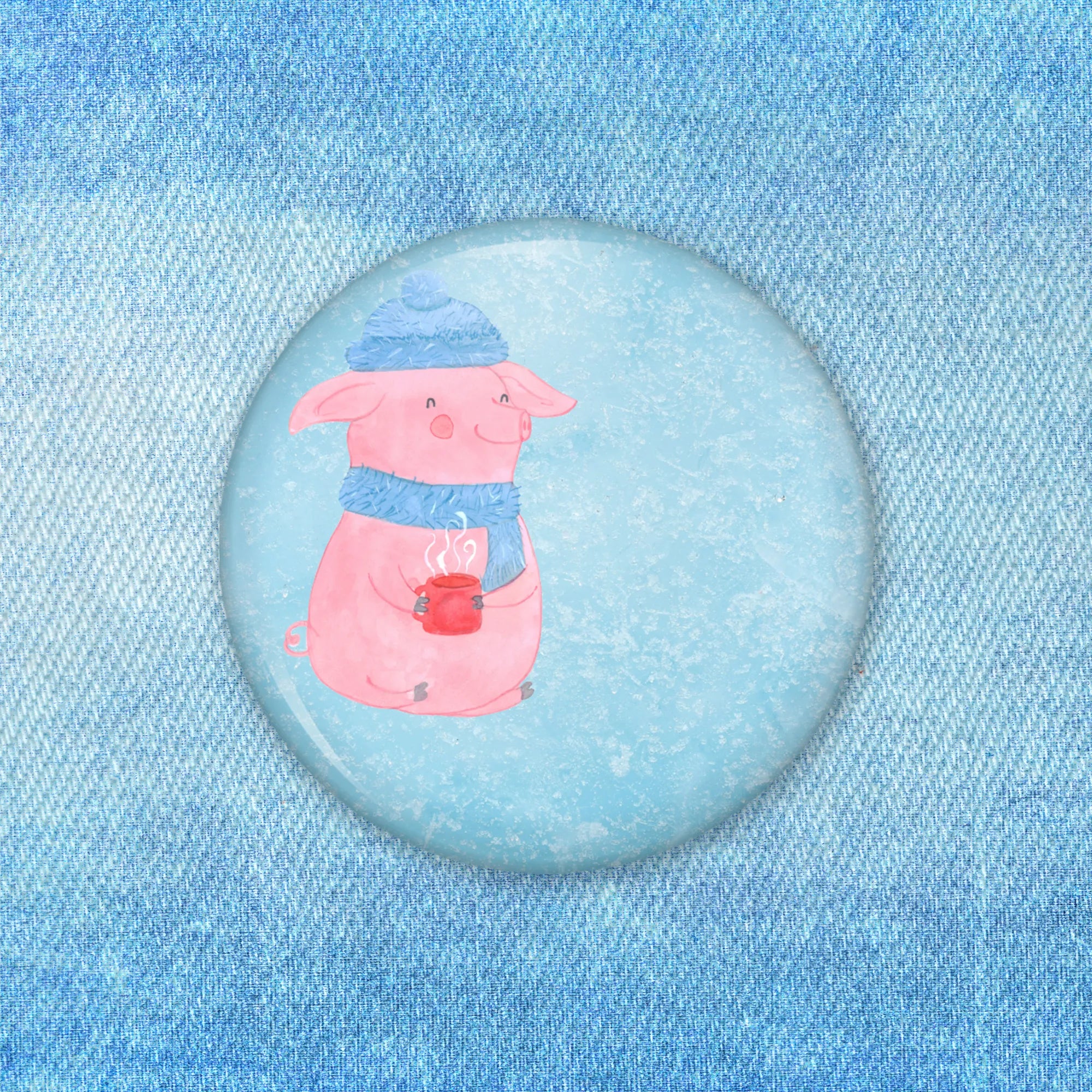 Der Button zeigt ein niedliches, rosa Schweinchen, eingekuschelt in warme Winterkleidung, das eine dampfende Tasse (natürlich Glühwein!) in den Händen hält. Es umarmt die wärmeren Seiten des Winters und sorgt dafür, dass sowohl die Träger des Buttons als auch die Umstehenden ein Lächeln auf die Lippen bekommen.