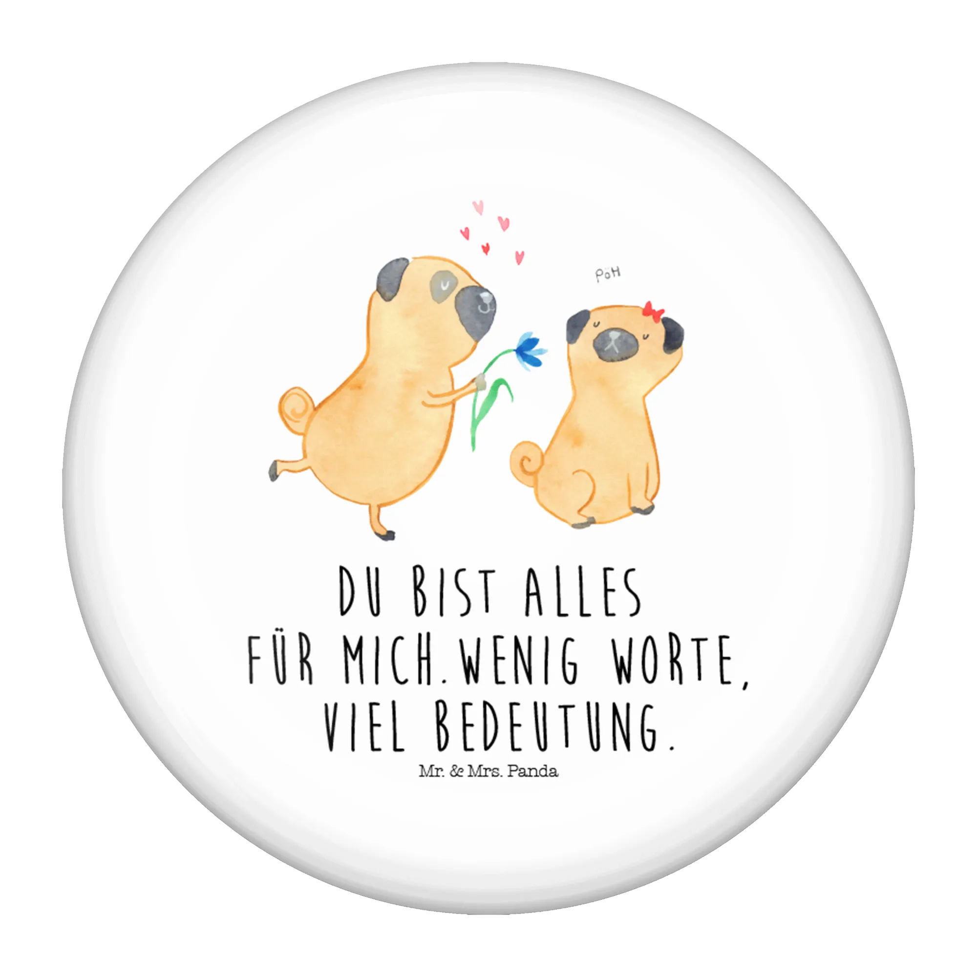 Also zögere nicht, den 50mm Button "Mops verliebt" zu bestellen und Freude zu verbreiten! Verliebt sein ist eine wunderbare Sache und mit diesem Button kannst du zeigen, wie sehr du deinen vierbeinigen Liebling schätzt! Schenke Freude, verschenke Liebe – mit Mr. & Mrs. Panda!