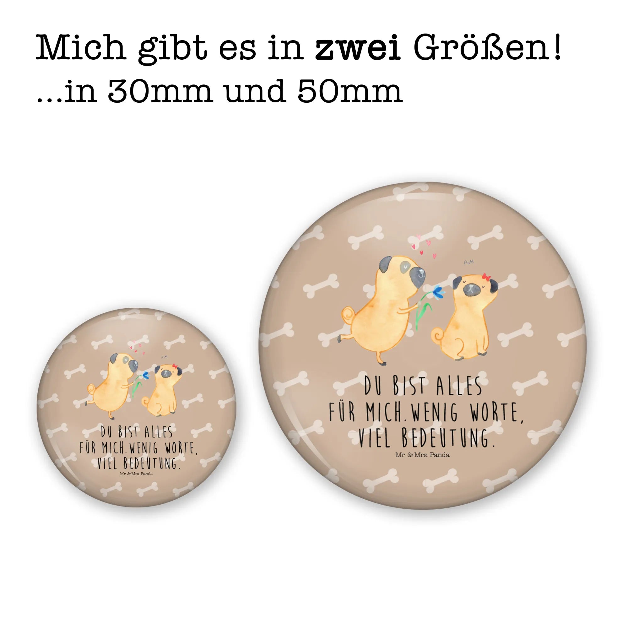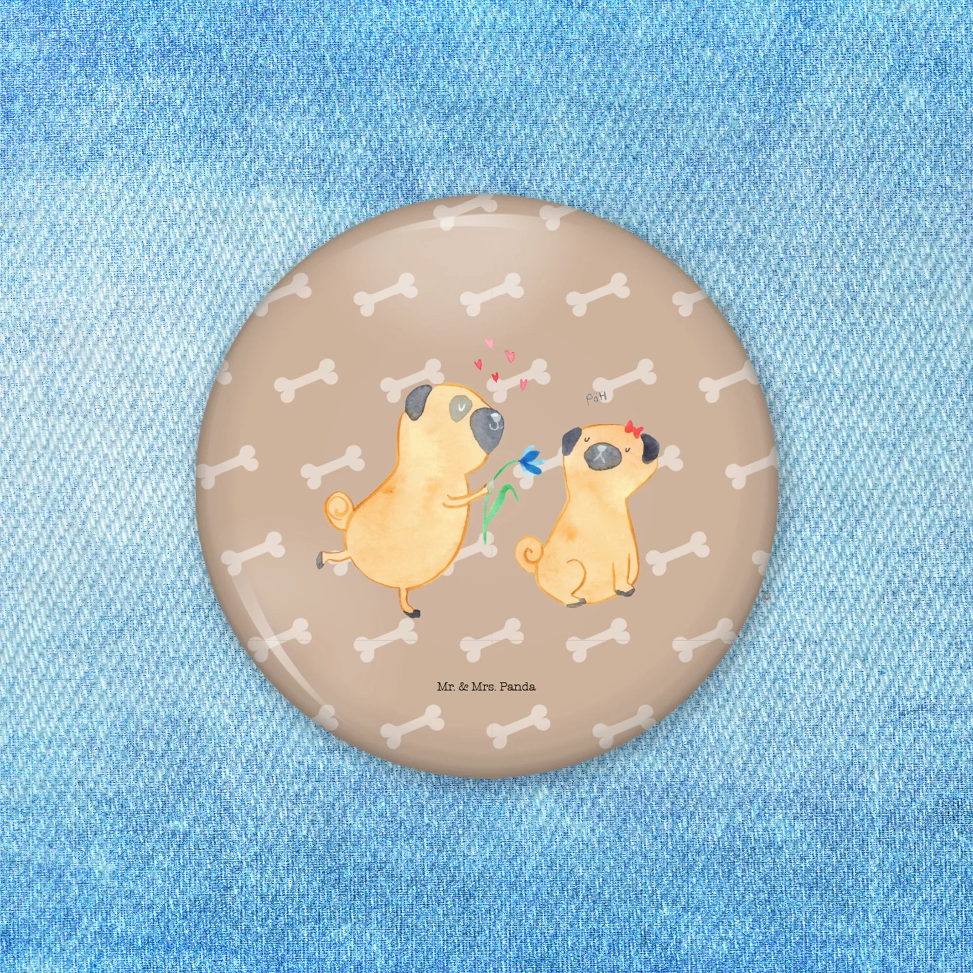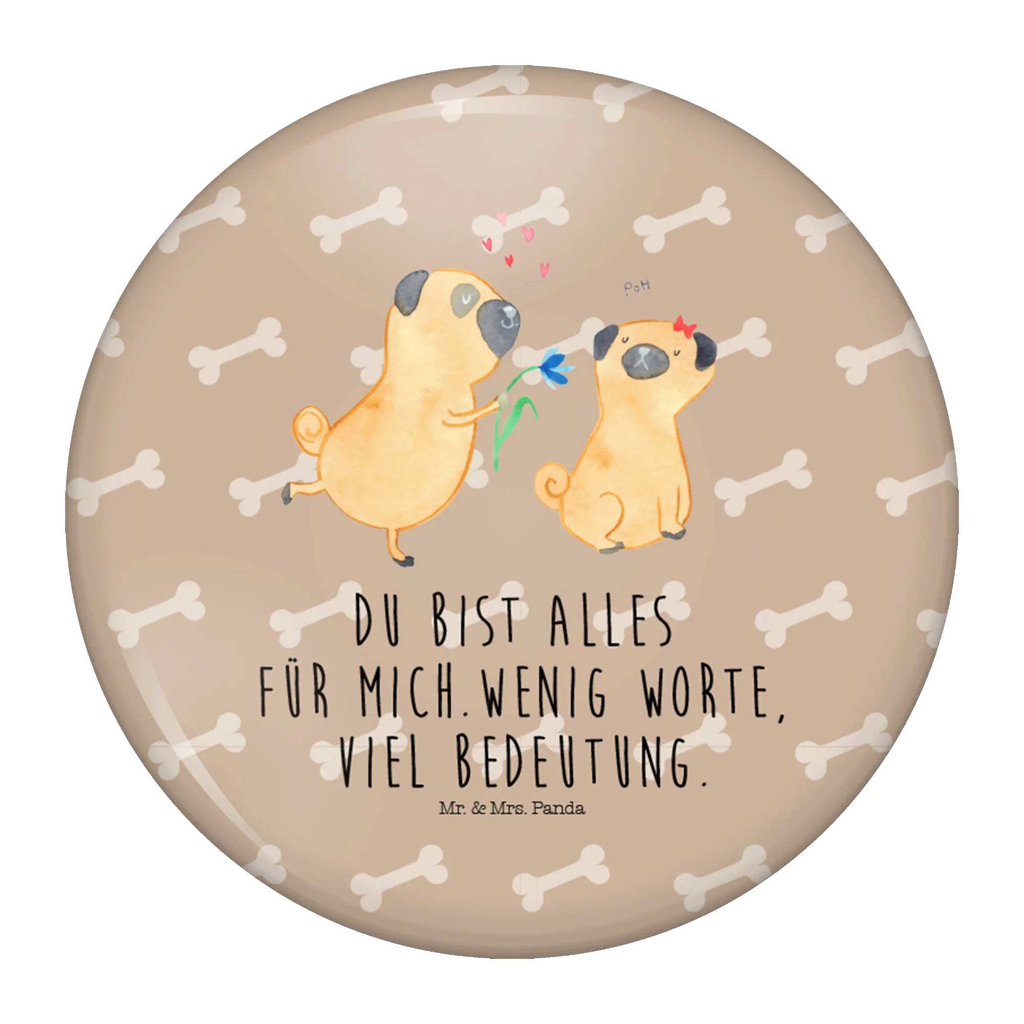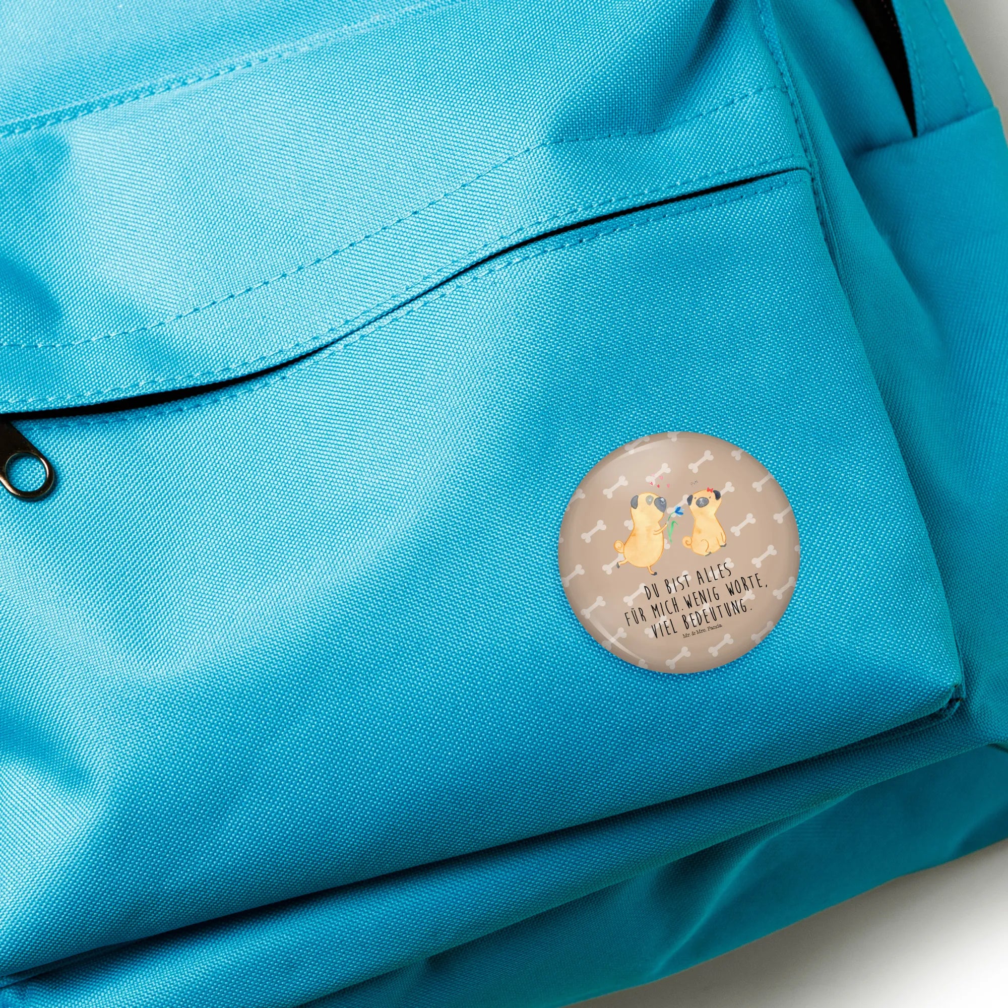 Mit einem Durchmesser von 50mm ist der Button groß genug, um ins Auge zu fallen, und trotzdem leicht genug, um ihn überall zu tragen. Du kannst ihn an Deiner Jacke, Deiner Tasche oder Deinem Rucksack anbringen und damit Deine Liebe zu Hunden und zu Deinem Partner stolz zeigen. Der hohe Qualitätsanspruch von Mr. & Mrs. Panda sorgt dafür, dass die Farben lebendig und die Details klar zur Geltung kommen.