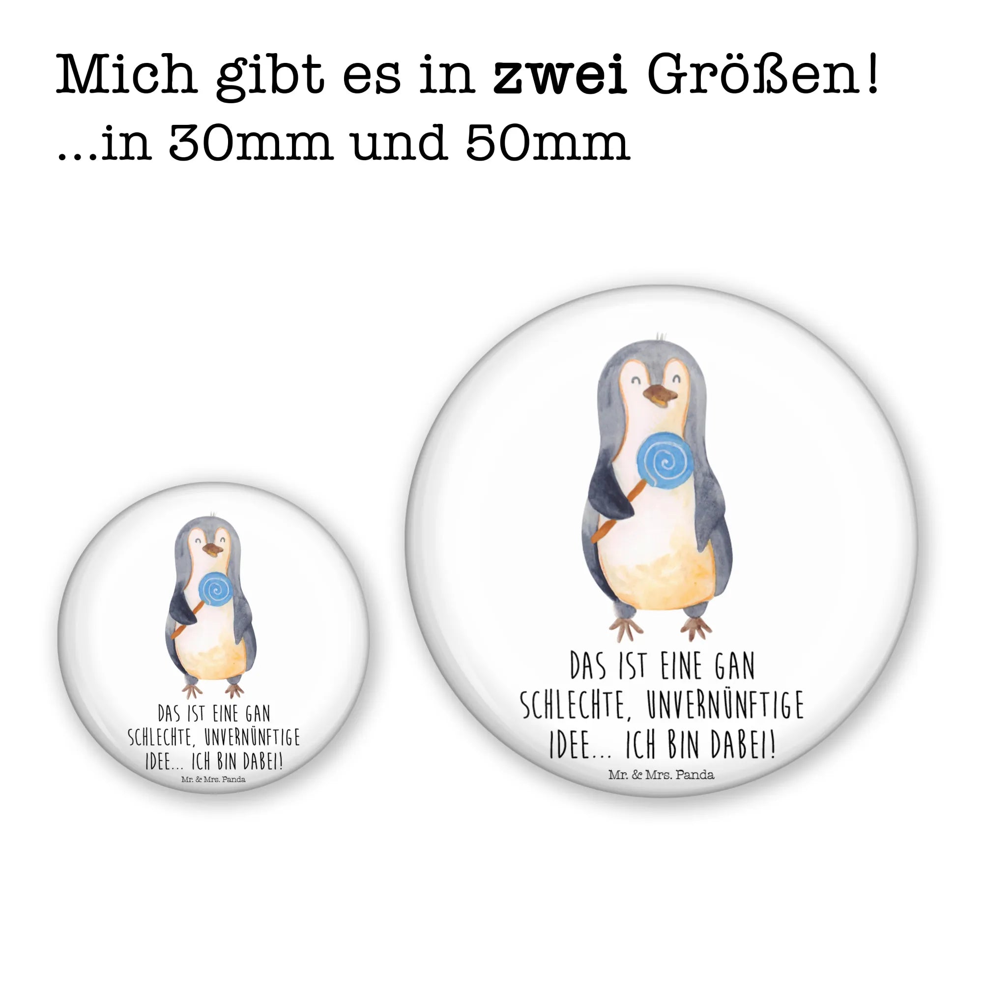 Denk daran, egal wie alt man ist, ein bisschen Kindlichkeit und Humor sind niemals fehl am Platz! Der 50mm Button mit dem Pinguin Lolli ist nicht nur ein einfacher Anstecker, sondern ein tolles Gesprächsthema und ein Stück Lebensfreude. Ideal für Schwiegermutter, Freunde und Kollegen, die humorvoll durch das Leben gehen wollen. Verschenke Freude, Lachen und ein Stückchen Pinguin-Charme mit diesem tollen Anstecker! Der Button stammt aus hochwertigem, matt glänzendem Papier, das die Farben perfekt zur Geltung bringt – alles made by Mr. & Mrs. Panda!