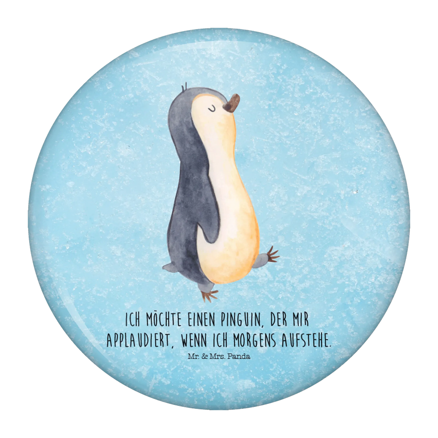 Button Pinguin marschierend - mit Spruch - Eisblau