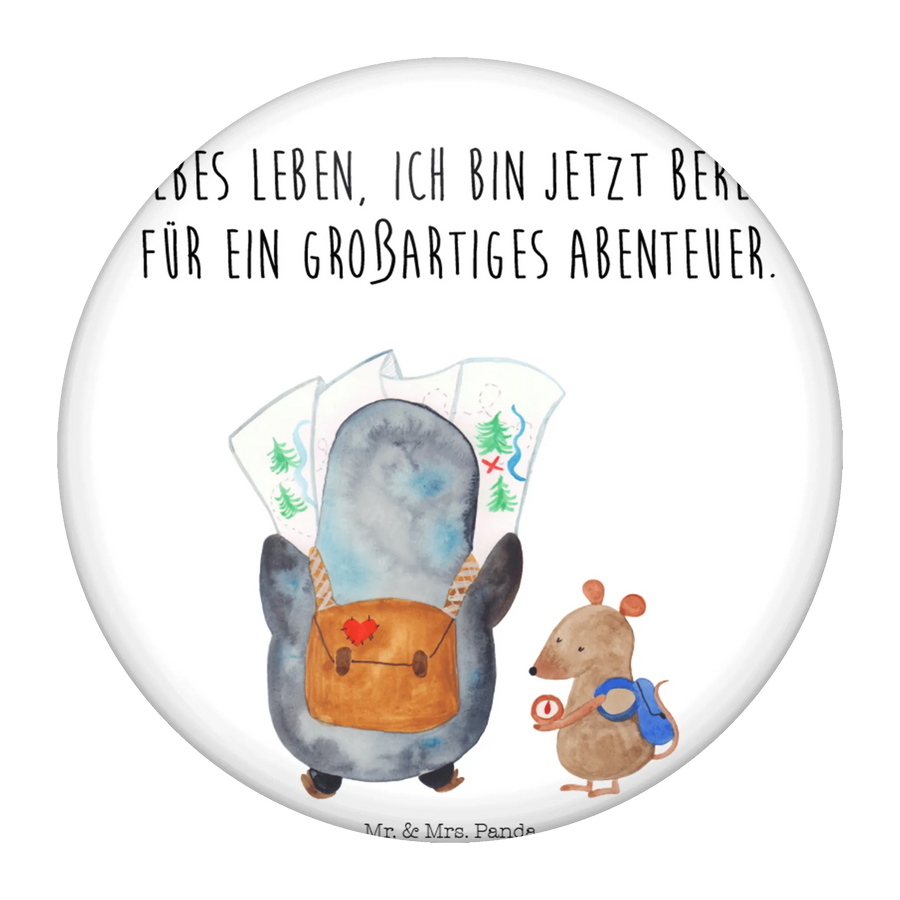 Die liebevoll gestalteten Charaktere, der neugierige Pinguin und die schlaue Maus, ziehen garantiert alle Blicke auf sich. Mit dem Slogan "Liebes Leben, ich bin jetzt bereit für ein großartiges Abenteuer!" inspiriert dieser Button dazu, jeden Tag als neues Abenteuer zu sehen. Wenn du also Freunde oder Familie hast, die das Wandern lieben oder gerne reisen, dann mach ihnen mit diesem Button eine besondere Freude.