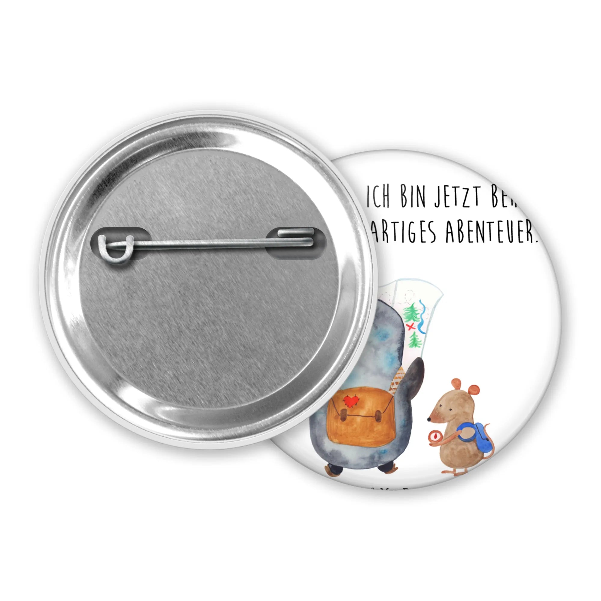 Button Pinguin & Maus Wanderer - mit Spruch - Weiß