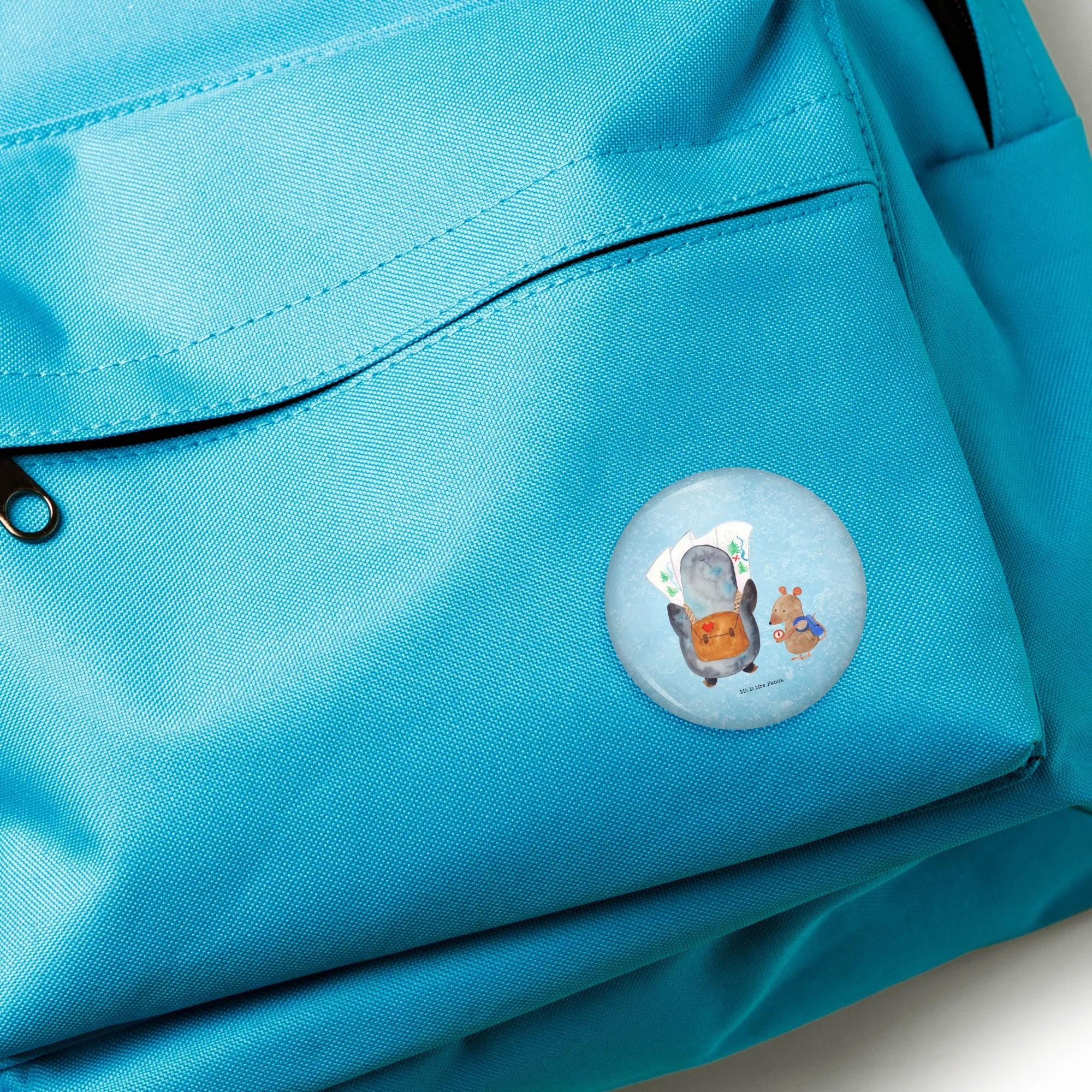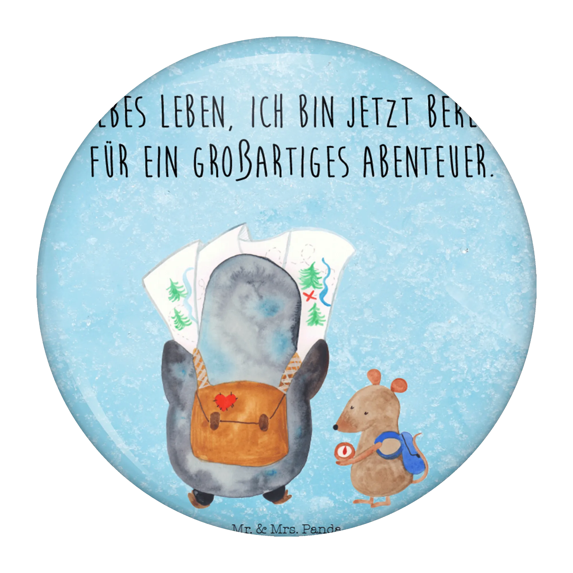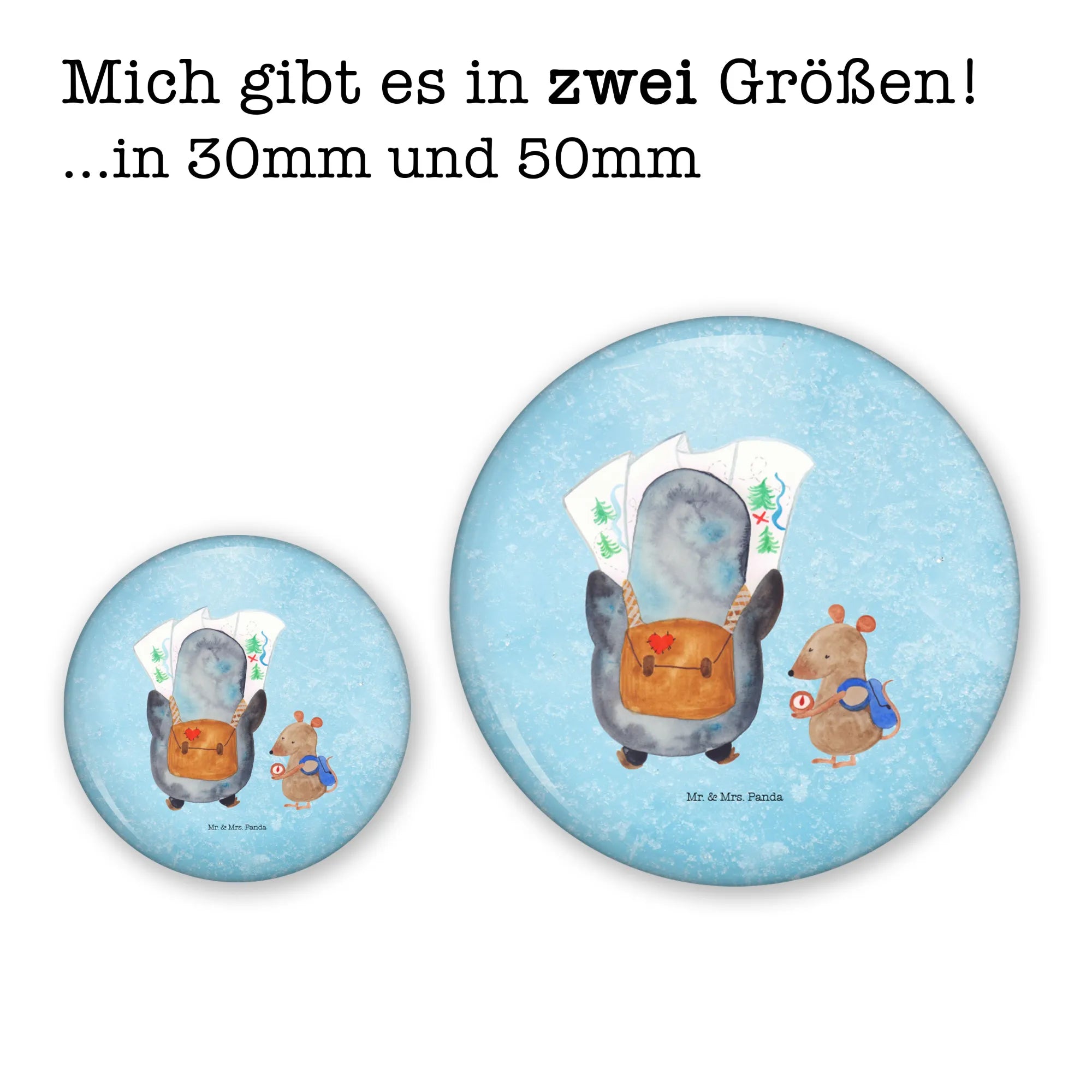 Dieser wunderschöne 50mm Button mit dem süßen Motiv des Pinguins und der Maus Wanderer ist das perfekte Geschenk für kleine Abenteurer und alle, die einen Hauch von Wanderlust in ihrem Leben haben möchten!