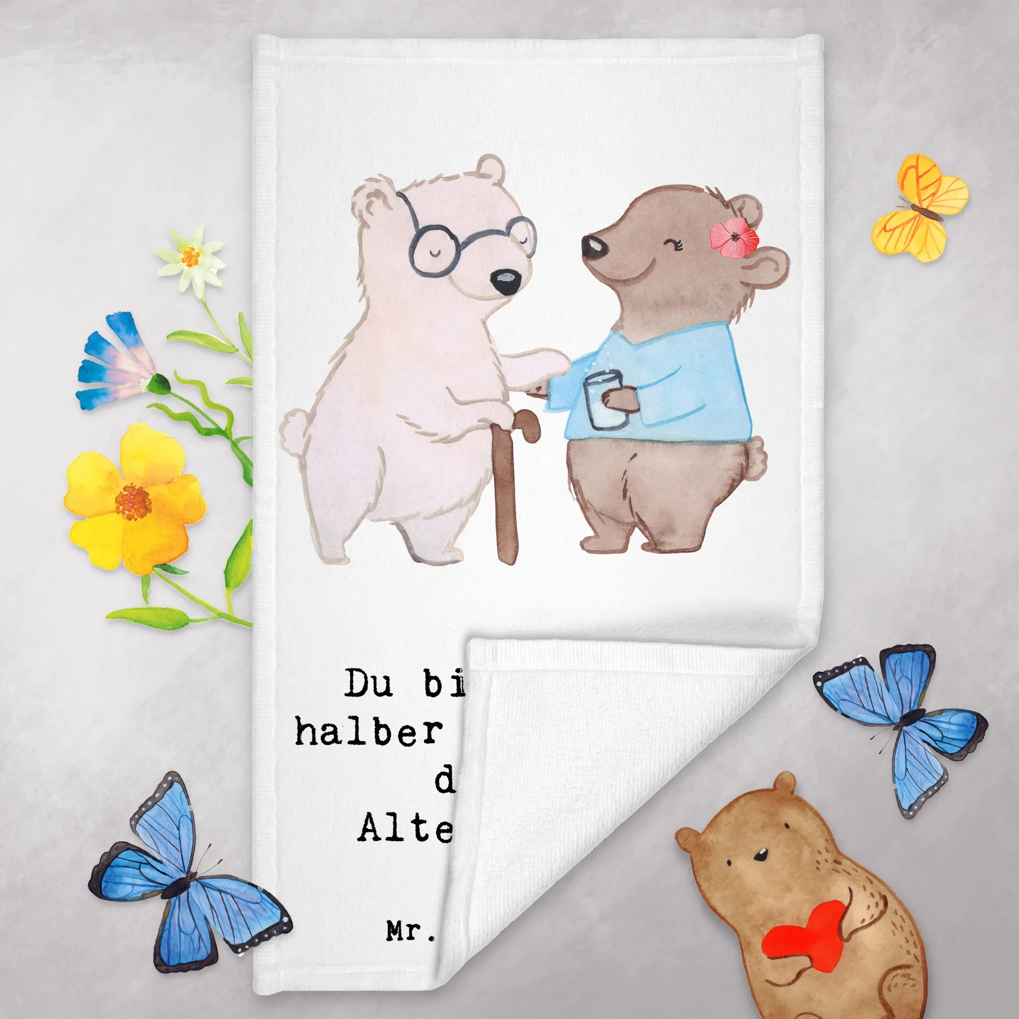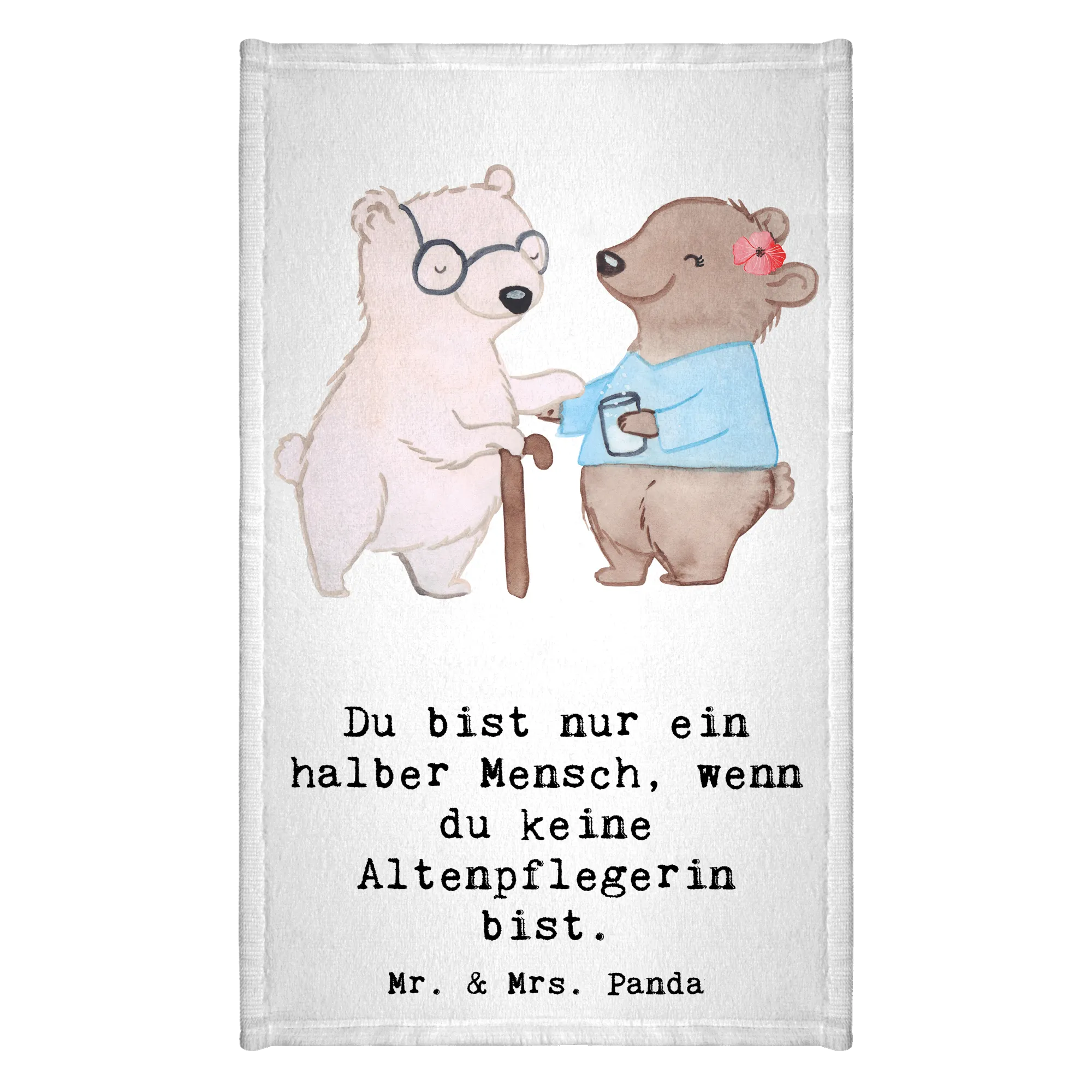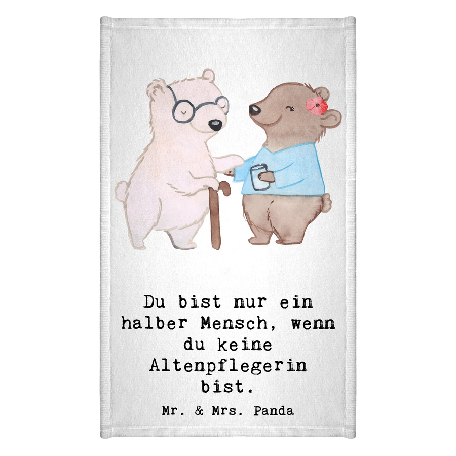 Entdecke das charmante Gästetuch "Altenpflegerin mit Herz" von Mr. & Mrs. Panda – das perfekte Geschenk für alle, die im Bereich Altenpflege tätig sind!