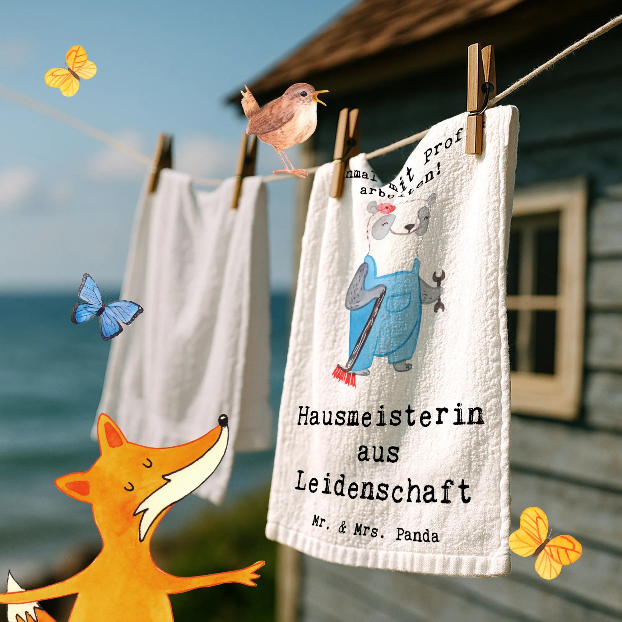 Das Gästetuch "Hausmeisterin aus Leidenschaft" von Mr. & Mrs. Panda ist nicht nur ein wunderbares Accessoire für dein Bad, sondern auch ein perfektes Geschenk für alle Hausmeister, Hausverwalterinnen oder Facility Manager! Mit seiner flauschigen Baumwollmischung und dem bunten, liebevoll gestalteten Design wird es garantiert zum Hingucker.