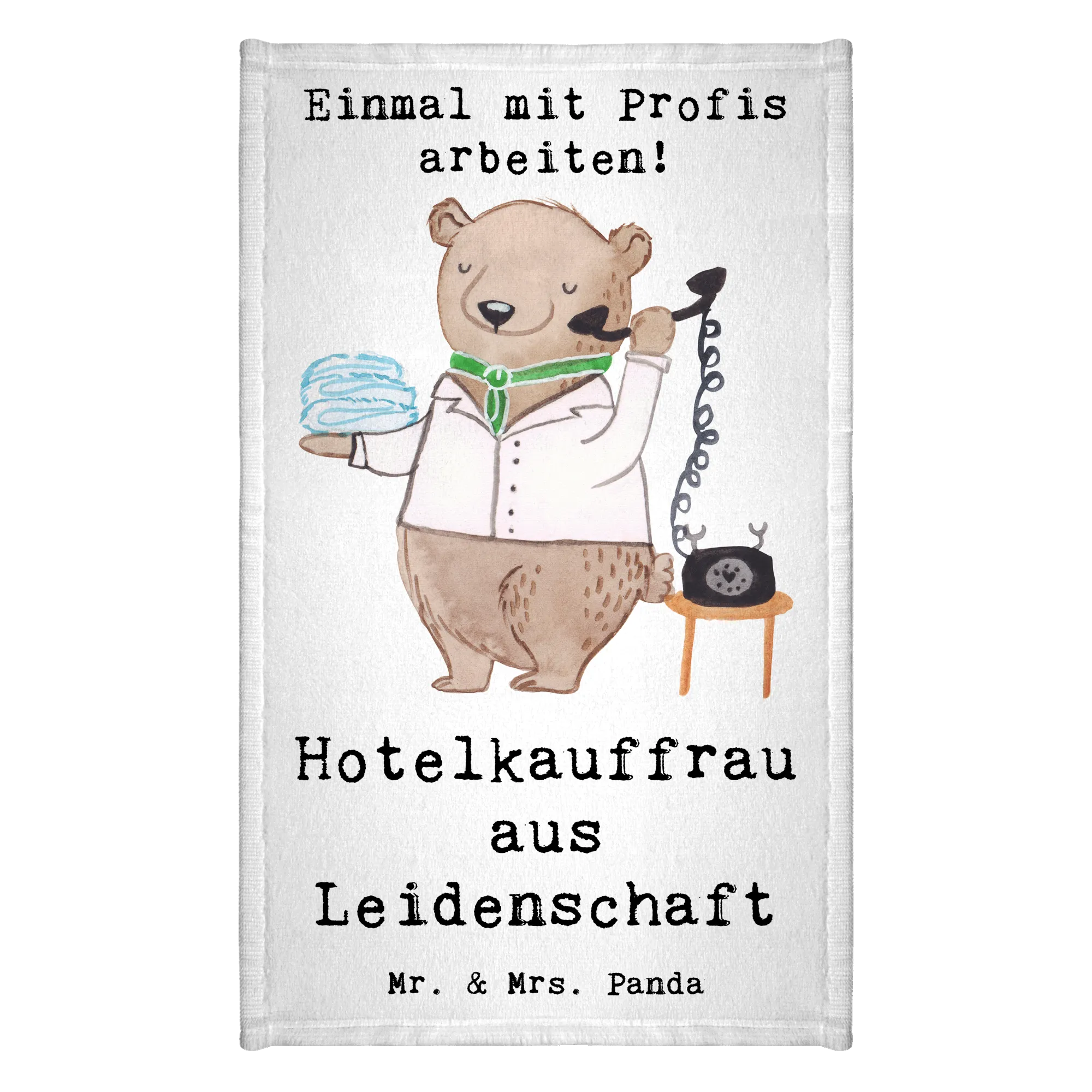 Hergestellt aus einer flauschigen Baumwollmischung, sorgt es nicht nur für eine extra weiche Haptik, sondern auch für Farbe und gute Laune in deinem Gäste- oder Badezimmer. Mit einem liebevoll designten Motiv zeigt es, wie stolz die Hotelfachangestellten auf ihren Beruf sind. Der süße Bär, der ein Telefon und frische Handtücher hält, versprüht Charme und Humor.