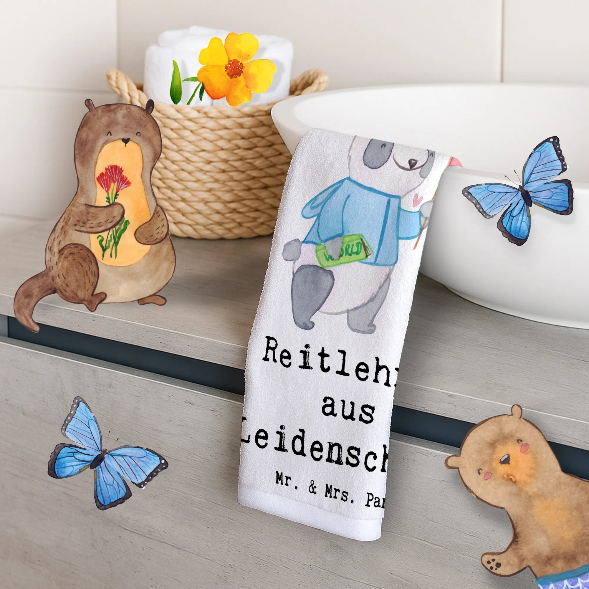 Gästehandtuch Reitlehrer Leidenschaft – Mr. & Mrs. Panda