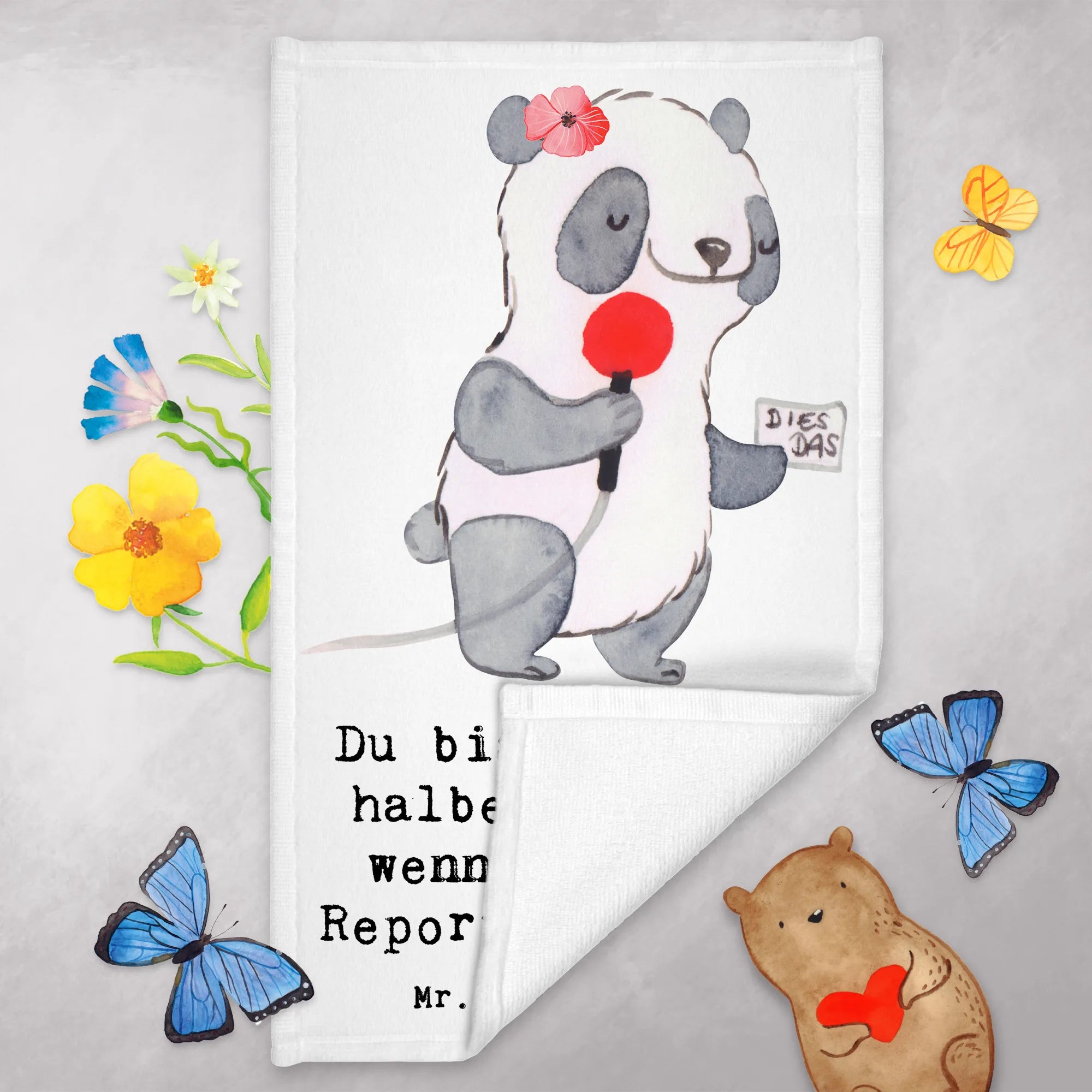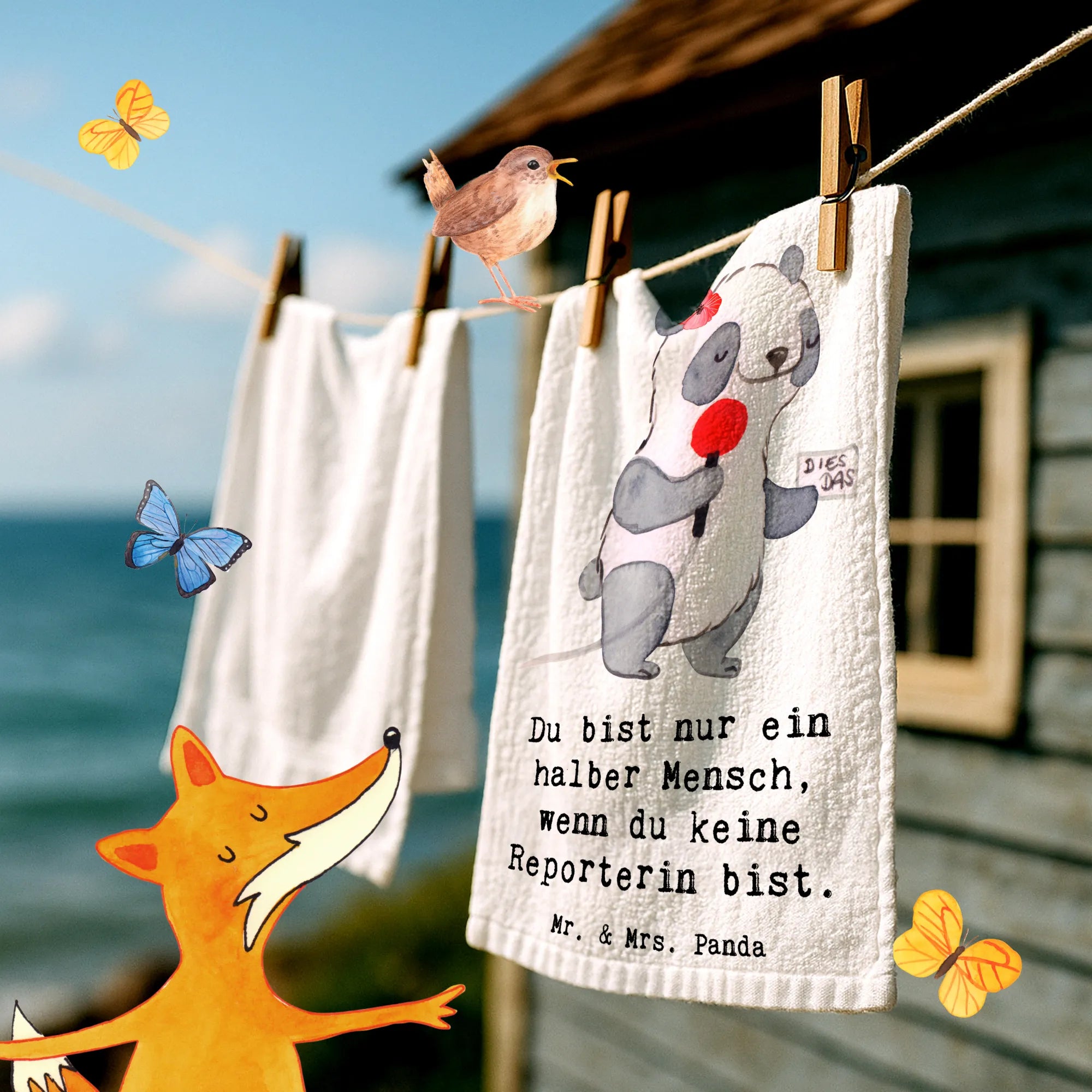 Das wunderschöne Gästehandtuch "Reporterin mit Herz" von Mr. & Mrs. Panda ist das perfekte Geschenk für alle, die im Journalismus arbeiten oder sich für diesen Beruf begeistern. Mit seinem liebevoll designten Motiv – einem süßen Panda mit Mikrofon, der besonders charmant einen Interviewpartner anspricht – bringt dieses Handtuch nicht nur Freude, sondern auch einen Hauch von Humor in jedes Badezimmer. Mache Deinen Freunden, Kollegen oder Familienmitgliedern eine Freude und sage auf besondere Art 'Danke'!