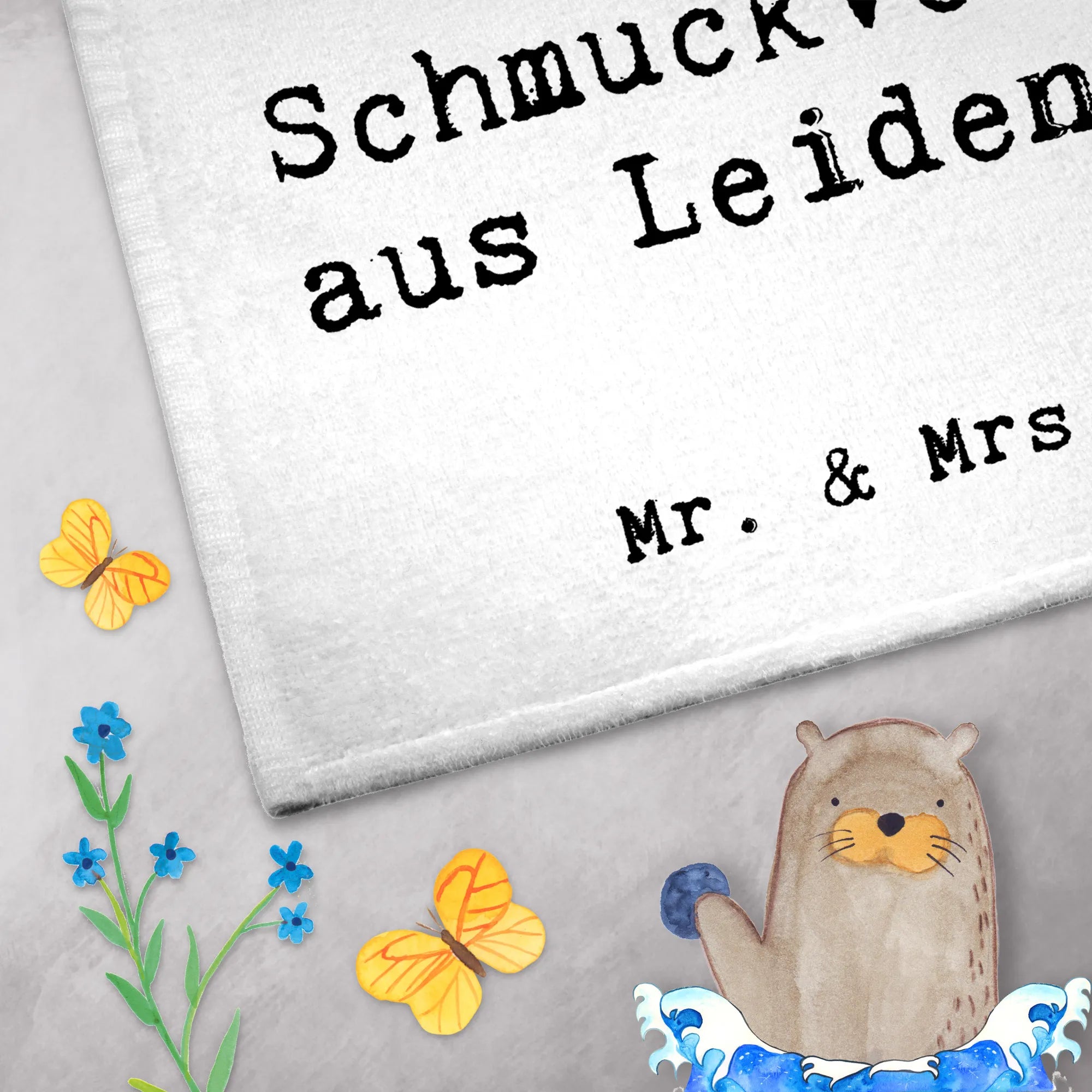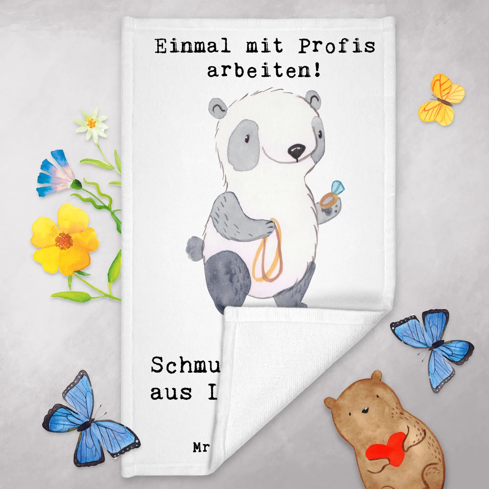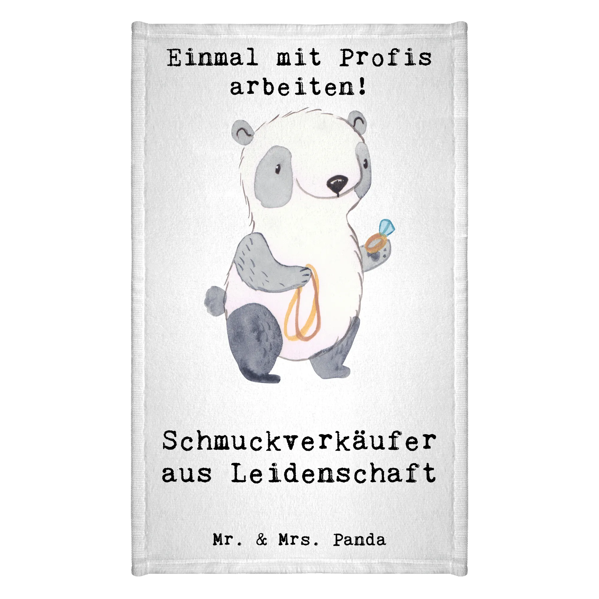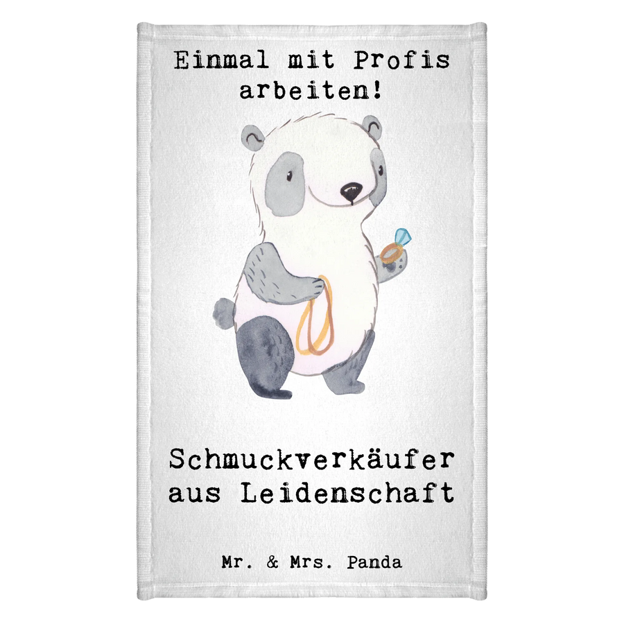 Das Gästetuch "Schmuckverkäufer aus Leidenschaft" von Mr. & Mrs. Panda ist das ideale Geschenk für jeden, der im Schmuckbereich arbeitet oder ein besonderes Hobby zur Schmuckverarbeitung hat. Hochwertig bedruckt mit einem liebevoll gestalteten Design, das einen stolzen Panda zeigt, der glänzenden Schmuck präsentiert, wird dieses Handtuch das Gästebad oder Badezimmer deines Freundes oder Kollegen auf eine ganz besondere Weise aufwerten.