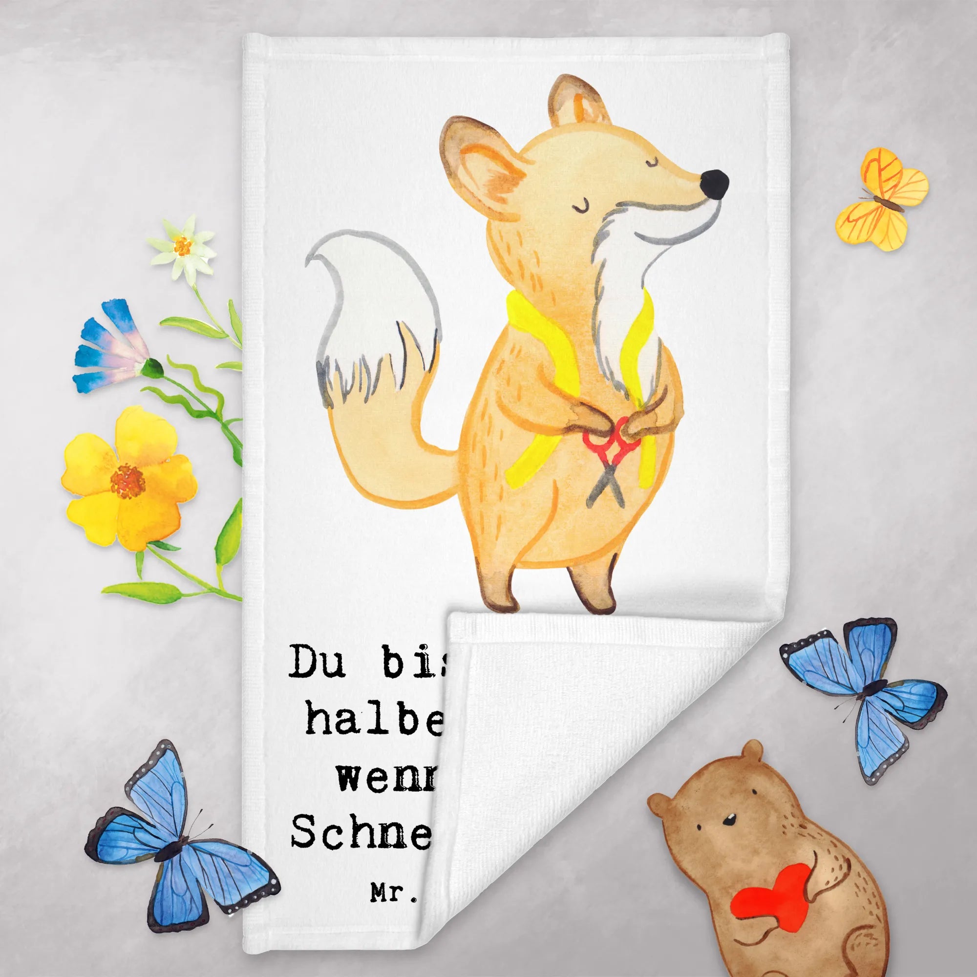 Das Gästehandtuch "Schneider mit Herz" ist ein ideales Präsent für Kollegen, für die Firma oder als kleine Aufmerksamkeit für Mitarbeiter. Entdecke die kreative Berufe Kollektion von Mr. & Mrs. Panda, in der jedes Produkt einzigartig und mit viel Liebe gestaltet ist.