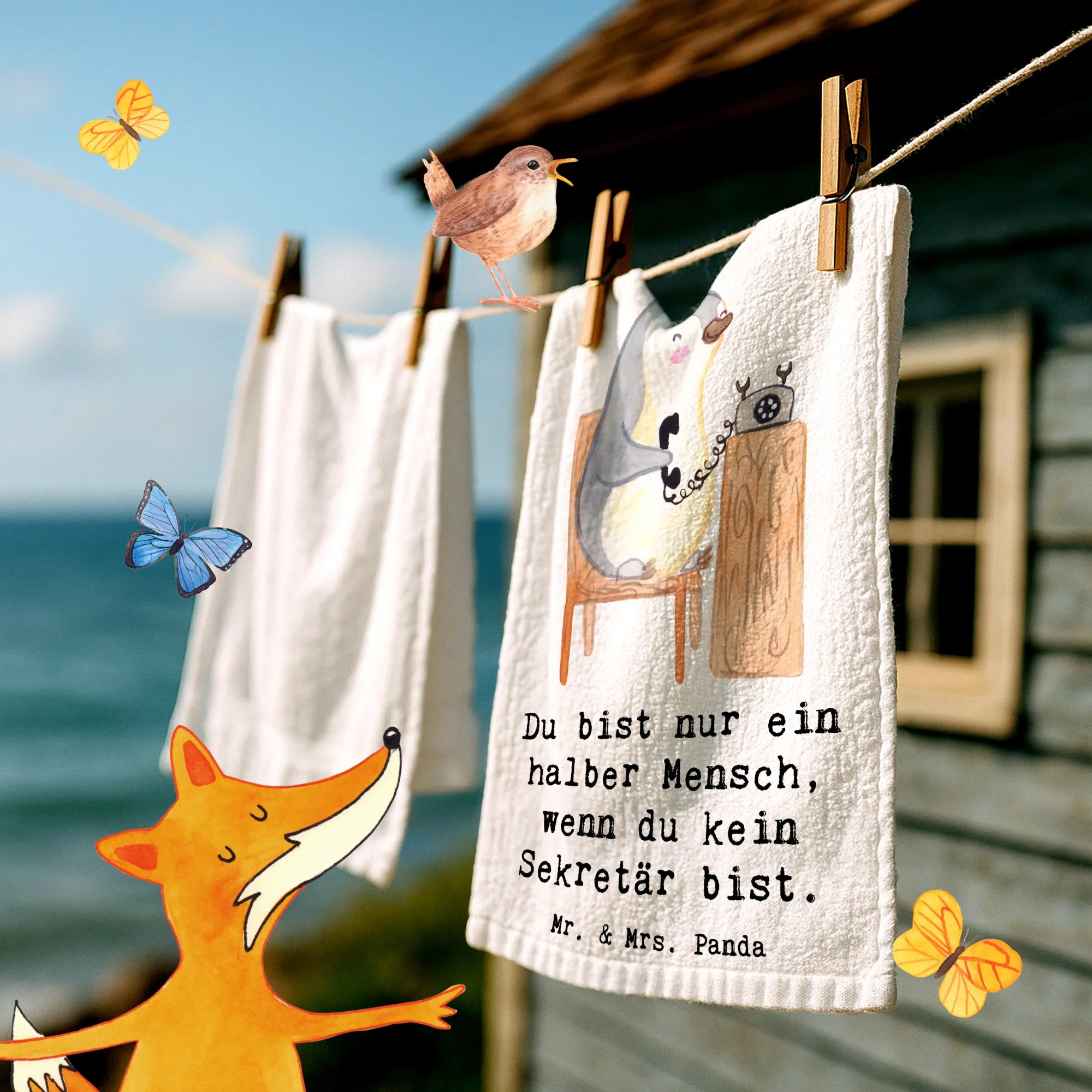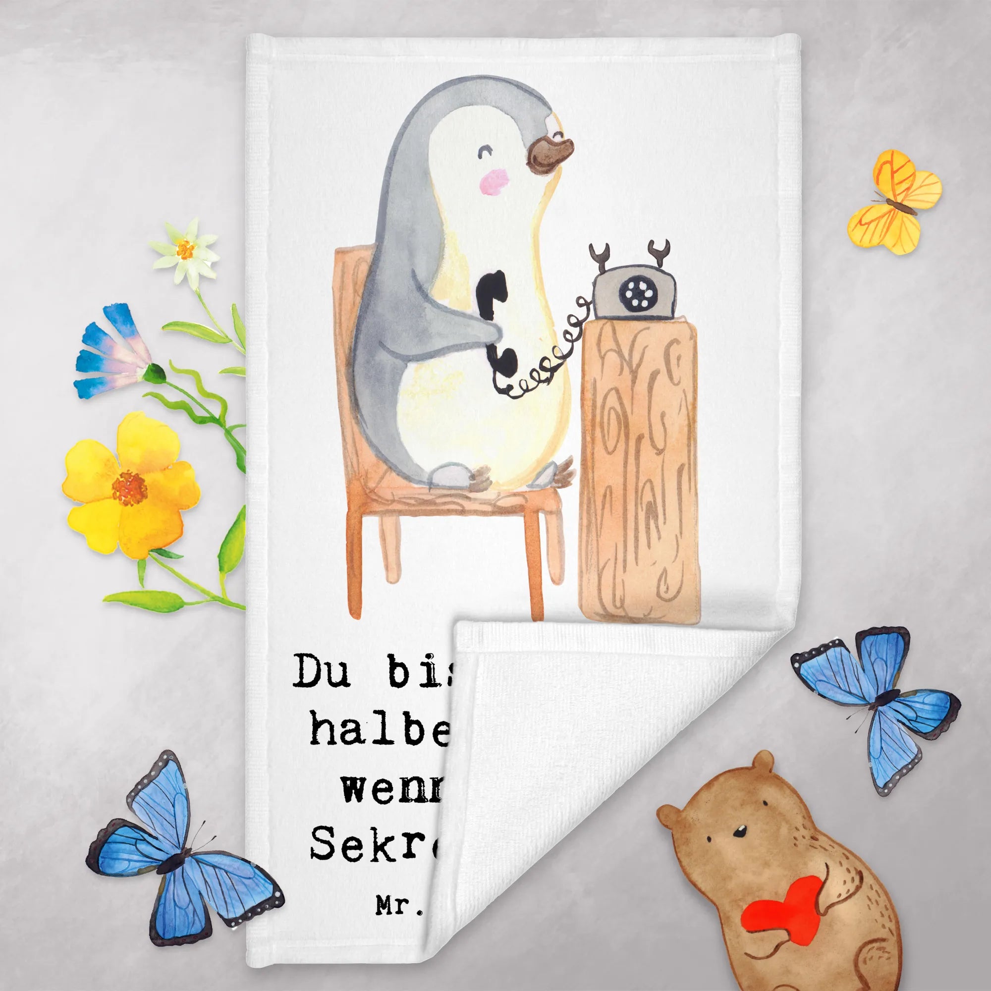 Das Gästetuch "Sekretär mit Herz" von Mr. & Mrs. Panda ist das perfekte Geschenk für alle Sekretäre und Sekretärinnen! Mit viel Liebe zum Detail zeigt dieses hochwertige Handtuch einen süßen Pinguin, der am Telefon sitzt und fleißig Anrufe entgegennimmt. Egal, ob zum Jobbeginn, einer Beförderung, einem Jubiläum oder als Abschiedsgeschenk – dieses Tuch ist eine wunderbare Möglichkeit, Dank zu sagen und Wertschätzung auszudrücken.