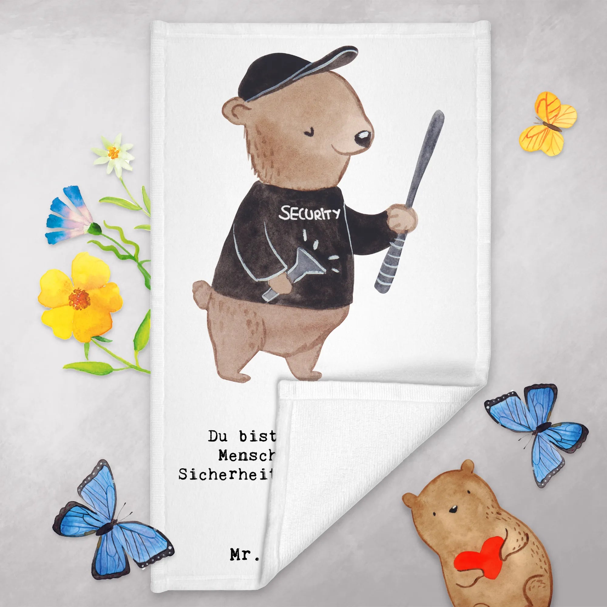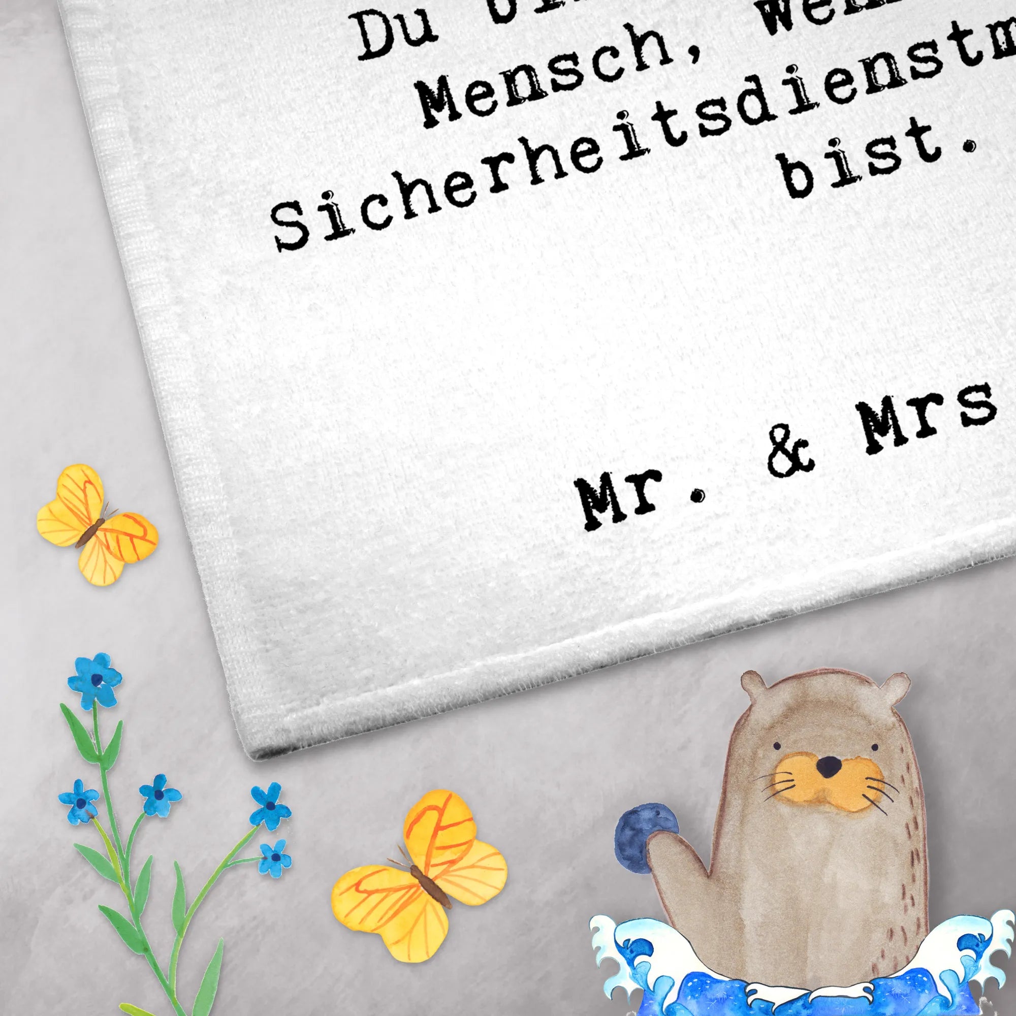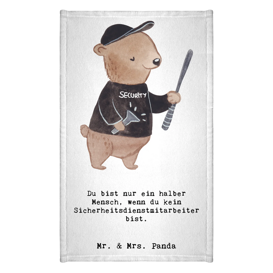 Das Gästetuch mit dem Motiv 'Sicherheitsdienstmitarbeiter mit Herz' von Mr. & Mrs. Panda ist das perfekte Geschenk für alle, die in diesem Beruf arbeiten oder sich mit ihm verbunden fühlen. Es gehört zur kreativen Kollektion 'Berufe', die mit viel Liebe und Fantasie entworfen wurde.