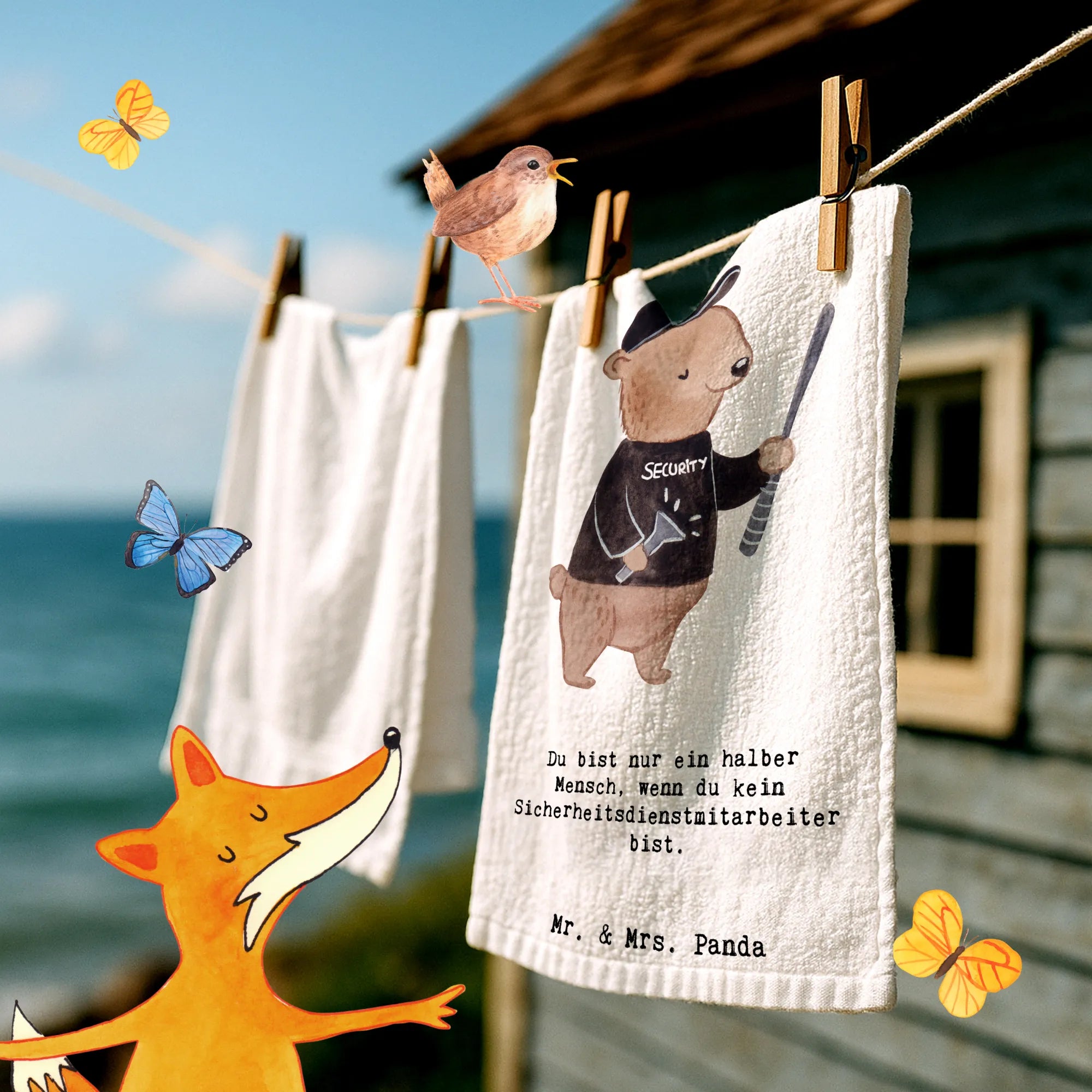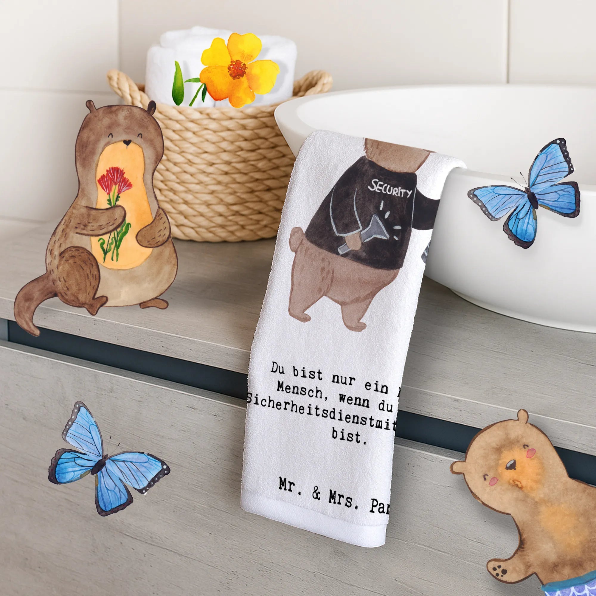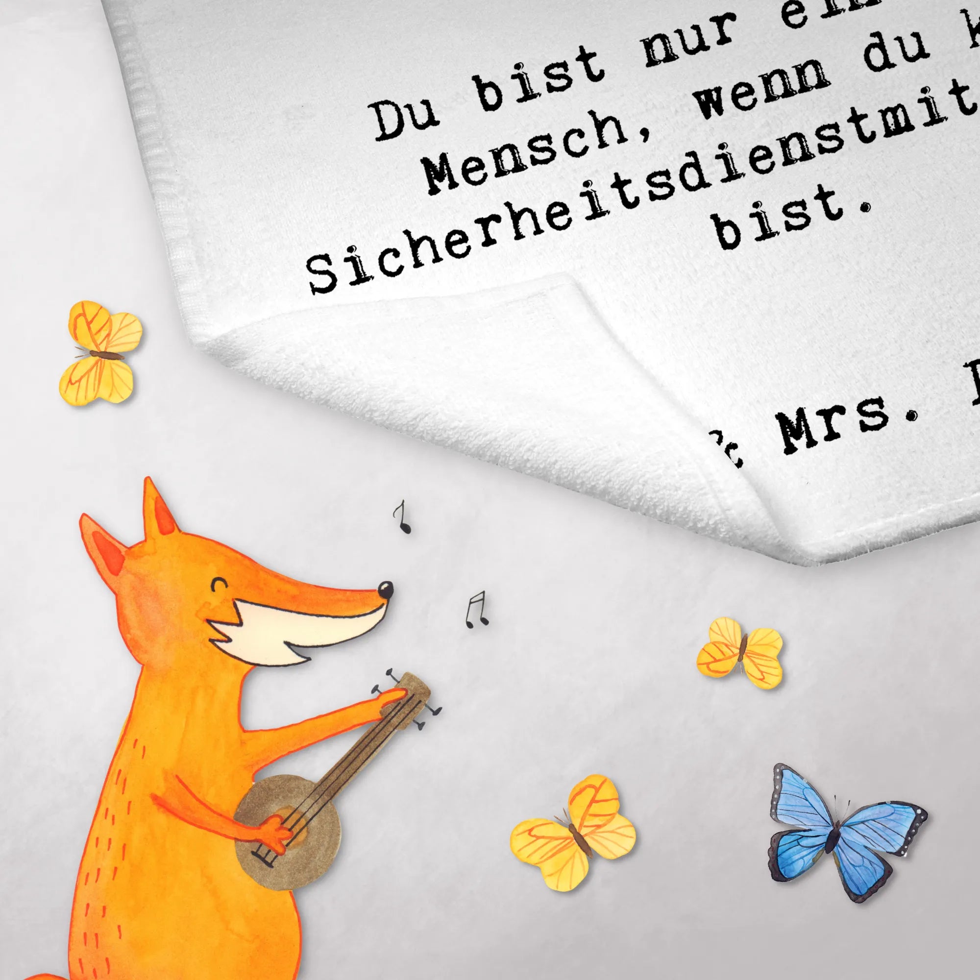 Das Gästetuch mit dem Motiv 'Sicherheitsdienstmitarbeiter mit Herz' von Mr. & Mrs. Panda ist das perfekte Geschenk für alle, die in diesem Beruf arbeiten oder sich mit ihm verbunden fühlen. Es gehört zur kreativen Kollektion 'Berufe', die mit viel Liebe und Fantasie entworfen wurde.