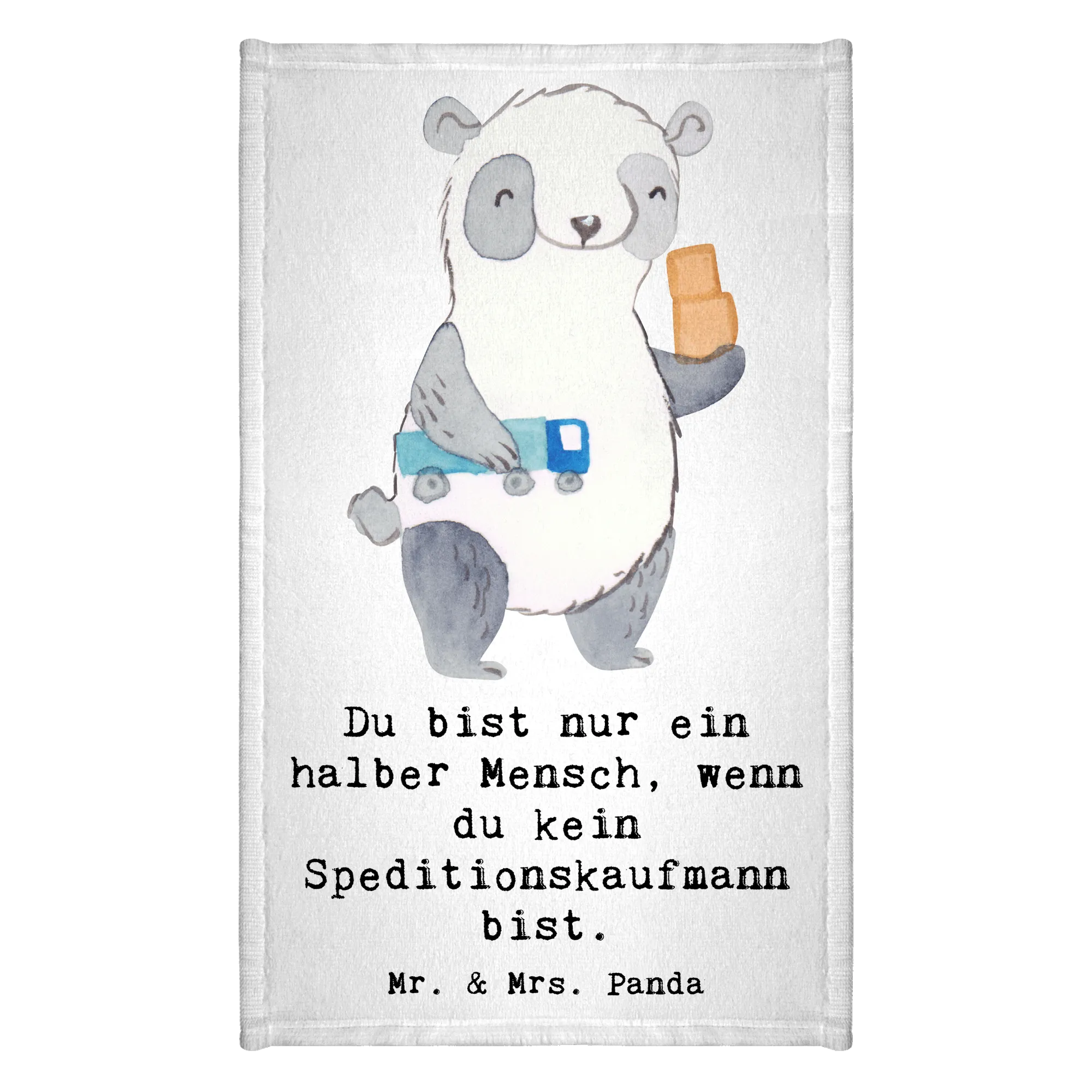 Mit seinen lebhaften Farben und dem liebevollen Motiv eines Panda, der einen kleinen Spielzeug Lkw und Mini Kartons hält, bringt es Freude und eine persönliche Note in deinen Raum. Egal, ob du nach einem besonderen Geschenk für einen Kollegen, einen Speditionskaufmann oder einfach nur nach einer originellen Dekoration für dein eigenes Zuhause suchst, dieses Handtuch ist die perfekte Wahl.