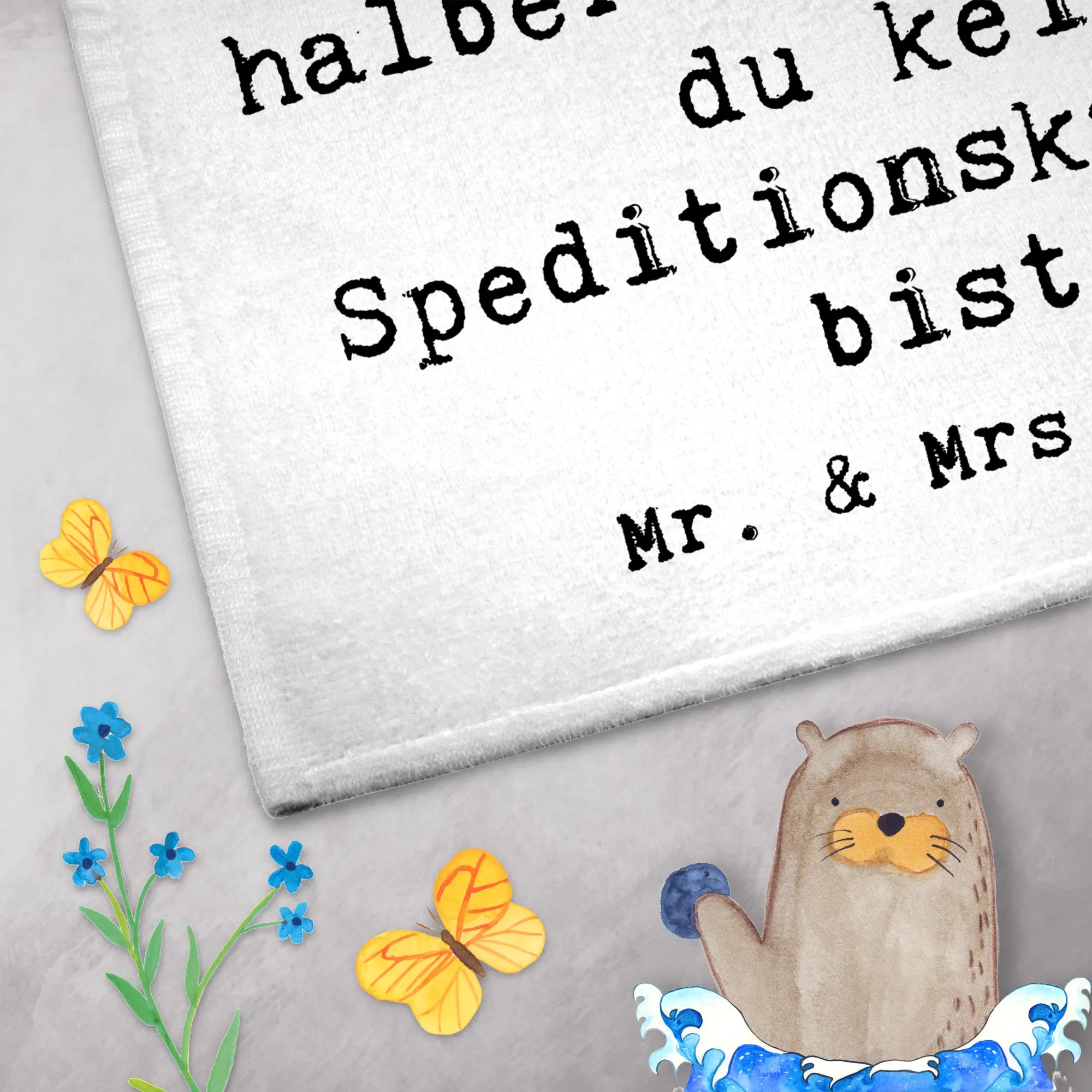 Entdecke das wunderbare Gästehandtuch "Speditionskaufmann mit Herz" aus der kreativen Berufe Kollektion von Mr. & Mrs. Panda! Dieses Handtuch ist nicht nur niedlich, sondern auch äußerst praktisch und ein echter Hingucker in jedem Badezimmer oder Gäste-WC.