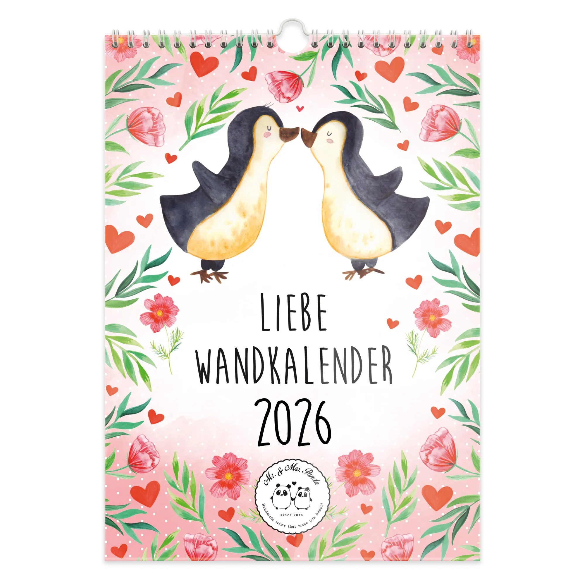 Ein liebevoller Begleiter für 2026: Der A3 Wandkalender aus der 2026 Liebe Collection von Mr. & Mrs. Panda ist mehr als ein gewöhnlicher Kalender. Mit zwölf handgemalten Aquarellmotiven von Mrs. Panda und monatlichen, motivierenden Sprüchen bringt er Herzlichkeit und Stil in deinen Alltag.
