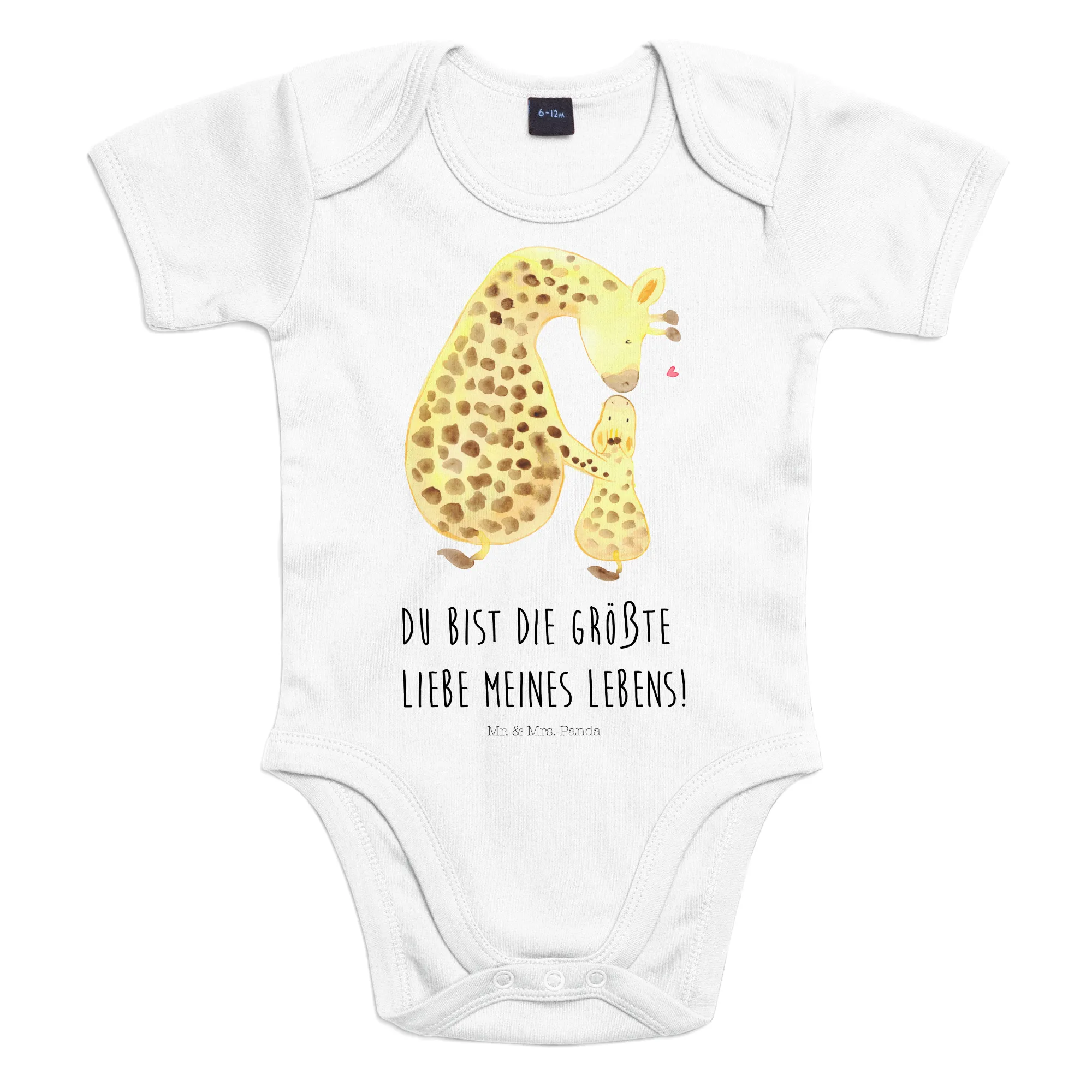 Die süße Giraffe, die ihre kleine Giraffe auf den Kopf küsst, verkörpert auf bezaubernde Art und Weise die Zuneigung zwischen Eltern und ihren Kindern. Der Baby Body ist aus hochwertiger, ökologischer Baumwolle gefertigt und somit besonders sanft zur empfindlichen Babyhaut.