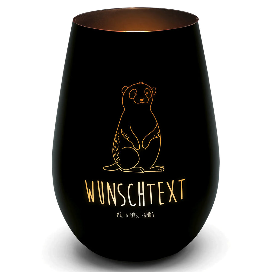 Gold Windlicht Personalisiert Erdmännchen - Schwarz