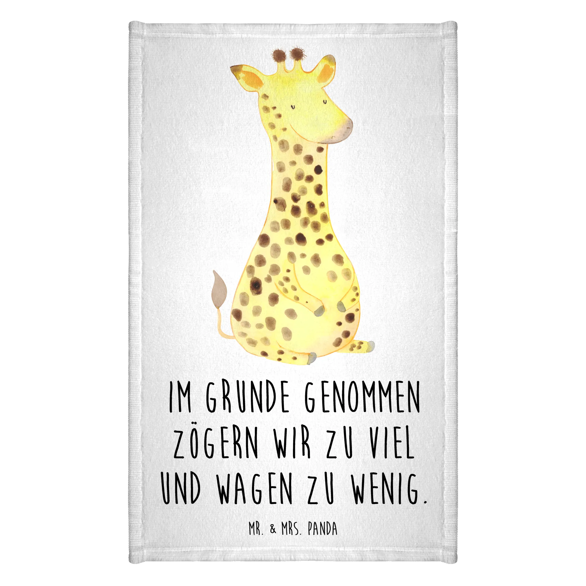 Das Gästehandtuch "Giraffe Zufrieden" aus der Afrika Kollektion von Mr. & Mrs. Panda ist das perfekte Geschenk für Freunde, Familie oder Dich selbst! Mit seinem fröhlichen Motiv einer niedlichen Giraffe, die zufrieden in der Sonne sitzt, bringt dieses Handtuch ein Stück afrikanisches Flair in jedes Badezimmer.