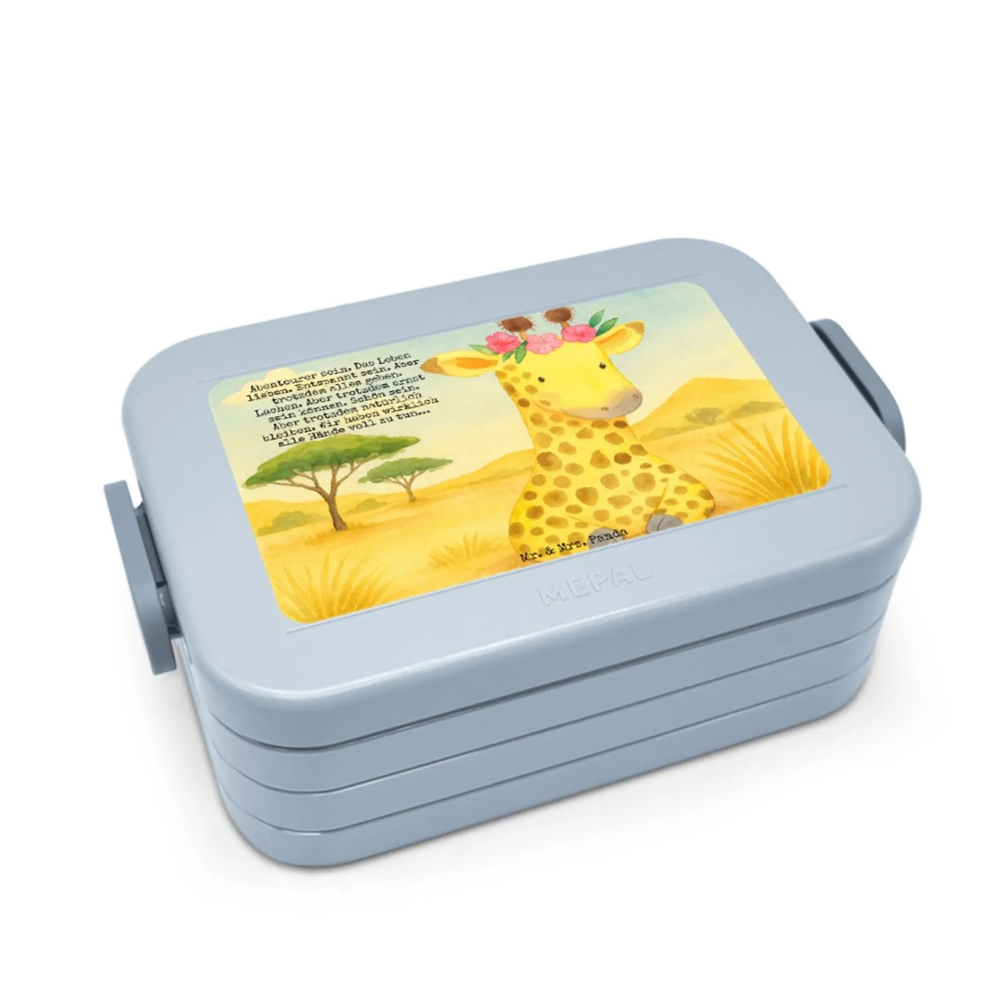 MEPAL Bentobox Giraffe Blumenkranz Design - mit Spruch - Blau Pastell