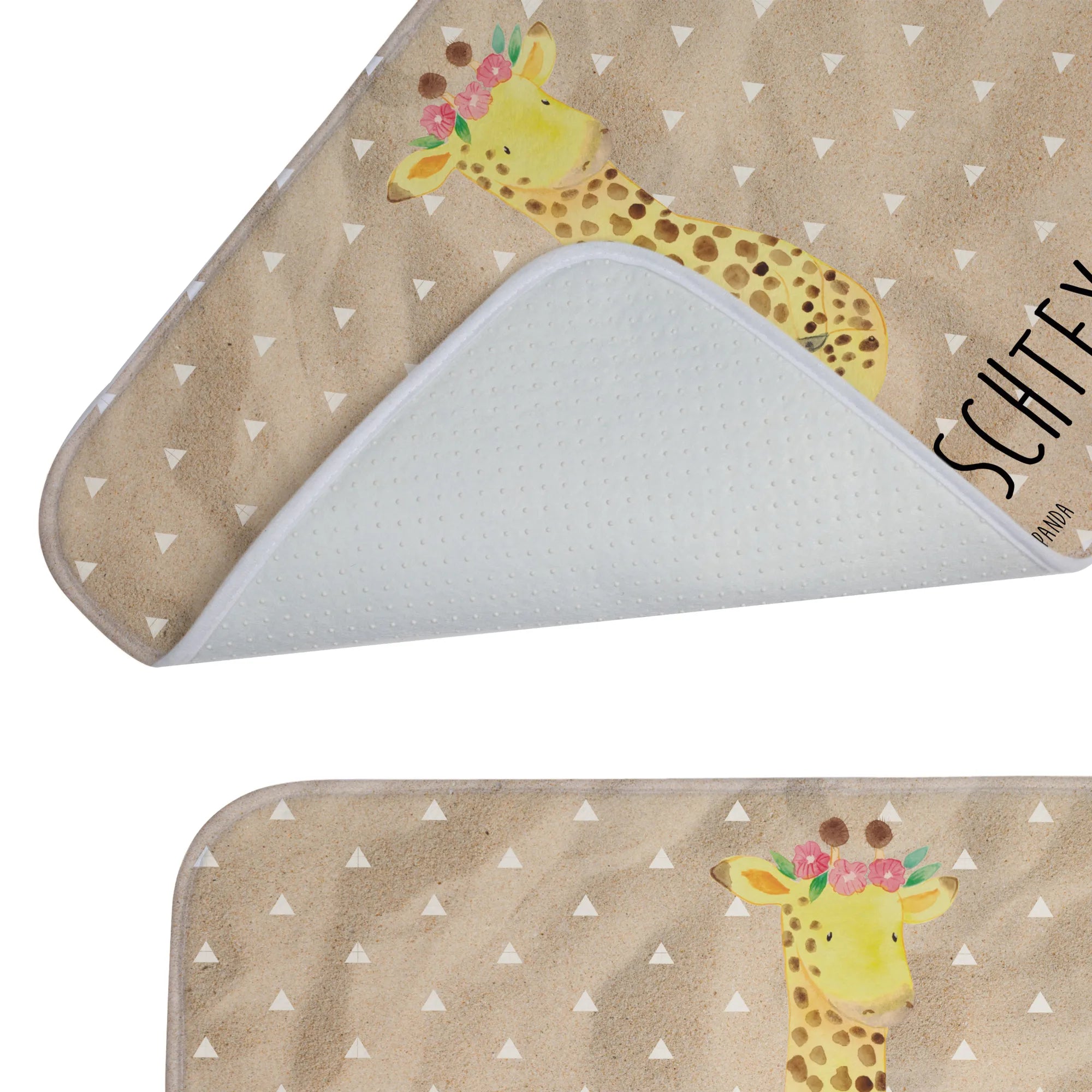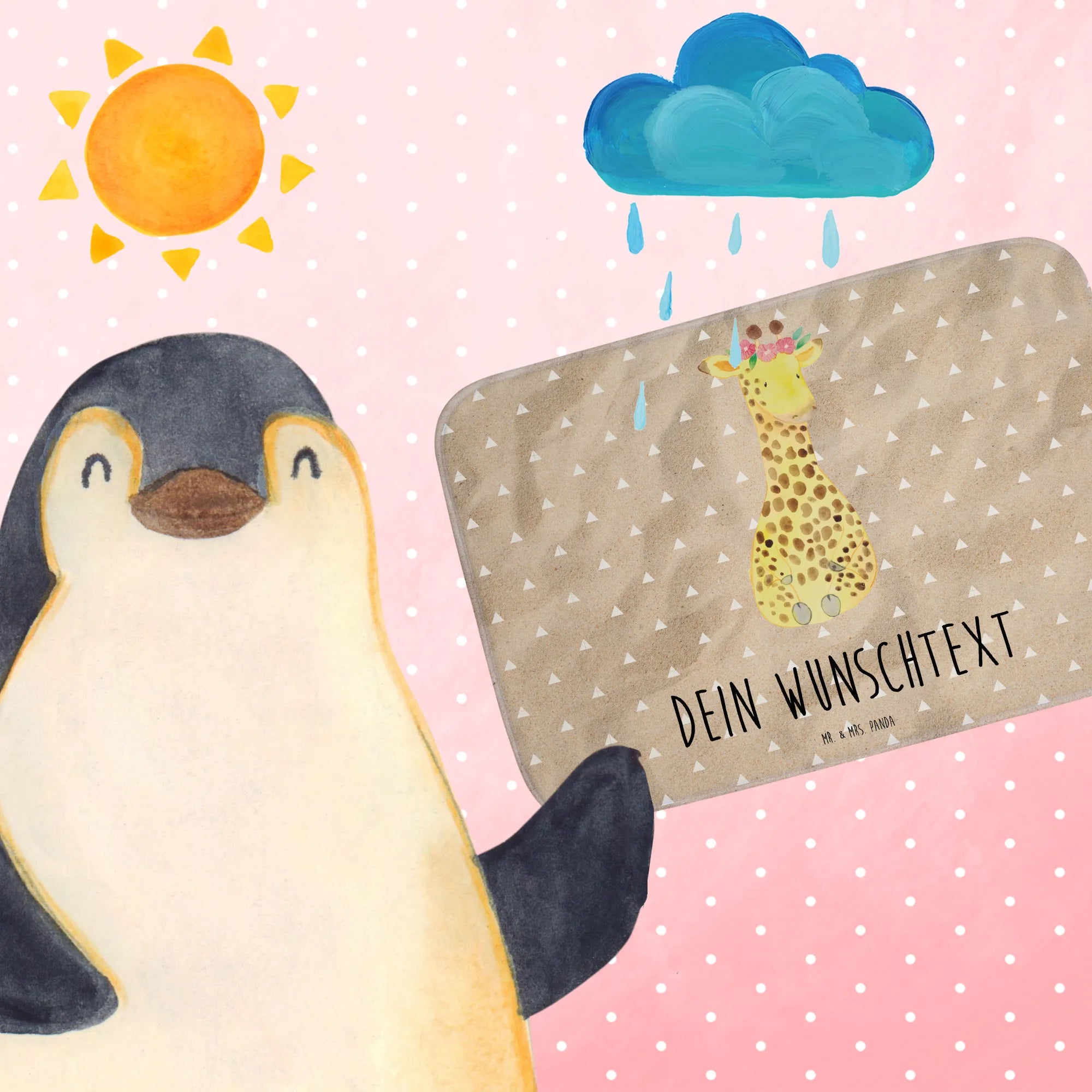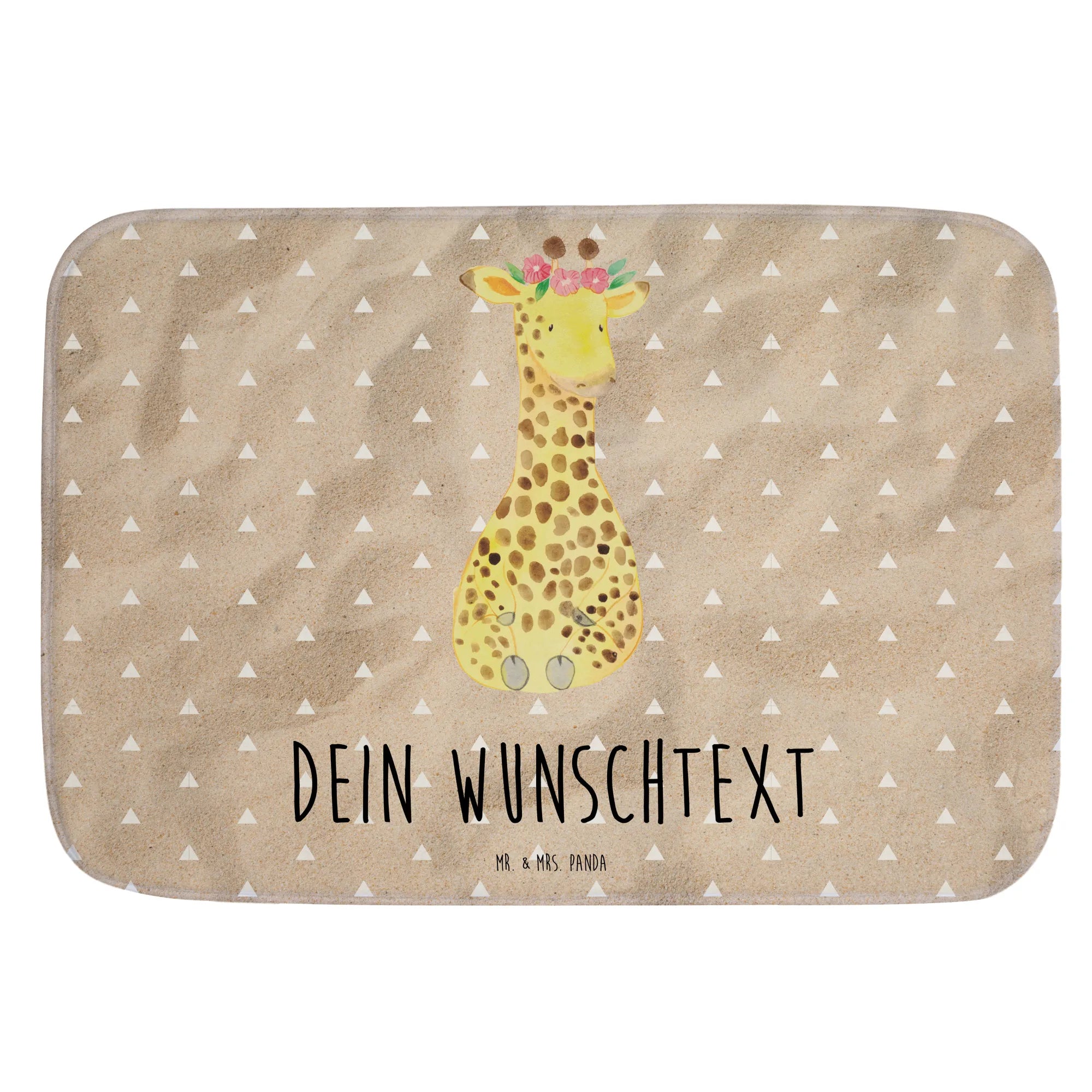 Personalisierter Badvorleger Giraffe Blumenkranz – Mr. & Mrs. Panda
