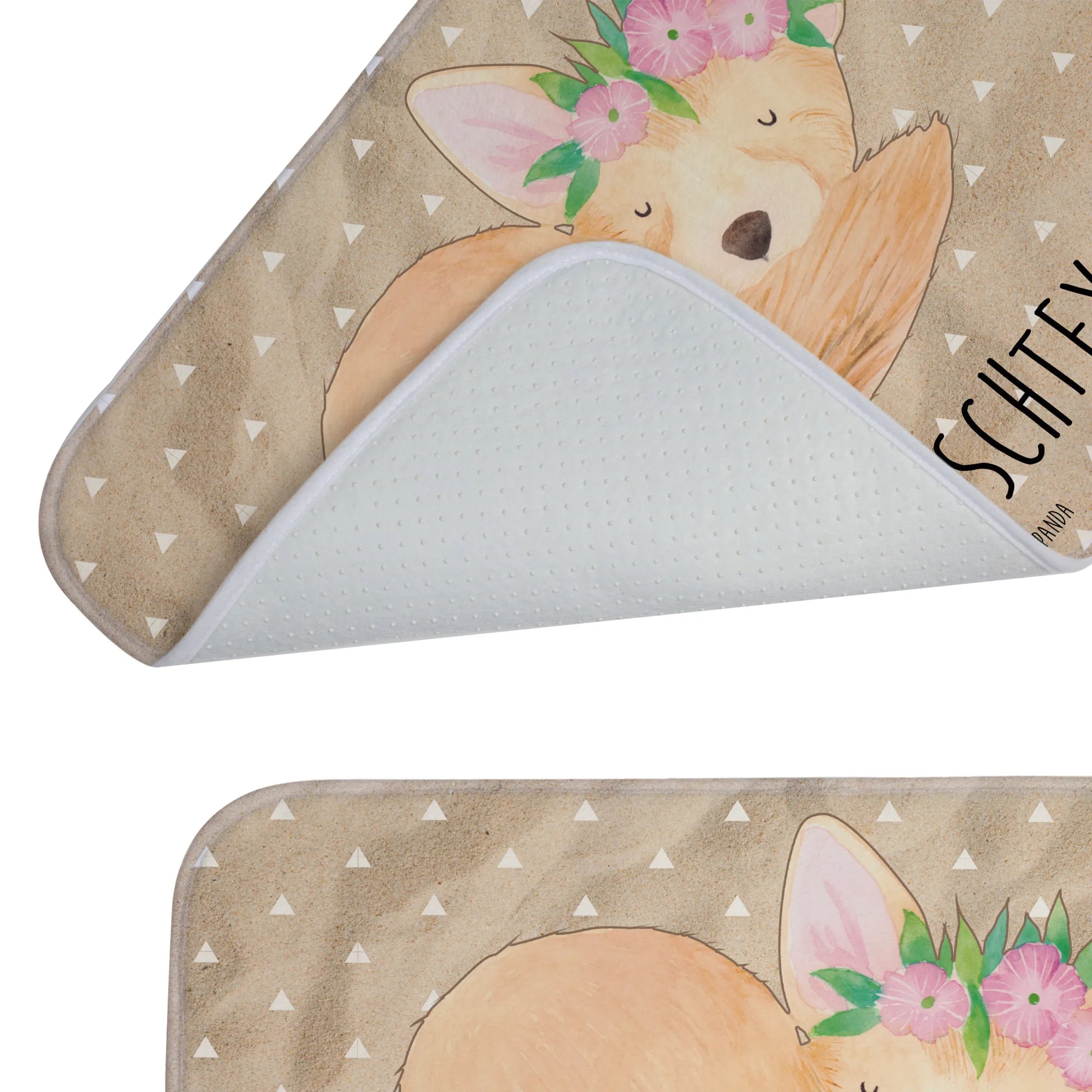 Verschenke Freude, Stil und Sicherheit in einem mit dem personalisierten Badvorleger Wüstenfuchs Blumenkranz. Er ist mehr als nur ein Badvorleger - er ist ein Statement für jeden Raum und bringt das Gefühl von Afrika direkt zu dir nach Hause. Genieße das Lebensgefühl Afrikas und lasse dich von der inimitablen Schönheit unseres Kontinents inspirieren, während du in deinem Alltag Freude findest - mit Mr. & Mrs. Panda!
