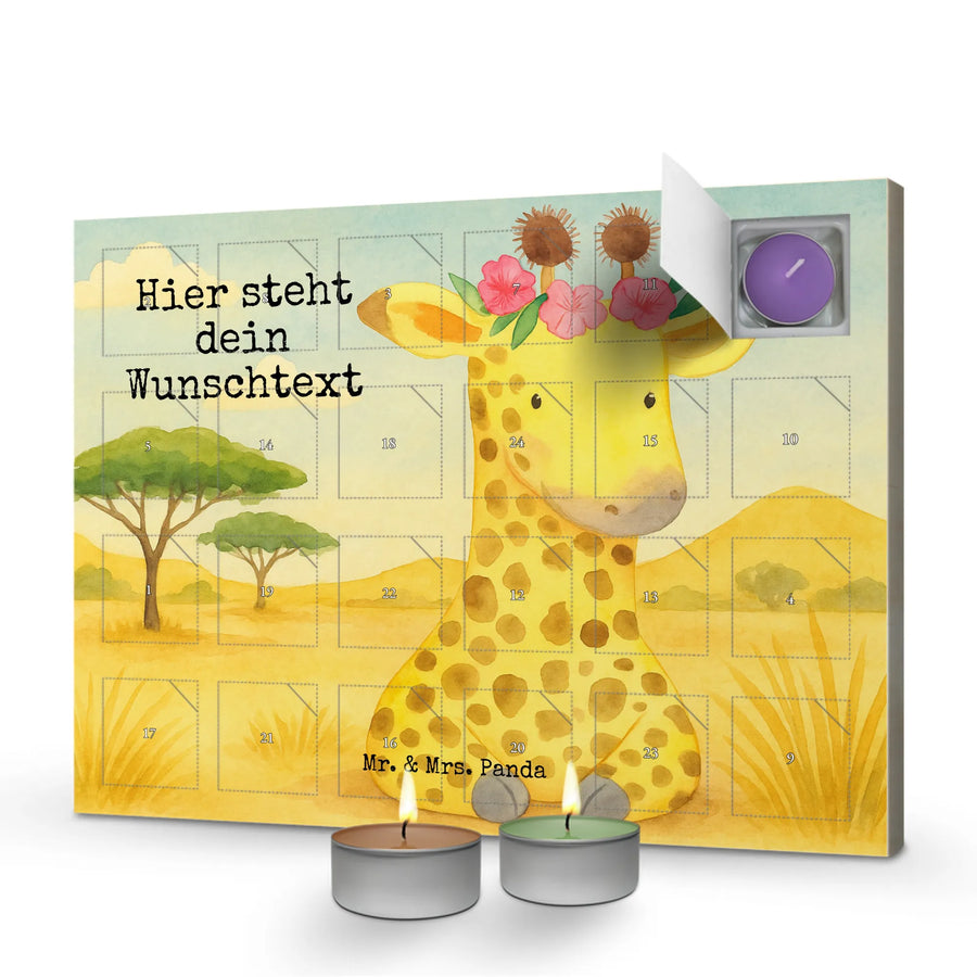 Personalisierter Duftkerzen Adventskalender Giraffe Blumenkranz Design