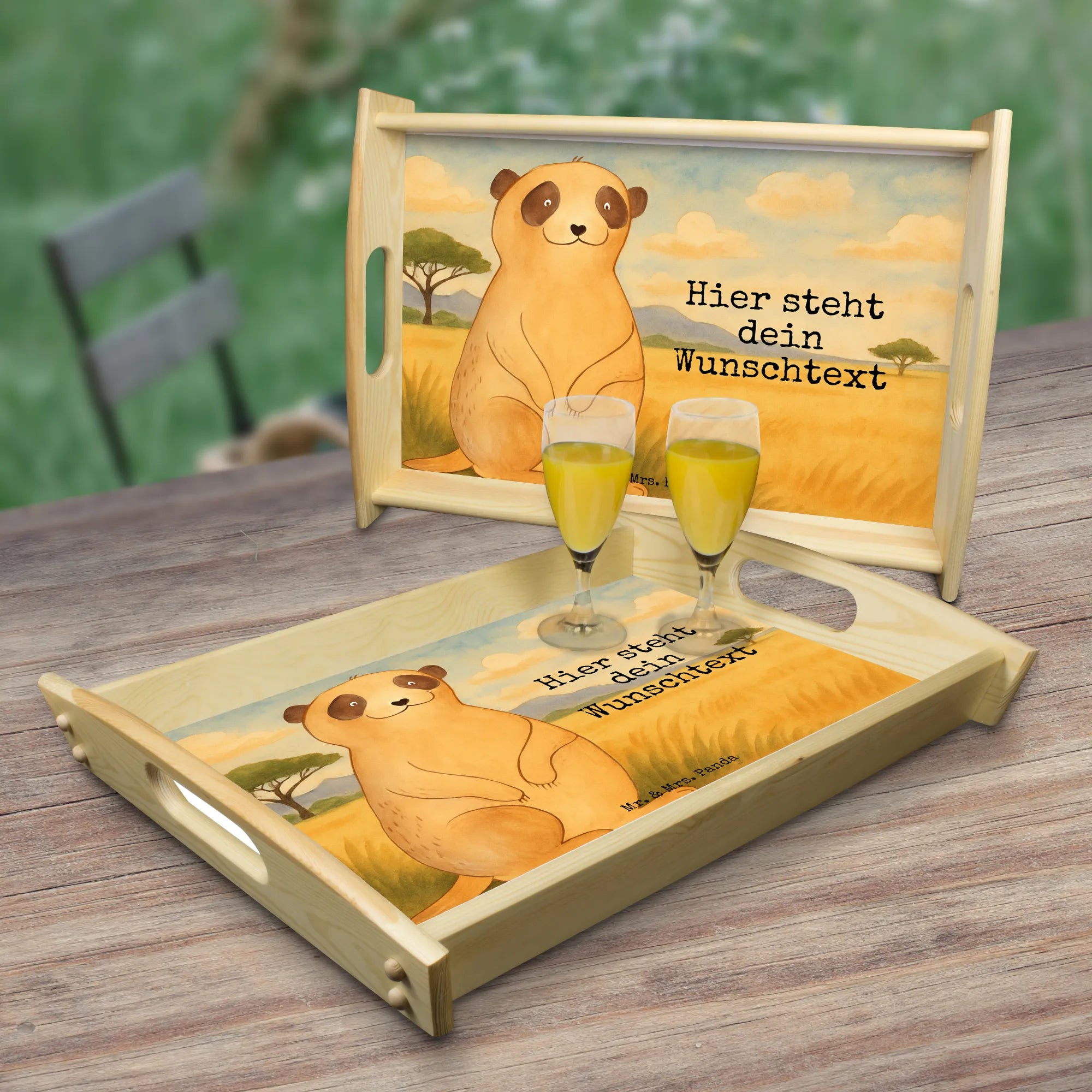 Das personalisierte Serviertablett von Mr. & Mrs. Panda macht jedes Frühstück zu etwas Besonderem! Mit einer Größe von 480 mm x 365 mm x 65 mm und einem Gewicht von 925 g ist es das ideale Tablett, um dein Essen stilvoll zu servieren. Hergestellt aus lasiertem Echtholz, bietet es eine elegante Optik und ist besonders langlebig. Die Möglichkeit, das Tablett mit deinem eigenen Wunschtext oder Namen zu personalisieren, macht es zu einem wundervollen Geschenk für Freunde und Familie. Durch die seitlichen Griffmulden lässt sich das Tablett leicht tragen, während die Anti-Rutsch Pads auf der Unterseite für einen sicheren Halt sorgen. Genieß dein Frühstück im Bett oder auf dem Sofa, ohne dir Sorgen machen zu müssen, dass etwas kippt! Einfach abwischbar mit einem feuchten Tuch und ein wenig Spülmittel, dabei bitte nicht einweichen. Beachte, dass die Anfertigung dieses speziellen Produkts etwas mehr Zeit in Anspruch nehmen kann.